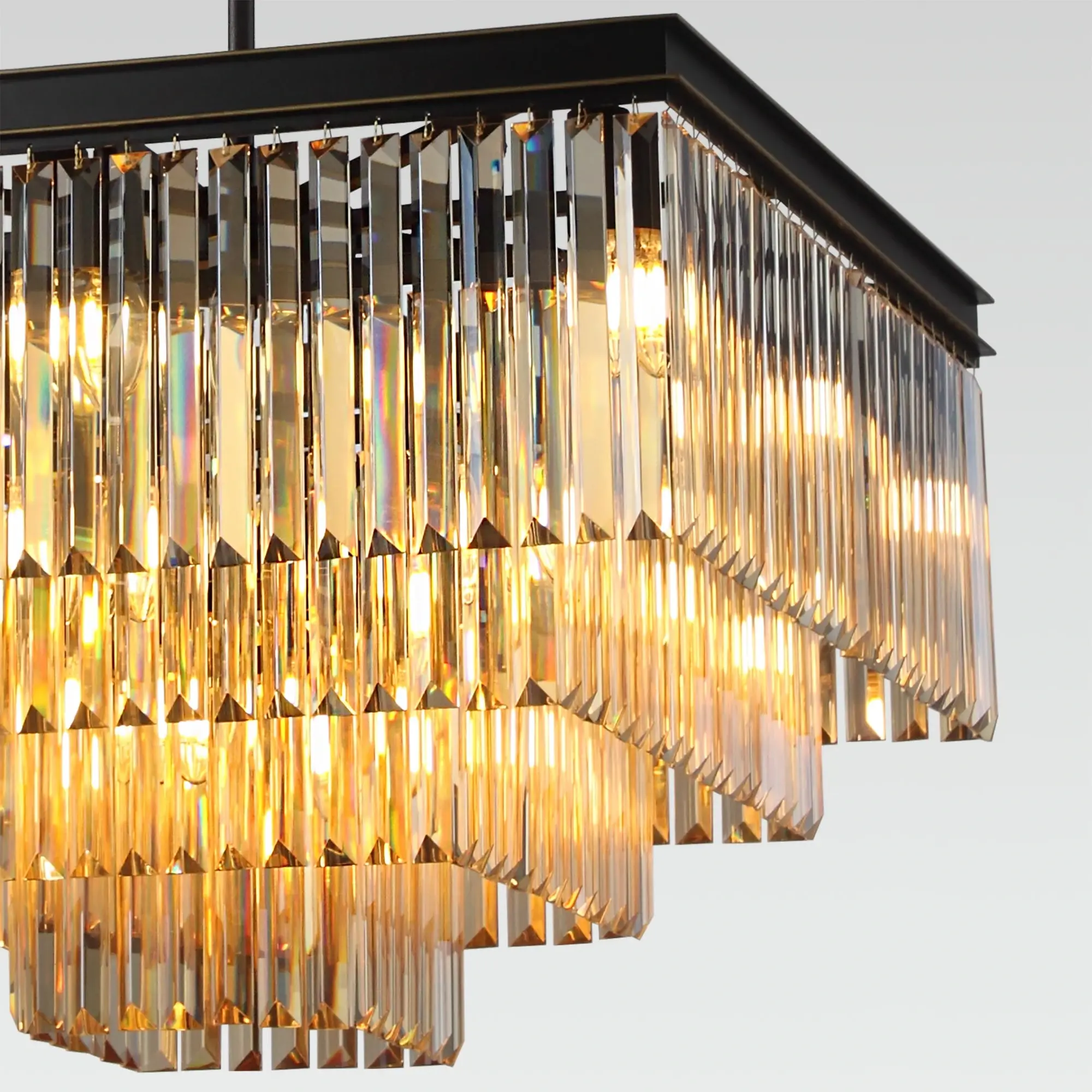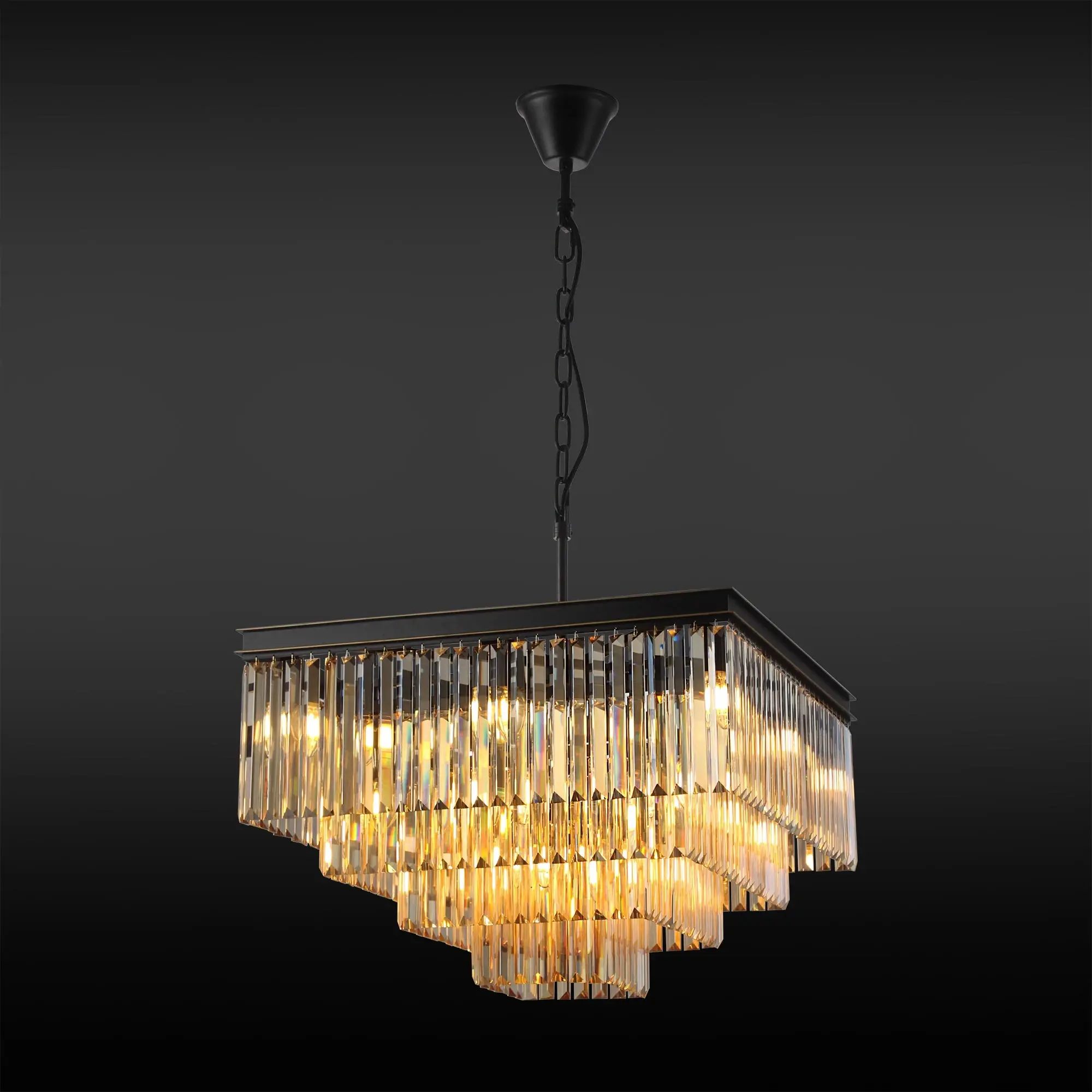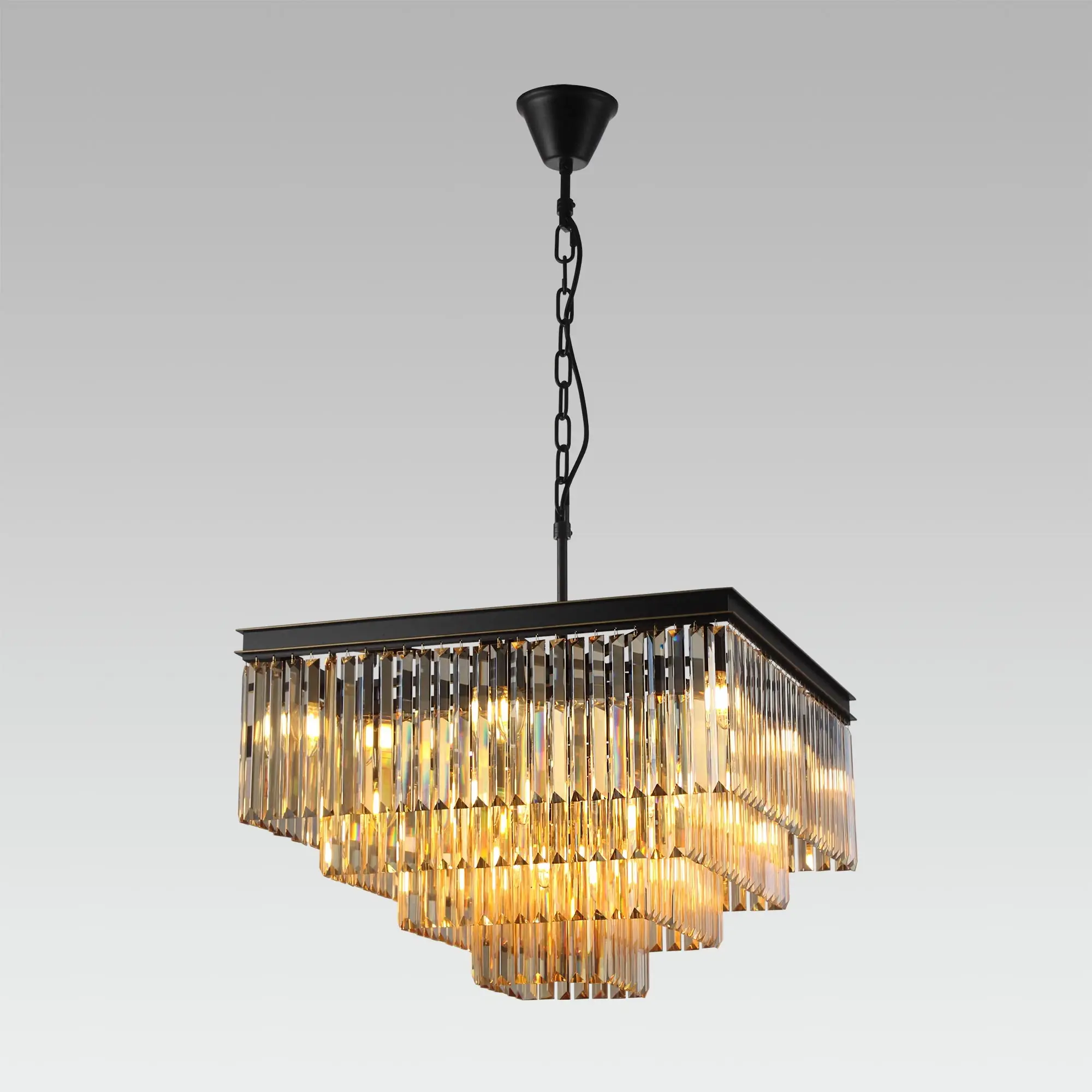 Стильная подвесная люстра Citilux Мартин CL332242 с хрустальными подвесками модного оттенка шампань, расположенными каскадом в четыре яруса. Основание модели квадратной формы выполнено из металла солидной толщины, окрашенного в темный коричневый цвет. Казалось бы, незначительная деталь - золотистая окантовка, как последний штрих мастера, придает светильнику завершенный облик. Тип крепления – крючок. Высоту изделия можно отрегулировать в диапазоне от 1,36 метра до 63 см, для использования в помещениях как с высокими, так и с низкими потолками. В люстре 20 ламп с цоколем Е14 и максимальной мощностью для ламп накаливания 60Вт. Суммарная мощность 1200Вт, площадь освещения до 38 кв. метров. Светодиодные лампы можно использовать более яркие. Светильник отлично подойдет гостиную, столовую и спальню, оформленную в классическом или современном стиле, в том числе в стиле лофт.