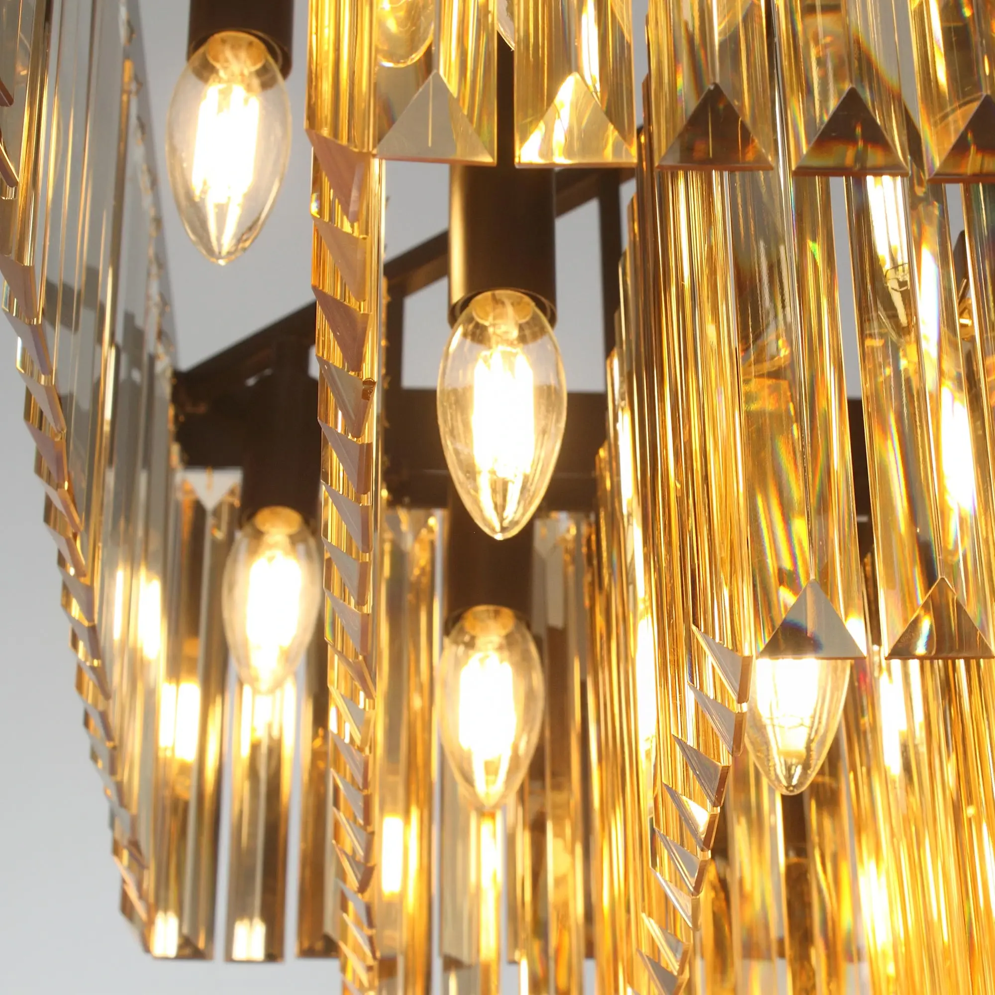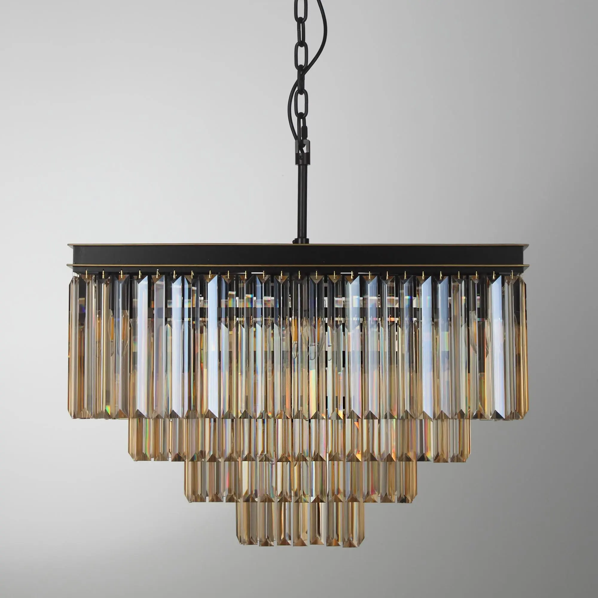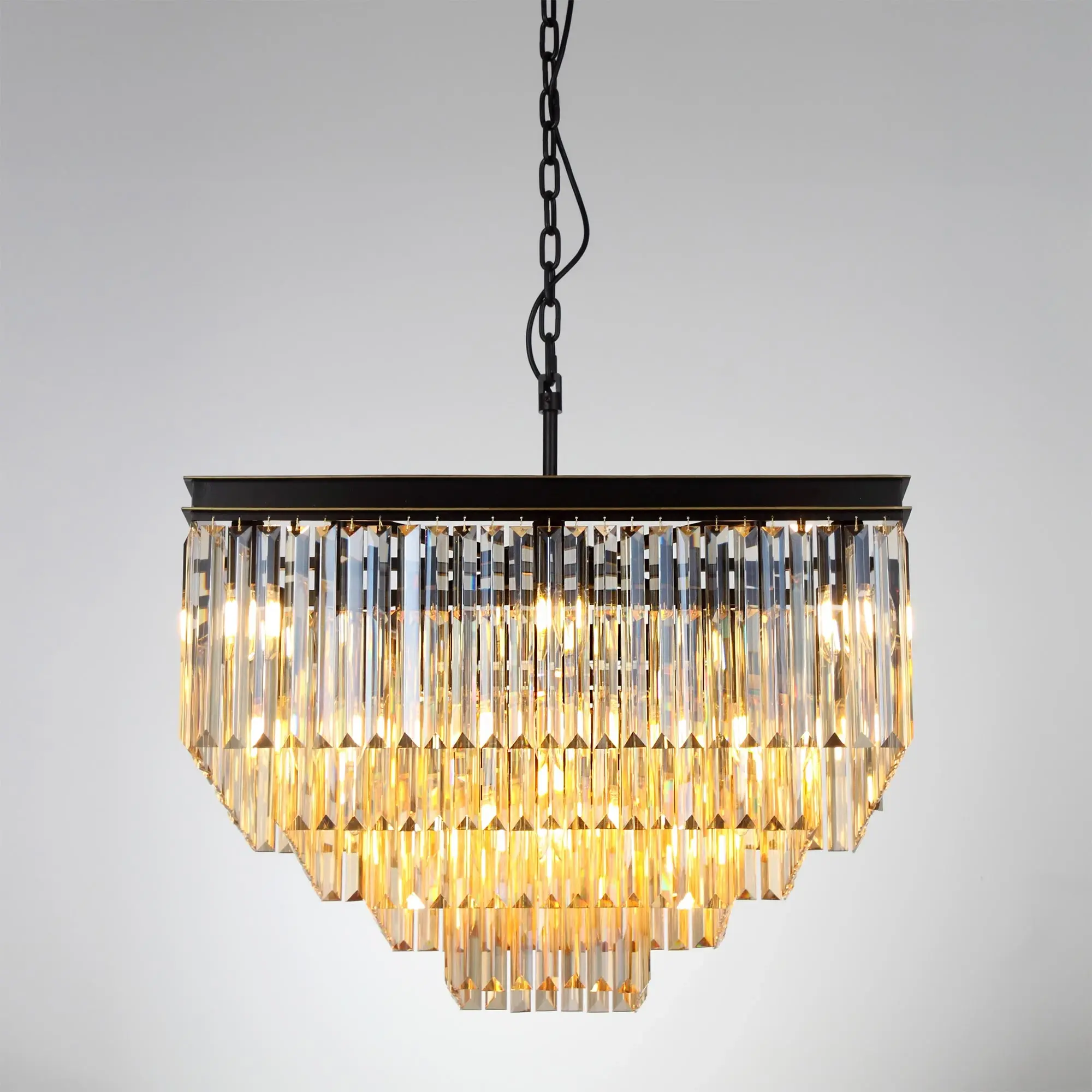 Стильная подвесная люстра Citilux Мартин CL332242 с хрустальными подвесками модного оттенка шампань, расположенными каскадом в четыре яруса. Основание модели квадратной формы выполнено из металла солидной толщины, окрашенного в темный коричневый цвет. Казалось бы, незначительная деталь - золотистая окантовка, как последний штрих мастера, придает светильнику завершенный облик. Тип крепления – крючок. Высоту изделия можно отрегулировать в диапазоне от 1,36 метра до 63 см, для использования в помещениях как с высокими, так и с низкими потолками. В люстре 20 ламп с цоколем Е14 и максимальной мощностью для ламп накаливания 60Вт. Суммарная мощность 1200Вт, площадь освещения до 38 кв. метров. Светодиодные лампы можно использовать более яркие. Светильник отлично подойдет гостиную, столовую и спальню, оформленную в классическом или современном стиле, в том числе в стиле лофт.