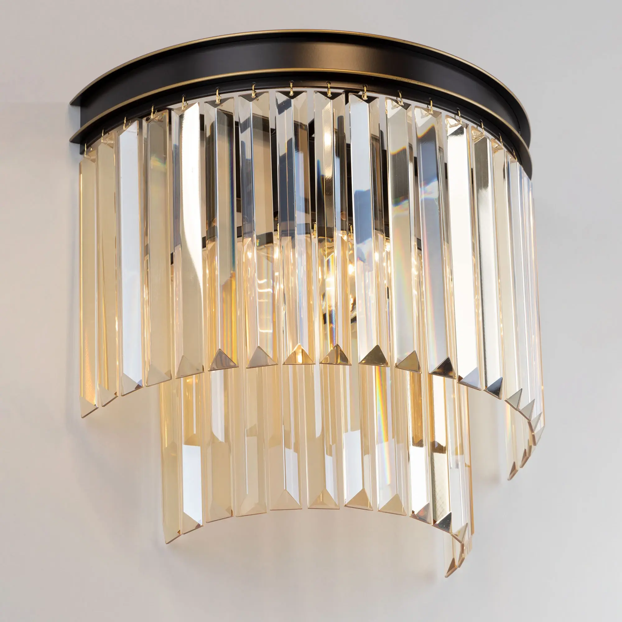 Бра настенное каскадное Citilux Мартин CL332322 с шикарными хрустальными подвесками светло-янтарного оттенка. Основание модели полукруглое, выполнено из металла солидной толщины, окрашенного в темно-коричневый цвет. Золотистая окантовка, как последний штрих мастера, придает светильнику завершенный облик. В изделии 2 лампы с цоколем Е14, максимальной мощностью для ламп накаливания 60Вт (в комплект не входят, приобретаются отдельно). Тип крепления – планка. Подключение к скрытой проводке и настенному выключателю. Светильник великолепно выглядит в интерьере как самостоятельно, так и в составе коллекции Ситилюкс Мартин CL332. Отлично подойдет в гостиную, зал или кабинет, которые оформлены в классическом или современном стиле, в том числе в стиле лофт. Прекрасный вариант для размещения в изголовье кровати или над диваном.