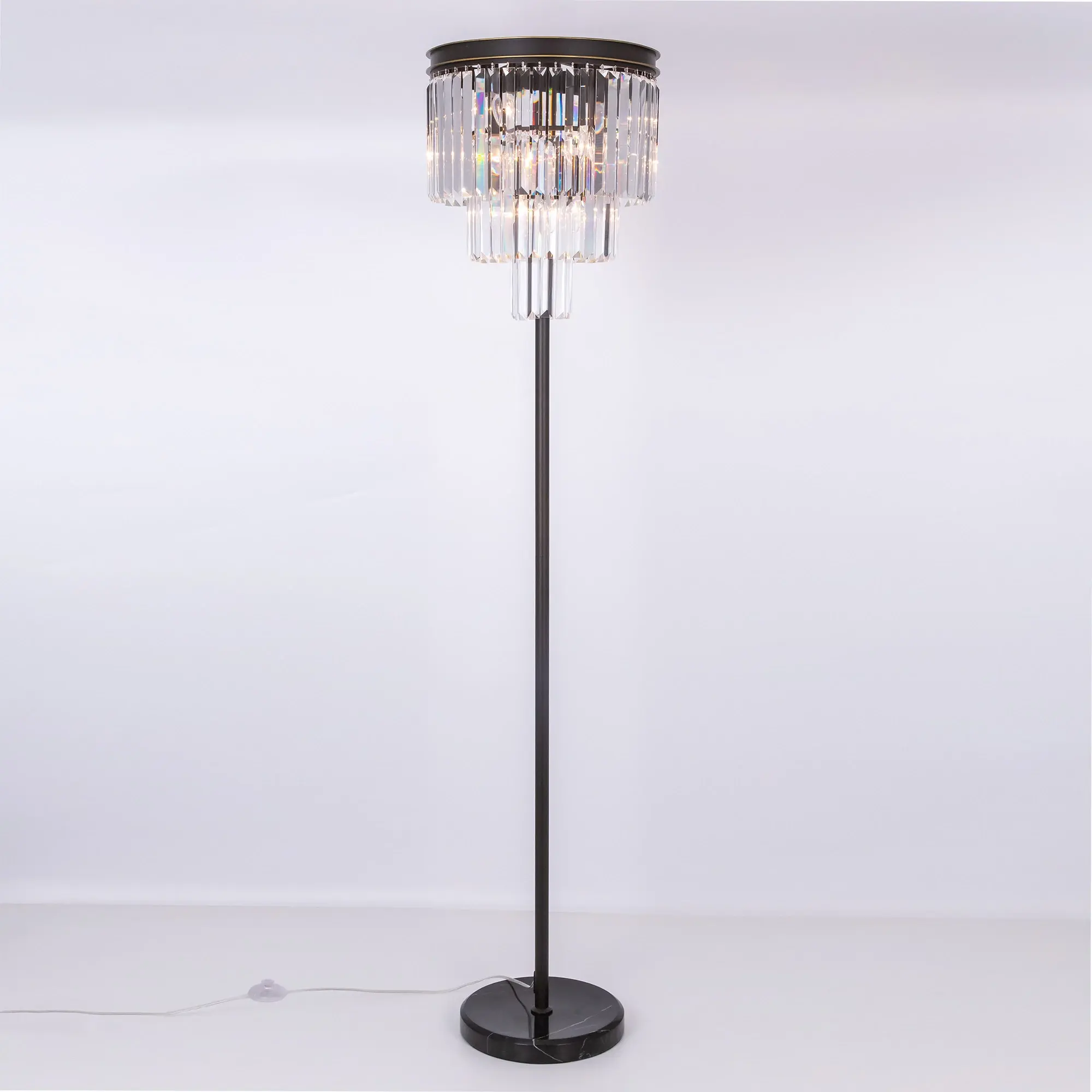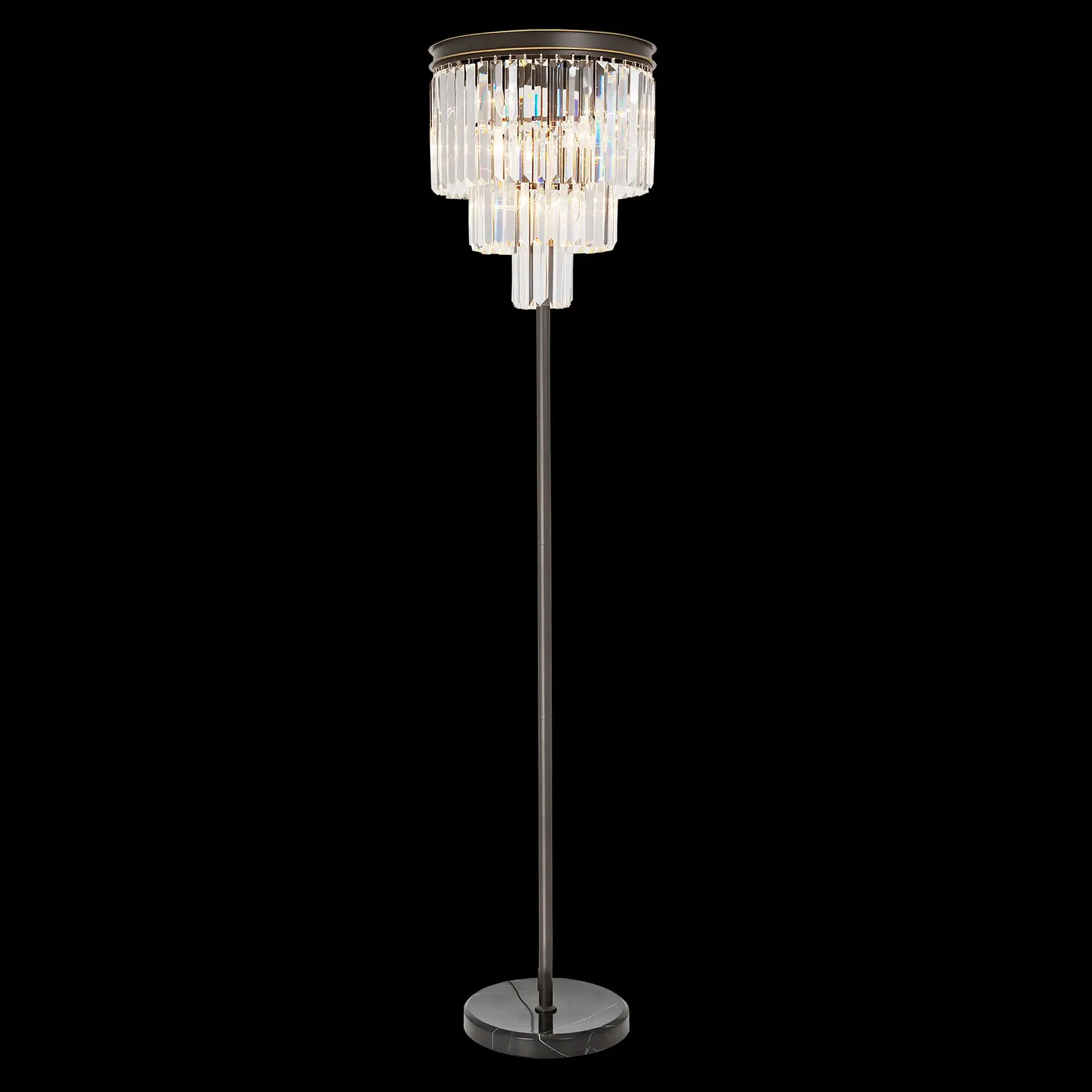 Торшер серии Мартин можно назвать уникальным дизайнерским творением. Величественный внешний вид, мощная арматура на основании из мрамора и неподражаемое сверкание хрустальных подвесок придают ему свою, особую харизму. Такая модель может стать шикарным дополнением, как для классических интерьеров, так и для помещений, оформленных в стиле лофт. Высококачественные материалы, используемые в производстве торшера Мартин, гарантируют максимальную надёжность в эксплуатации. Сам торшер впечатляет не только стильным дизайном, но и необычайной яркостью. Наши инженеры оснастили светильник девятью рожками из термостойкого углепластика, что позволяет использовать лампы накаливания до 60-ти Ватт, а значит полноценно осветить от 5-ти до 8-и квадратных метров.