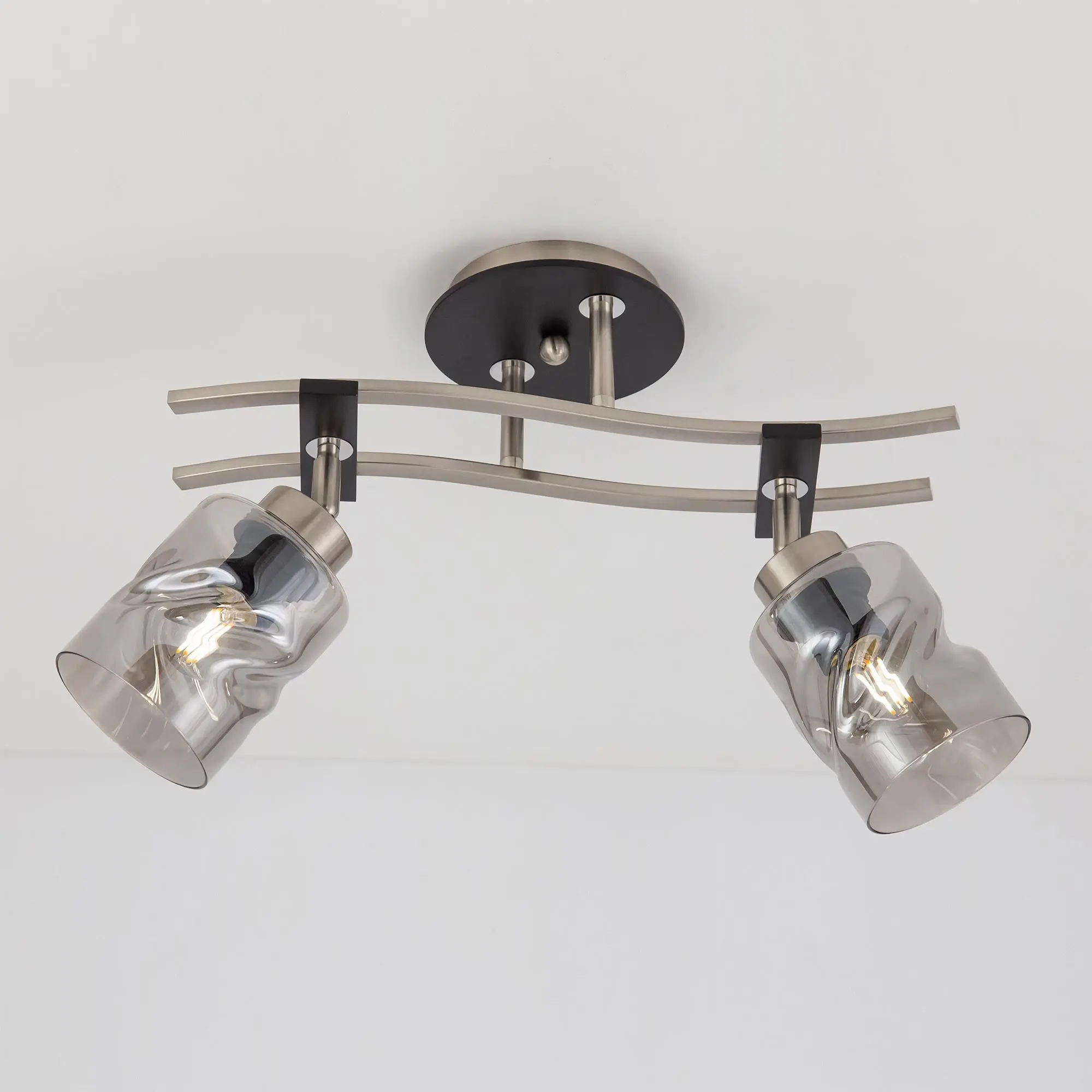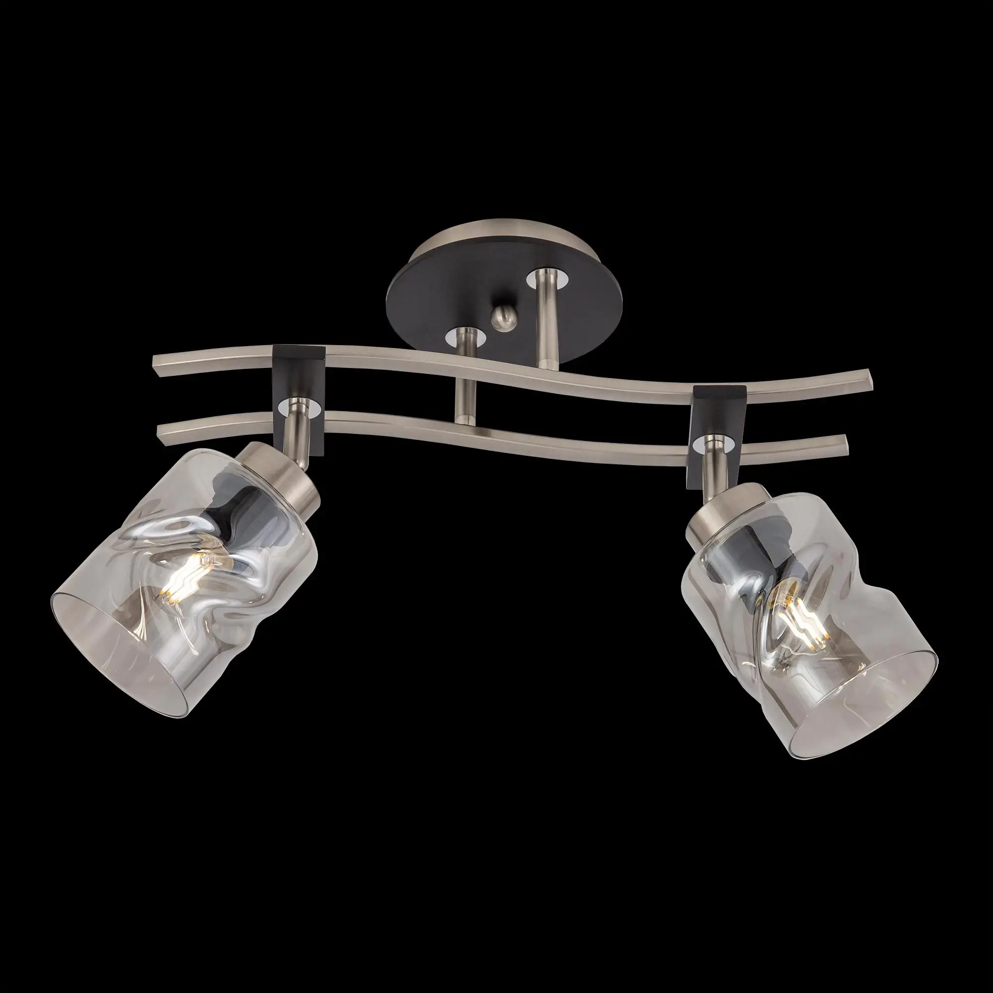 В изделии 2 лампы с цоколем Е27 максимальной мощностью для ламп накаливания 75Вт (лампы в комплект не входят). Модель подходит для всех типов потолков, в том числе натяжных, тип крепления – планка. Длина модели 44см, высота 30см, осветит до 9м².