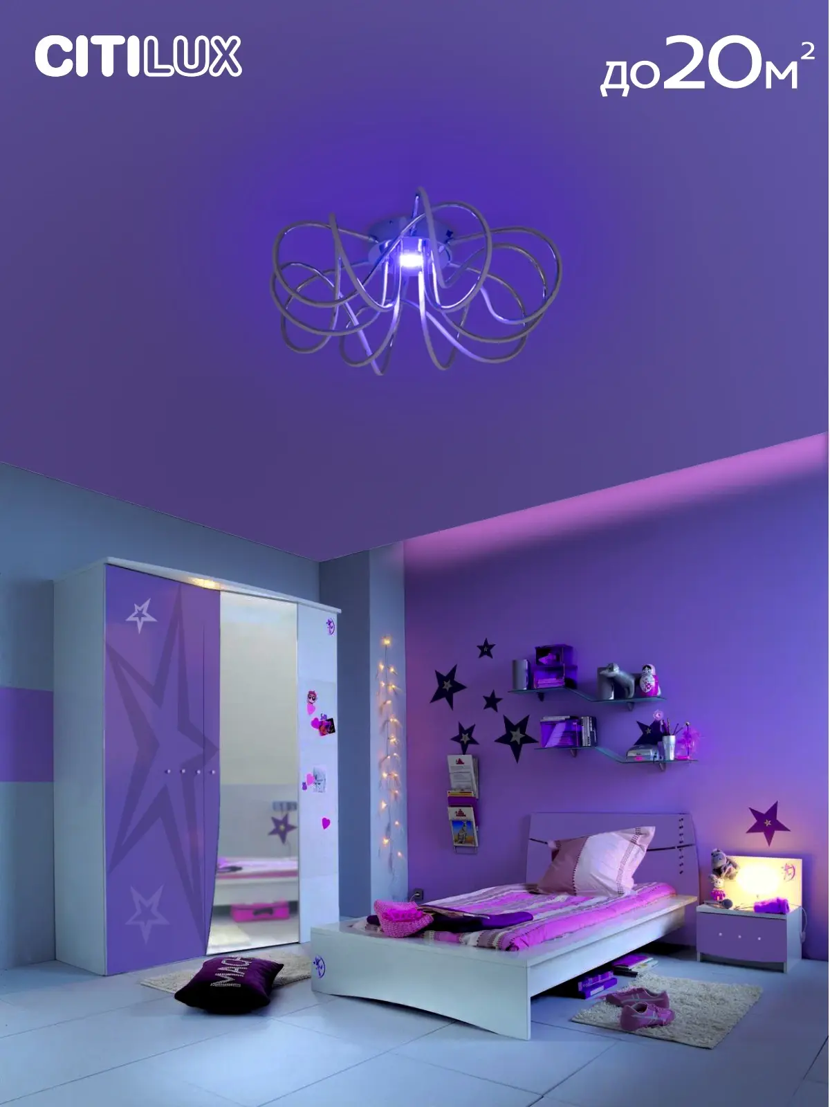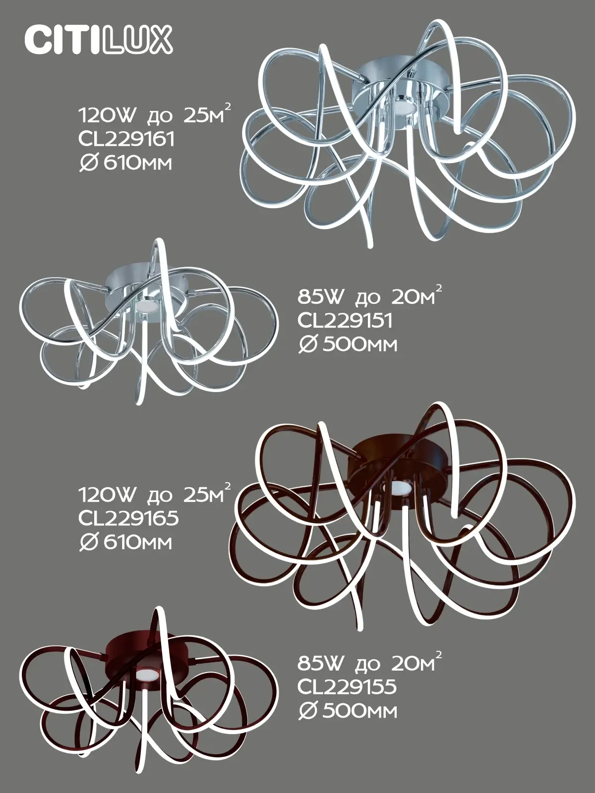 Светодиодная потолочная люстра Citilux Мишель CL229151 с RGB подсветкой, является ярким представителем современных управляемых светильников. Светильник с круглым основанием и изогнутыми рожками. Корпус изготовлен из металла, цвет хром. Рассеиватель белый матовый из оптического полимера. Модель подходит для всех типов потолков, в том числе натяжных, тип крепления – планка. Модель управляется с помощью пульта дистанционного управления или с настенного выключателя. Пульт ДУ в комплекте, тип батареек ААА (батарейками не комплектуется). С помощью пульта доступно: плавная регулировка яркости от 100% до 10%; управление цветовой температурой в диапазоне от 3000К до 5500К, с возможностью настроить любые оттенки теплого, нейтрального и холодного света. Свет без мерцаний и пульсаций. Есть четыре настраиваемых режима памяти, от М1 до М4, которыми также можно управлять с настенного выключателя. Мощность светильника 85Вт
