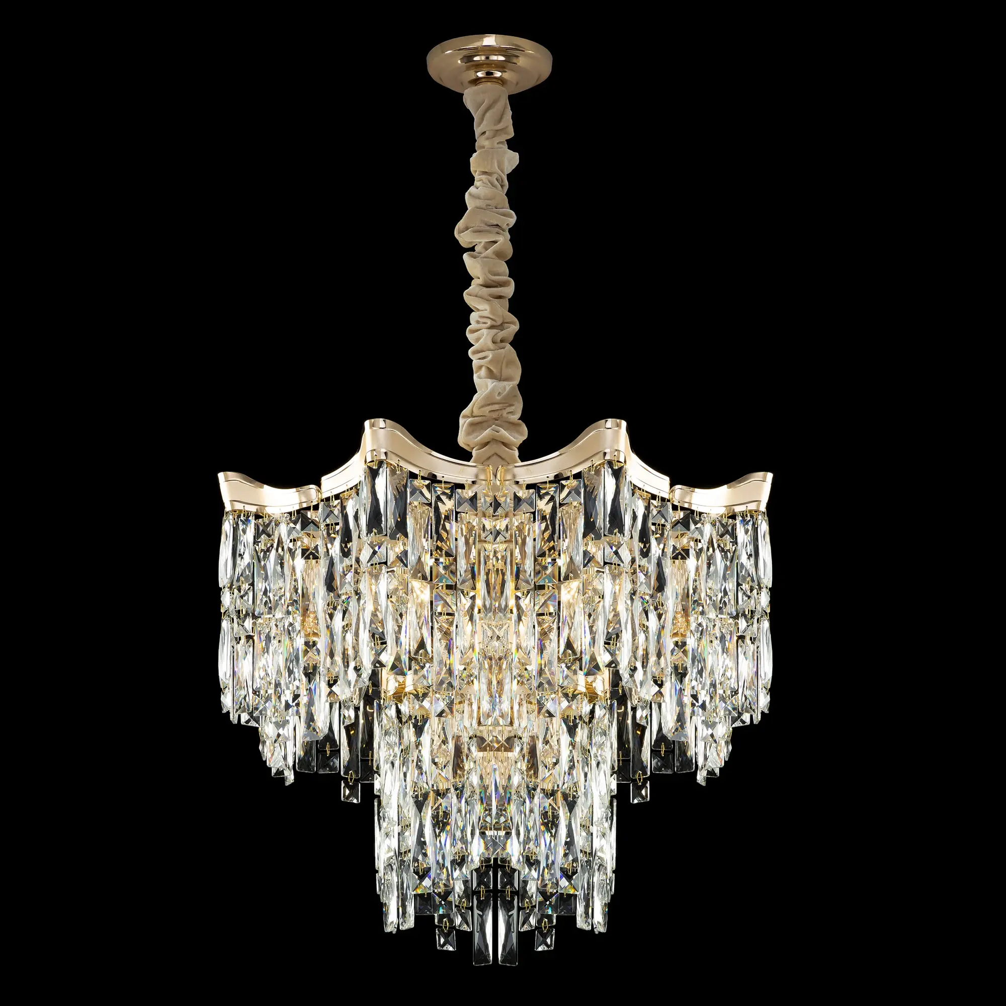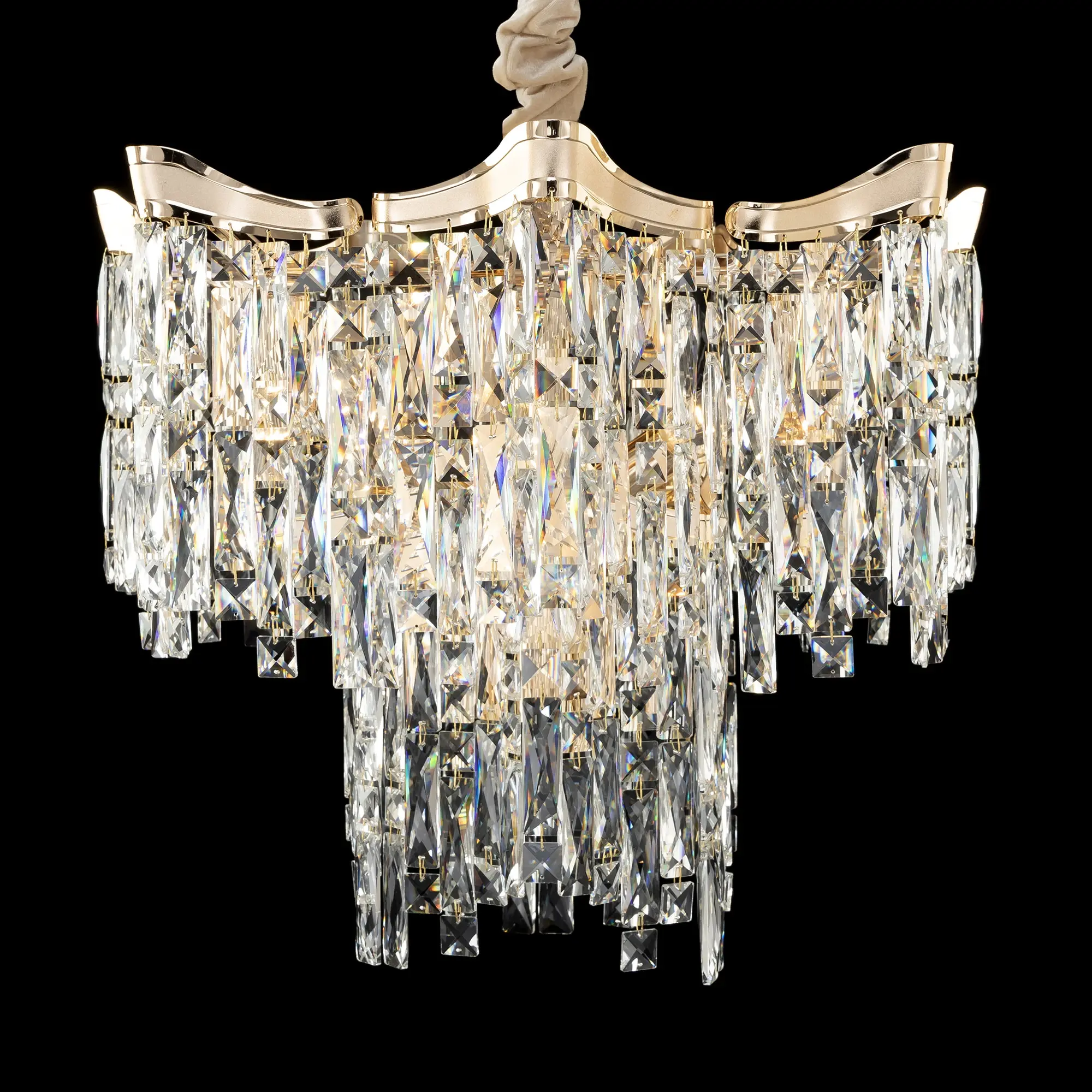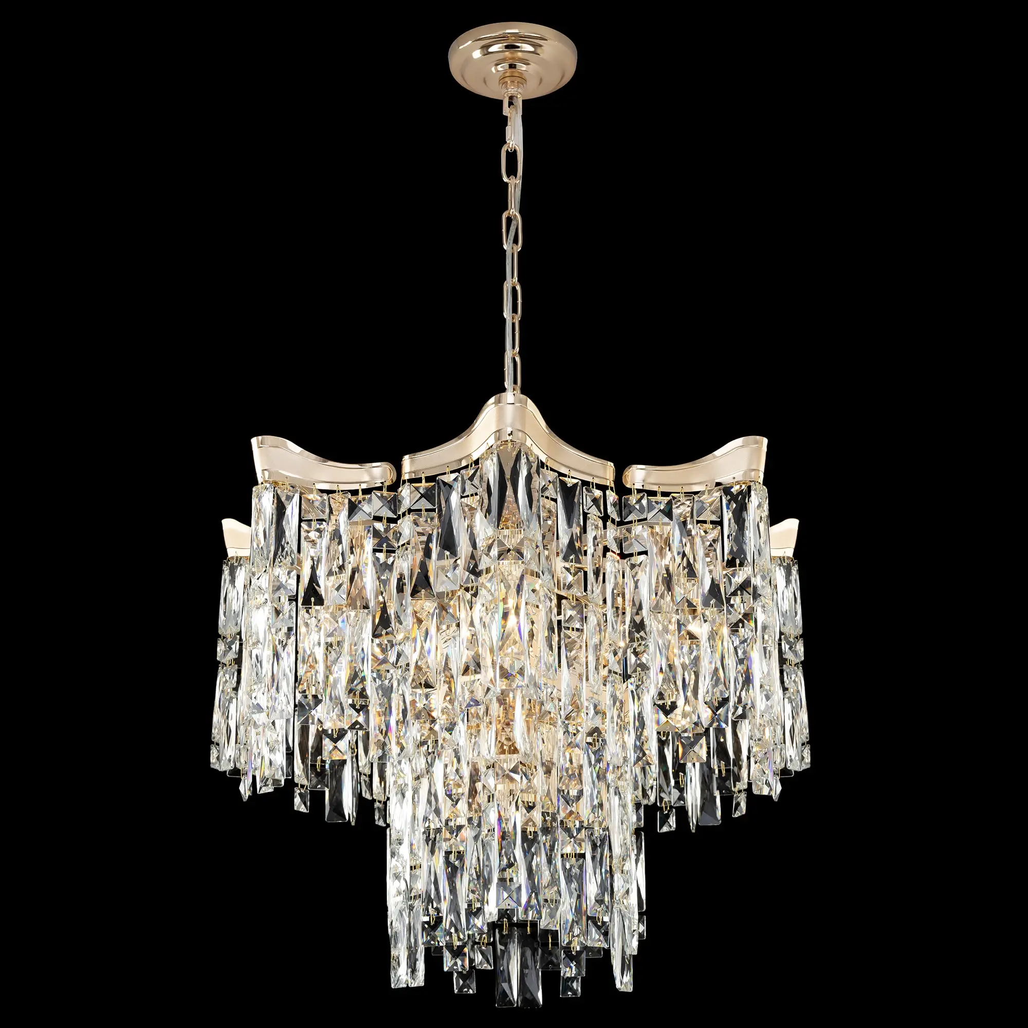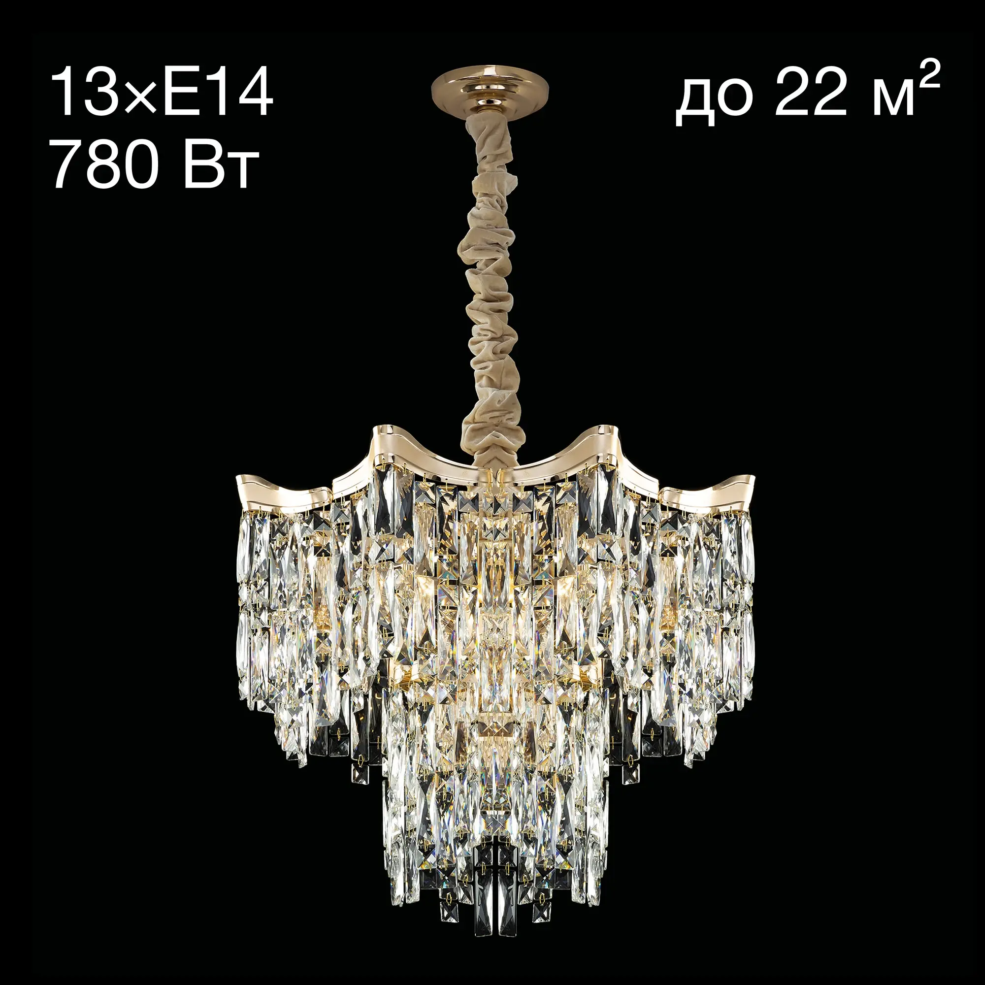 Хрустальная люстра Citilux Моника CL308262 восхищает своей красотой. Шикарные подвески изготовлены из кристально прозрачного хрусталя с модной огранкой. Корпус металлический, благородного золотого цвета. В изделии используется 13 ламп с цоколем Е14 максимальной мощностью для ламп накаливания 60Вт (в комплект не входит, приобретается отдельно). Диаметр светильника 58см, высота регулируется от 55см до 1,3м. Подходит для всех типов потолков, в том числе натяжных, тип крепления – планка. Великолепная хрустальная люстра Citilux Моника CL308262 потрясающе выглядит в классических и современных интерьерах, и бесспорно станет украшением гостиной, столовой, зала или кабинета.