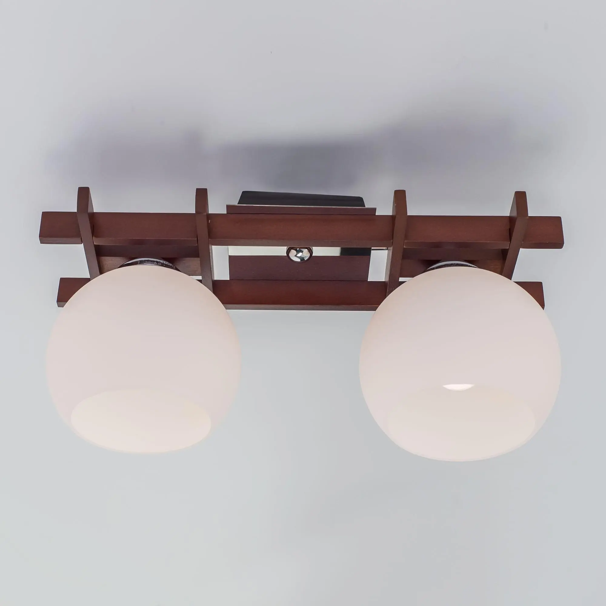 В наш век современных технологий сложно найти изделия из экологически чистых материалов. Коллекция потолочных люстр Нарита от Citilux, во многом уникальна тем, что изготовлена из натурального дерева с элементами из высококачественного металла. Все модели линейки Нарита представлены в двух цветах – это светлый «белёный дуб» и «тёмное дерево», что значительно облегчит выбор при оформлении интерьера вашего помещения. Двух рожковая конструкция, выполненная в благородном цвете тёмного дерева, будет идеально сочетаться деталями интерьера такого же цвета. Это могут быть двери, пол мебель, карнизы и многое другое. Контраст темного основания с классическими белыми плафонами в виде полушария, добавляет изделию элегантности, и расширяет его потенциал для различных цветовых решений в интерьерах. Как правило, подобные светильники наиболее востребованы нашими покупателями для освещения прихожих, коридоров, кухонь и небольших комнат. Потолочное крепление, благодаря которому, высота светильника составляет всего 19 сантиметров, позволит вам сэкономить пространство и визуально расширить площадь помещения.