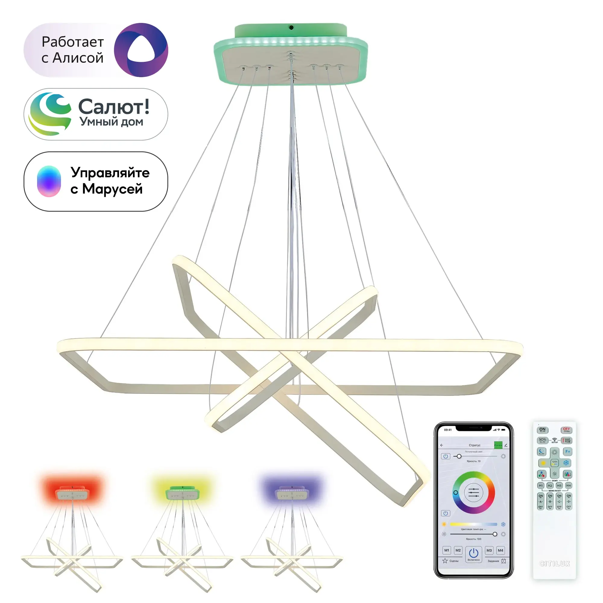 Подвесная светодиодная люстра Citilux Неон Смарт CL731AK110E с голосовым управлением, входит в экосистему Citilux SMART .