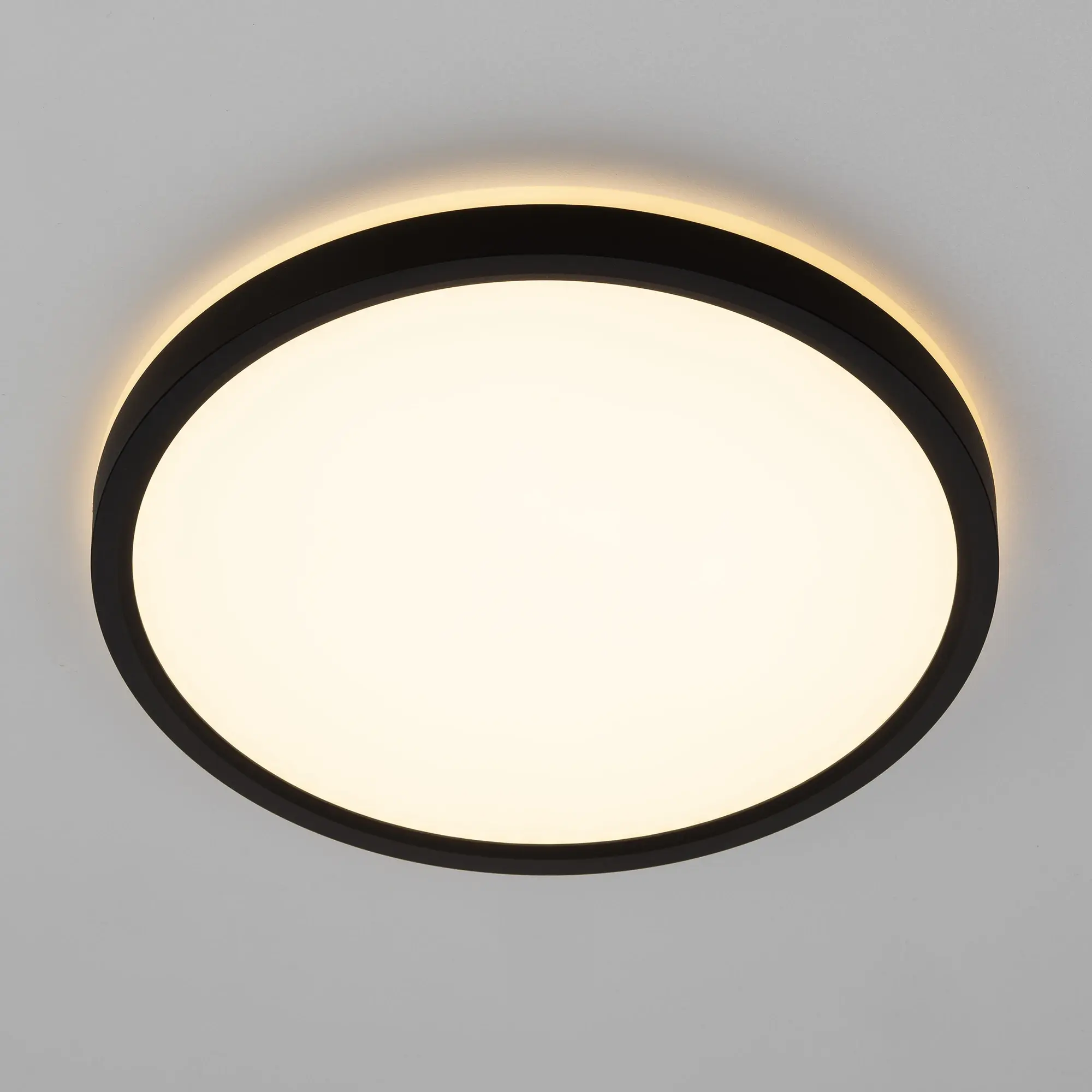 Изделие обладает высокой энергоэффективностью основного света – 120Лм/Вт, осветит до 9м². Мощность: основной свет - 18Вт, потолочная подсветка - 4,5Вт. Диаметр 24см, высота 2,5см. Свет безопасный для глаз, без мерцания и пульсаций. Тип крепления – удобная монтажная платформа.