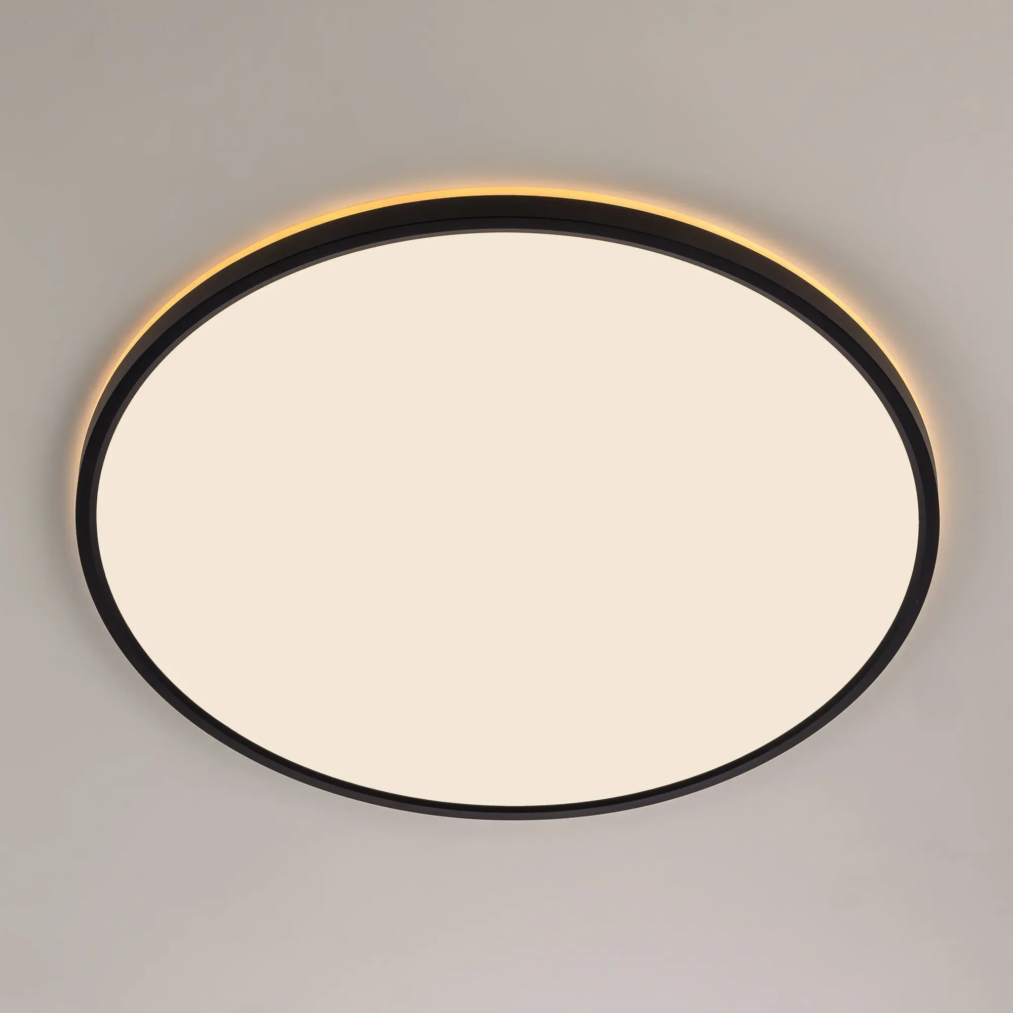 Изделие обладает высокой энергоэффективностью основного света – 120Лм/Вт, осветит до 20м². Мощность: основной свет - 40Вт, потолочная подсветка - 10Вт. Диаметр 50см, высота 2,5см. Свет безопасный для глаз, без мерцания и пульсаций. Тип крепления – удобная монтажная платформа.