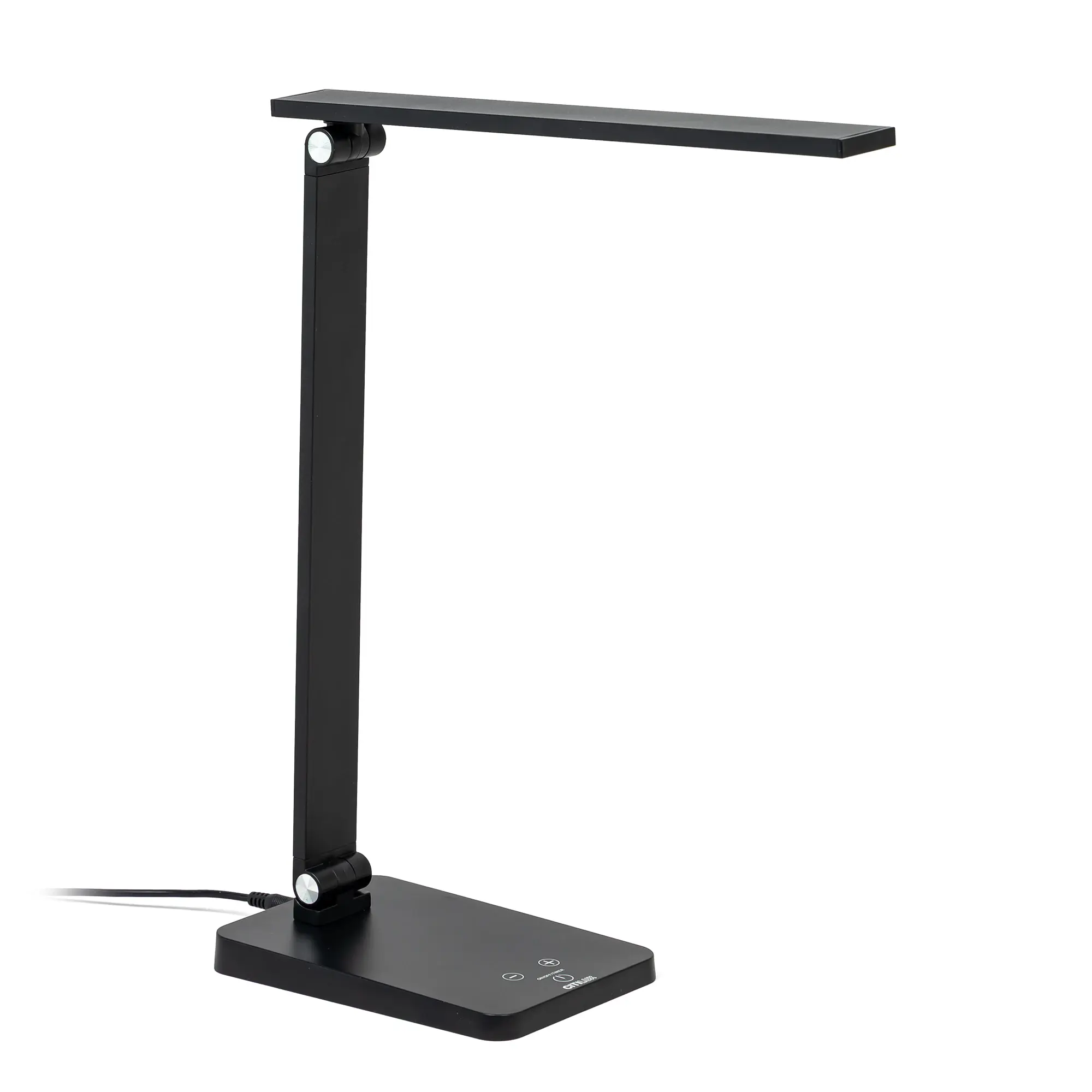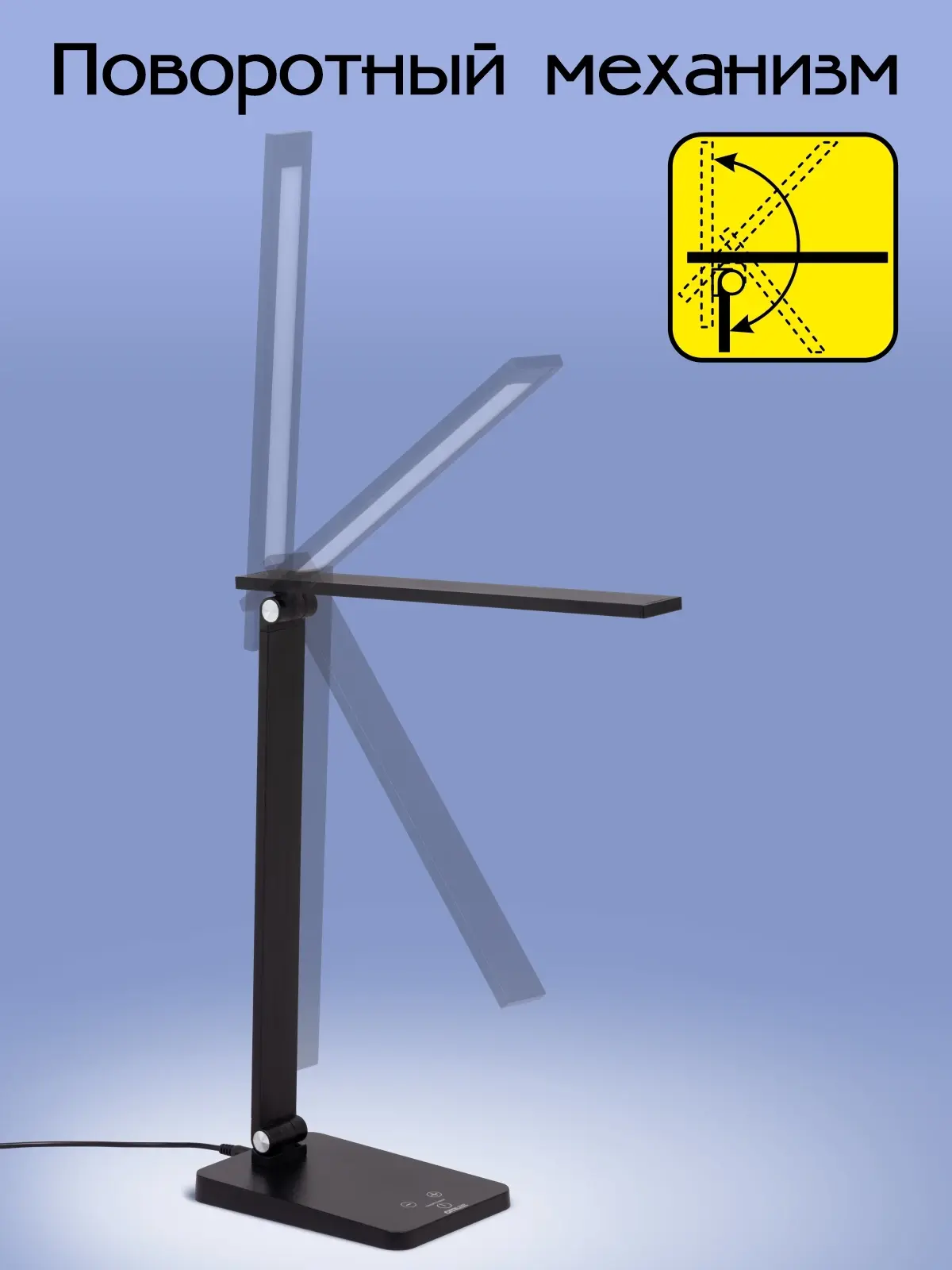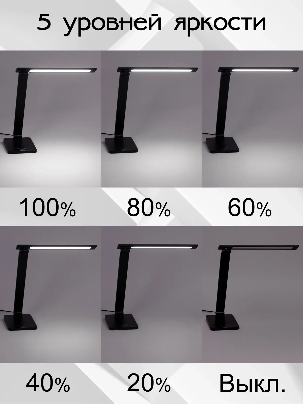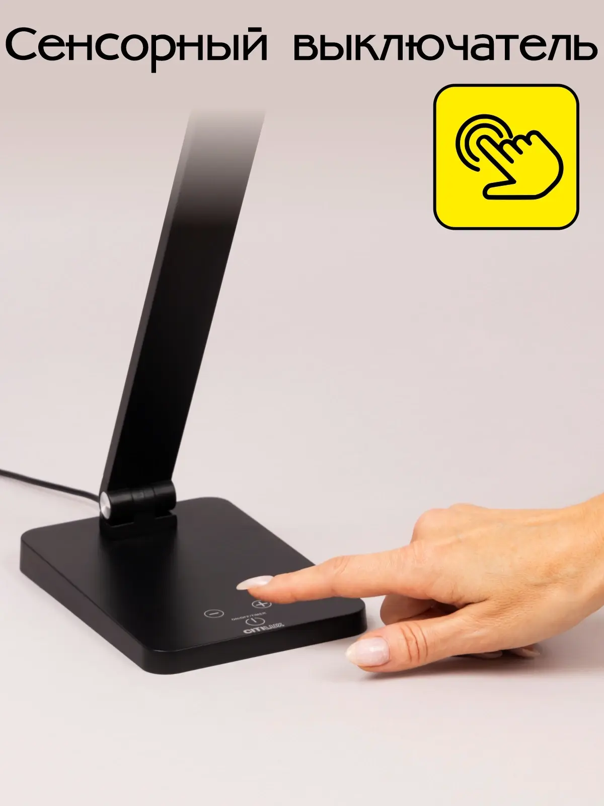 Светодиодная настольная лампа Citilux Ньютон CL803081 с регулировкой яркости, встроенным таймером и USB зарядкой. Основание светильника прямоугольной формы из ударопрочного полимера, стойка и корпус светодиодного модуля - алюминиевый профиль, цвет чёрный матовый. Управление сенсорное, пять уровней яркости от 10% до 100%, таймер выключения 45мин. Мощность 9Вт, световой поток 700Лм, цветовая температура 4000К, нейтральный белый свет - без мерцания и пульсаций, безопасен для глаз. Характеристика USB - 5В/1,2А. Длина сетевого провода 150см. Настольная лампа Citilux Ньютон CL803081 подойдет для рабочего стола руководителей, офисных работников, студентов и школьников,