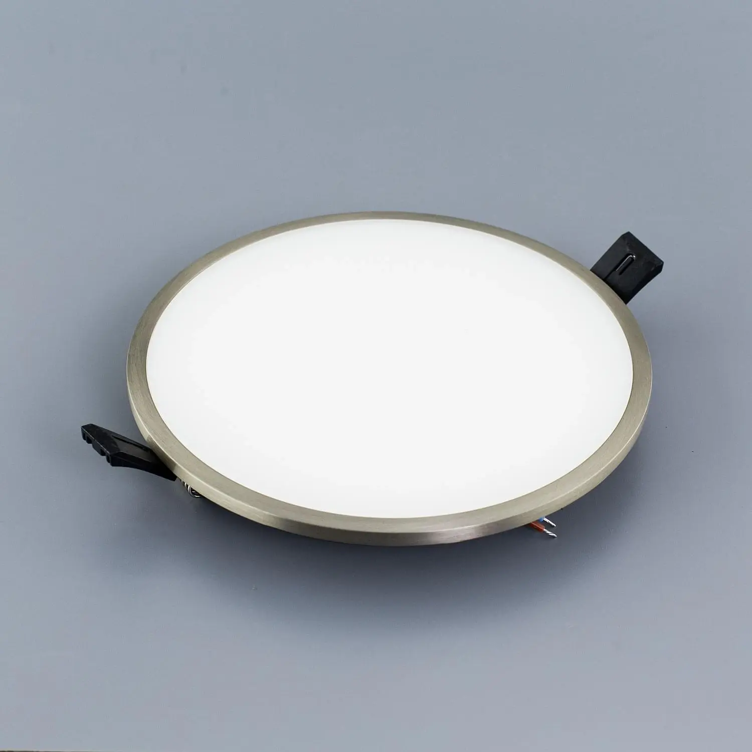 Изделие мощностью 22Вт, световой поток 1760Лм, цветовая температура – 3000К - тёплый свет, класс защиты IP20, осветит до 9м². Внешний диаметр светильника 17,5см, диаметр врезки 15,5см, глубина врезки 2см.