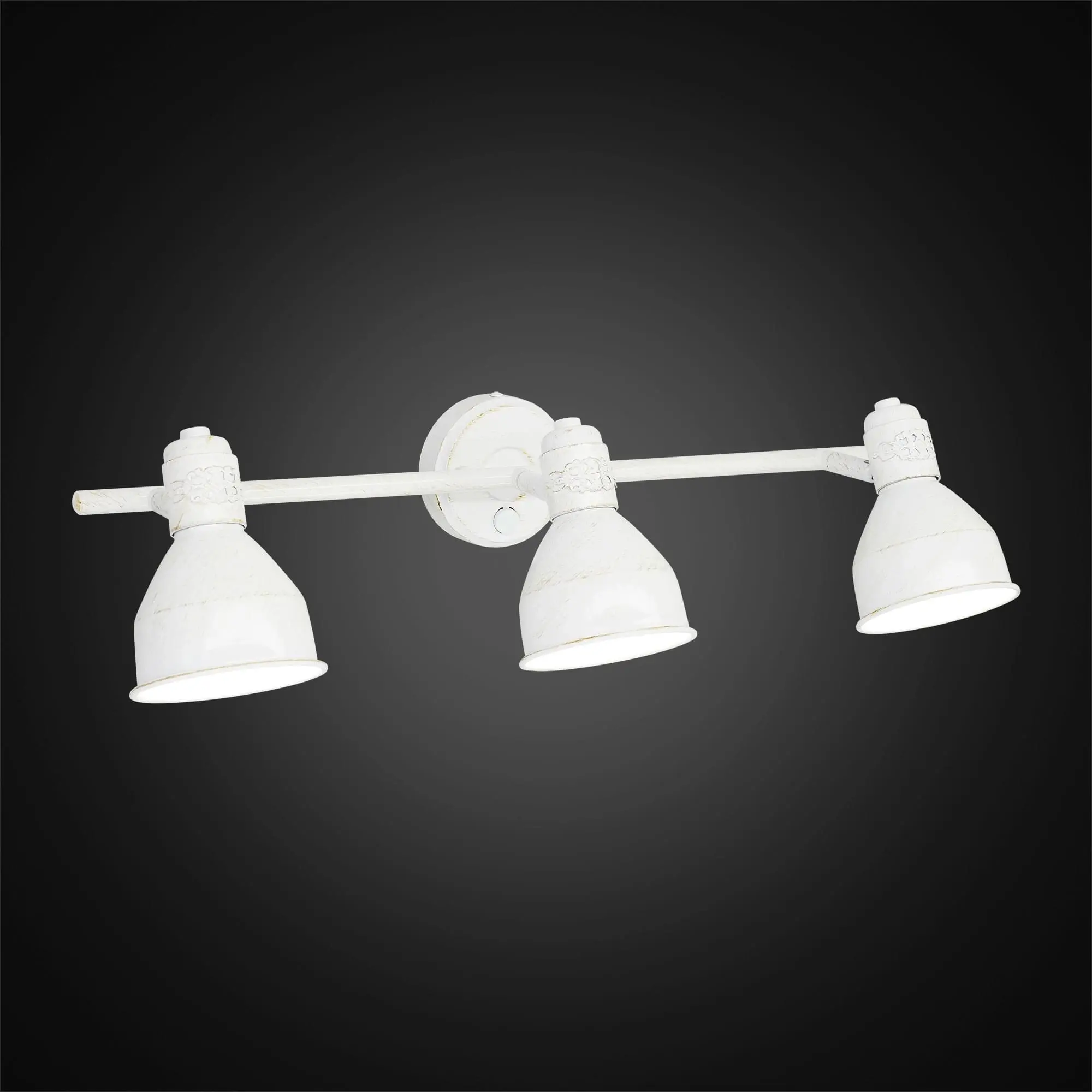 Очаровательный настенный светильник Citilux Опус CL502533 станет прекрасным дополнением вашего интерьера. Корпус металлический, благородного белого цвета с лёгкой золотистой патиной. Основание круглой формы с удобным выключателем. На штанге расположены три поворотных плафона.
