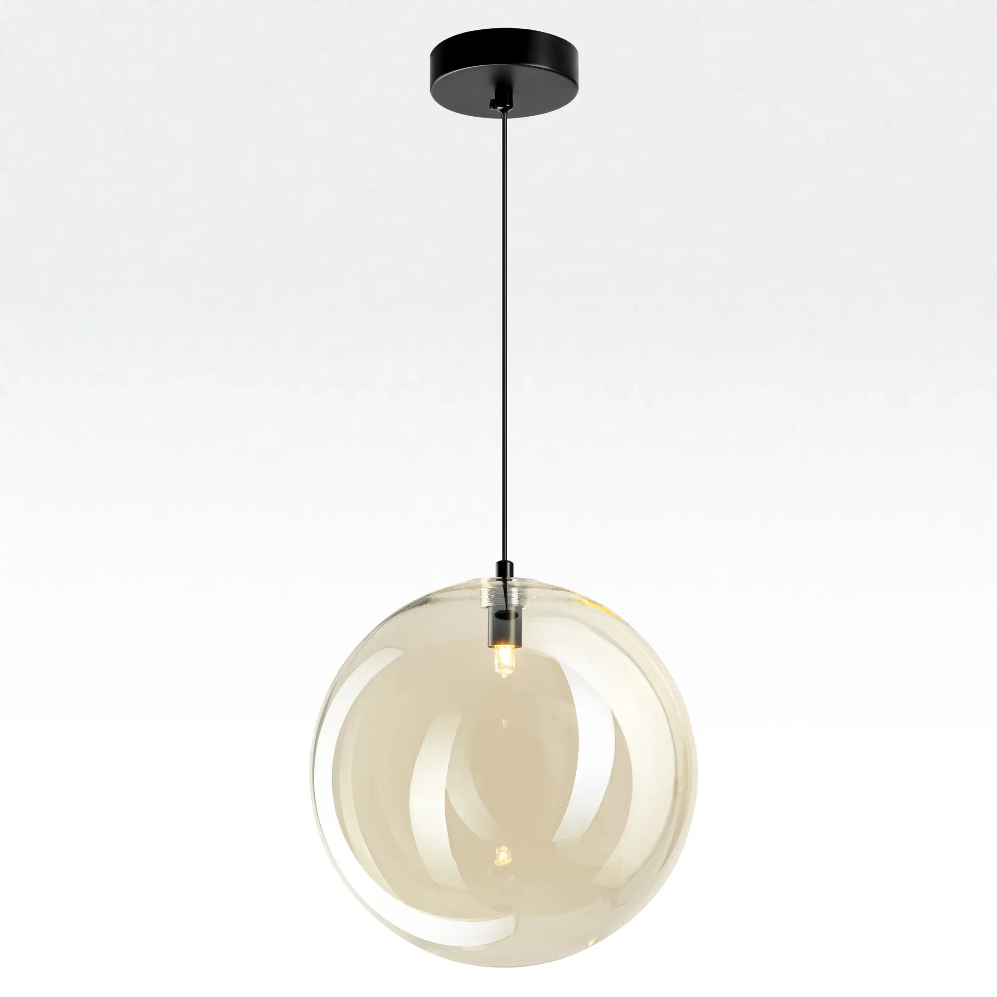 Современный подвесной светильник Citilux ORTON CL202042 представляет собой гармоничное сочетание правильных геометрических форм и воздушной лёгкости. Прозрачный стеклянный шар с золотистым оттенком шампань, подвешенный на чёрном матовом металлическом основании, выглядит эффектно при любом освещении.