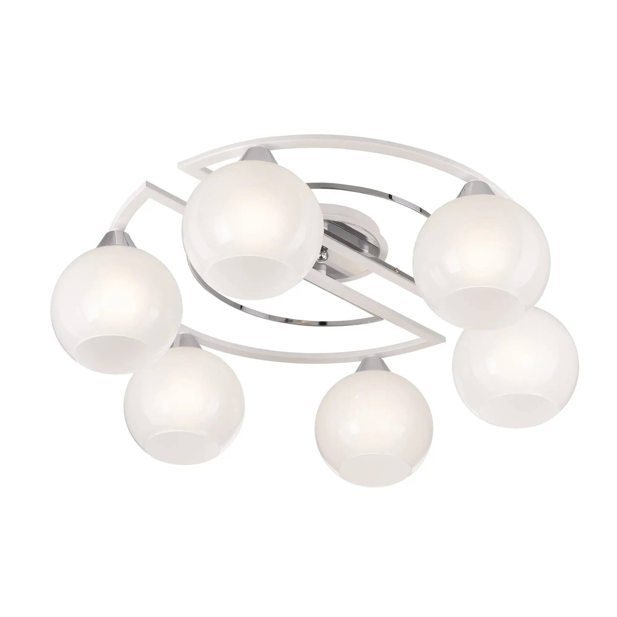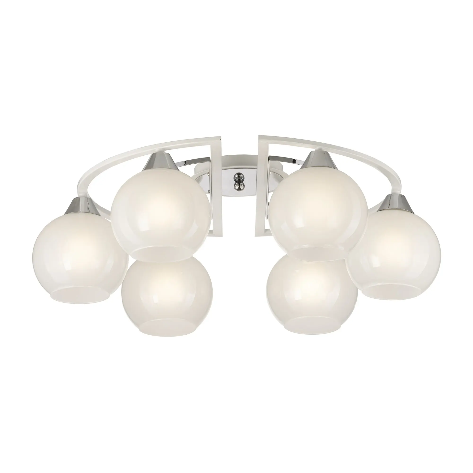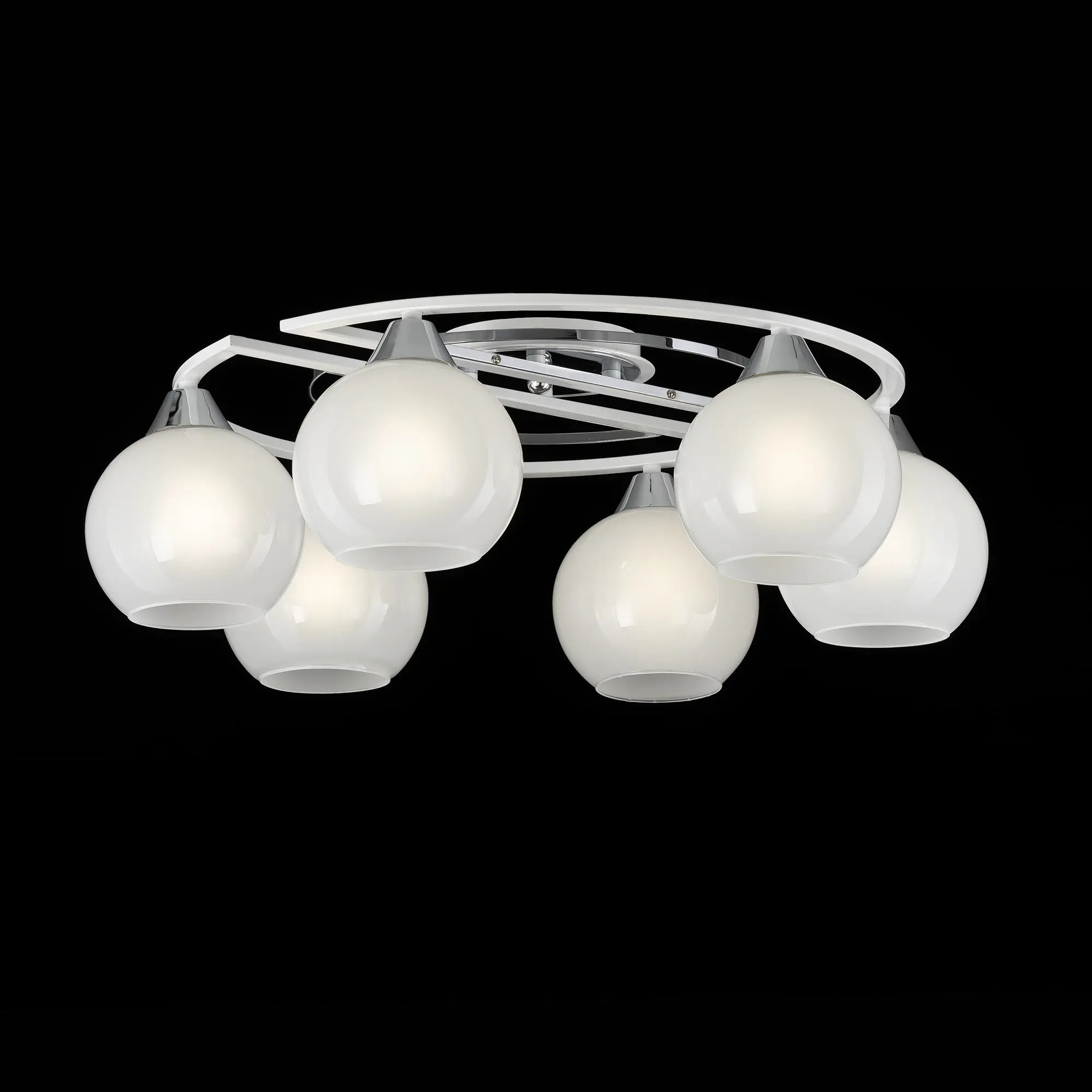 Изящная потолочная люстра Citilux Отто CL121160 является идеальным дополнением к интерьерам оформленным в современном стиле. Металлический корпус имеет круглую форму белого цвета с эффектными хромированными элементами. Плафоны, выполненные из полуматового стекла, представлены в форме усечённых шаров.