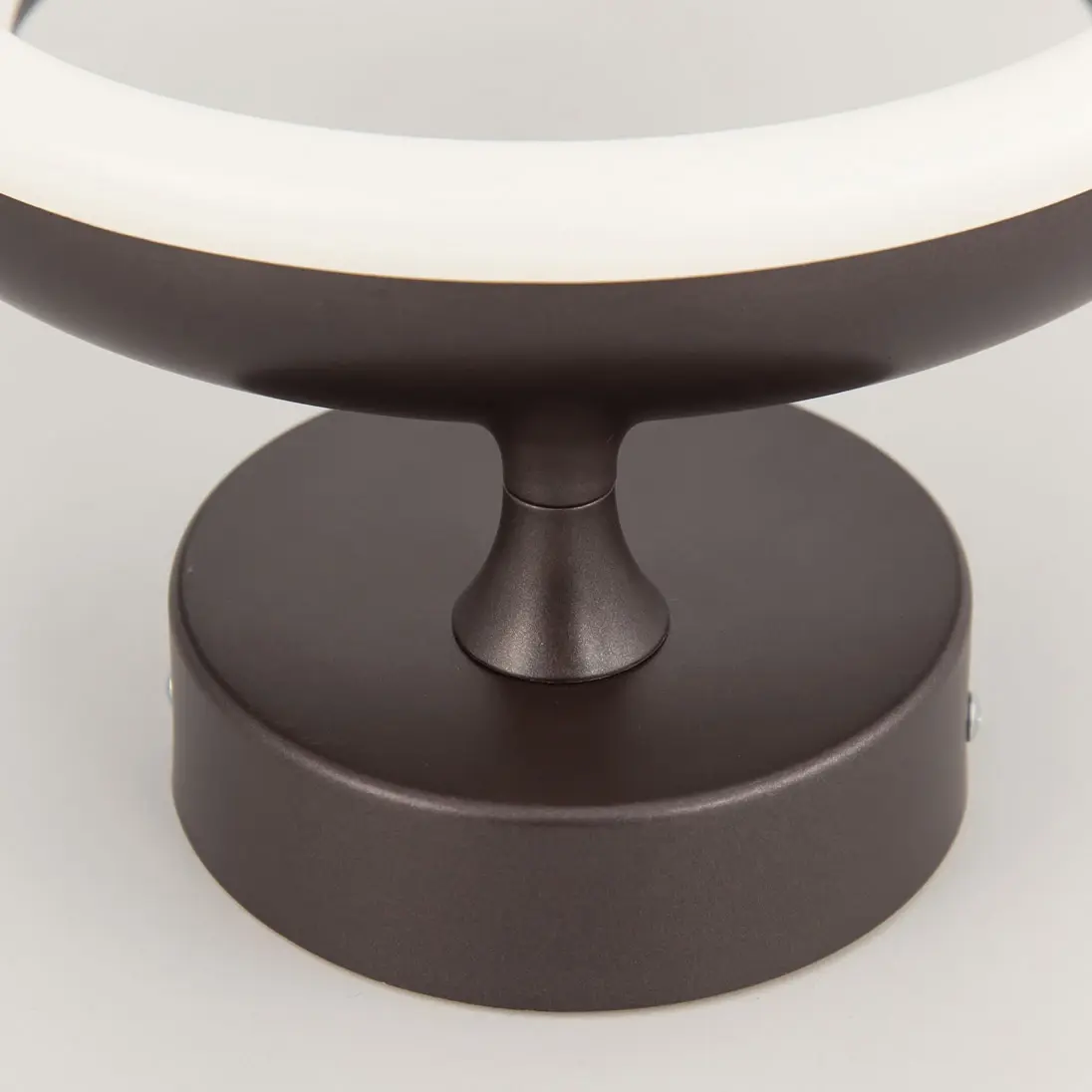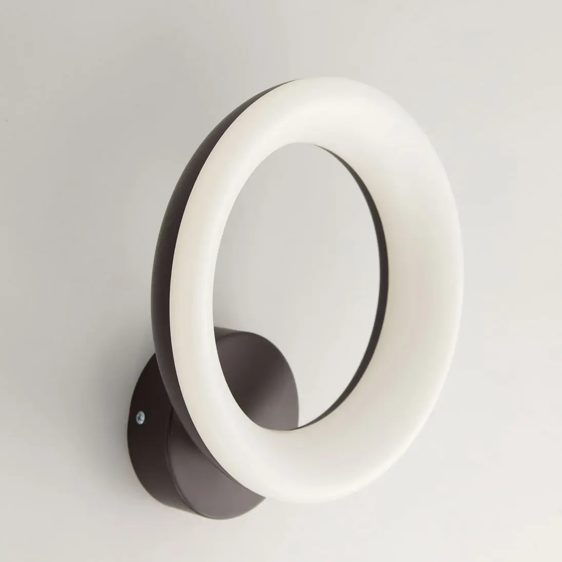 Светодиодный настенный светильник Citilux Паркер CL225B315 коричневого цвета с круглым основанием и светодиодным модулем-плафоном в форме кольца. Корпус светильника из прочного полимера. Мощность 12Вт, световой поток 960Лм, освещаемая площадь около 3,5м². Предустановлено 4 режима освещения, с управлением обычным настенным выключателем.