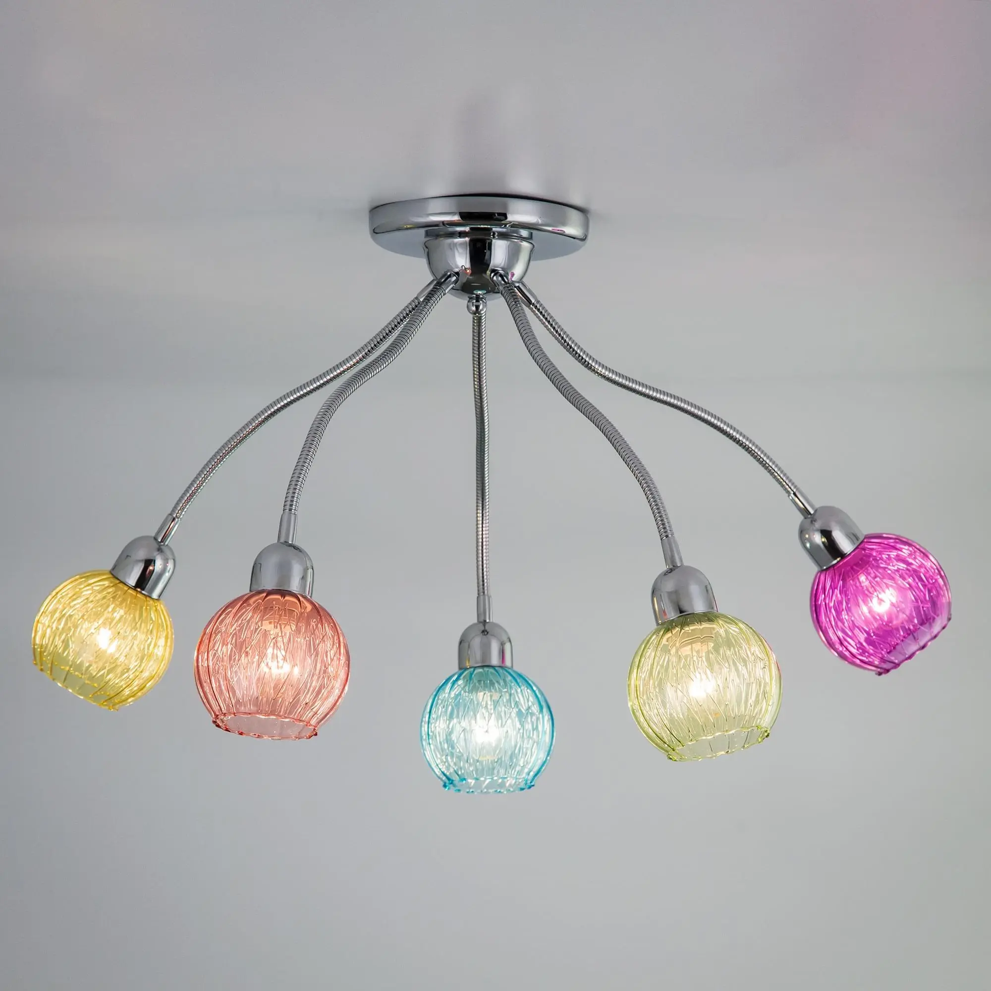Светильник с головками на гибких элементах, длина гибкого элемента 32см, размер головки 13см, цветное стекло с внутренним алюминиевым декором