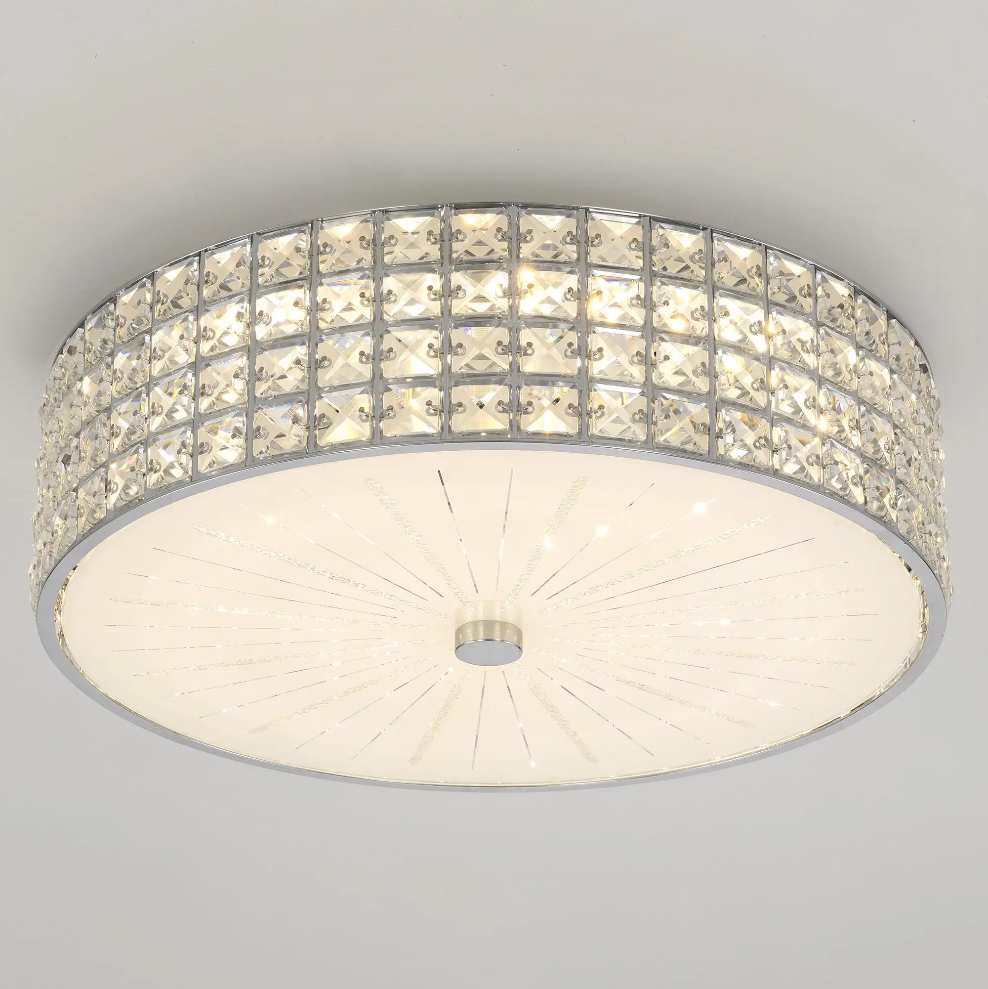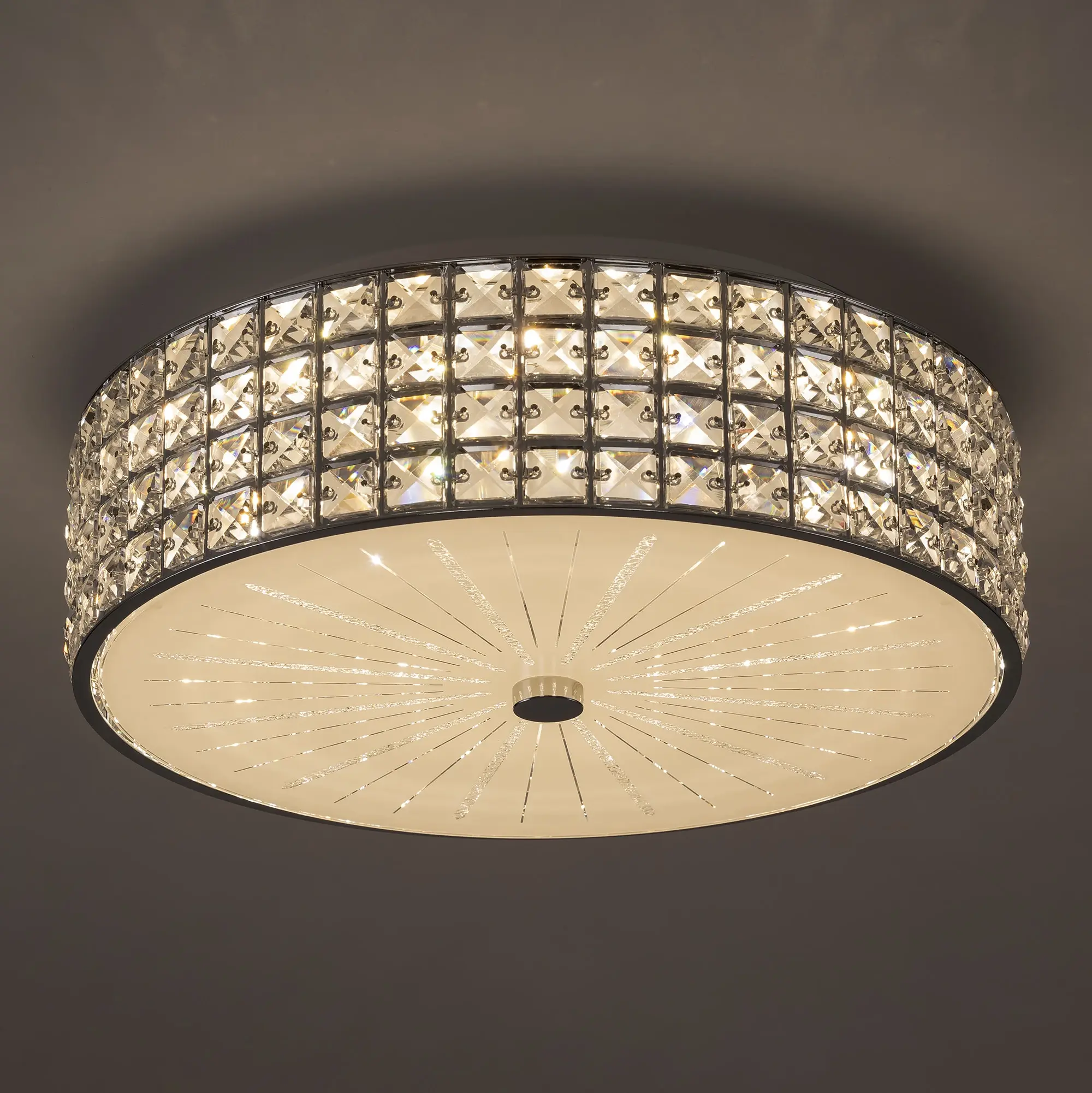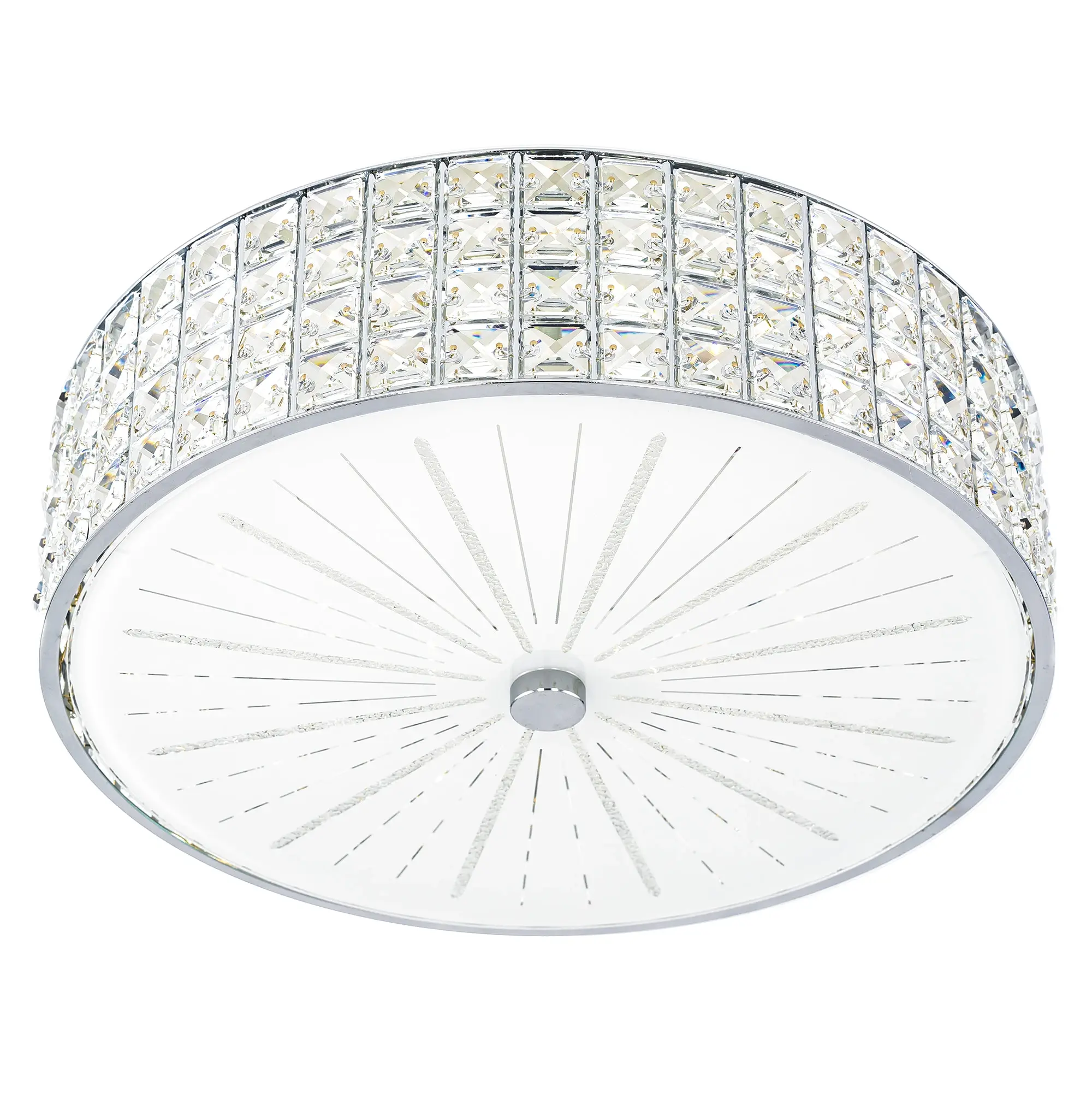 Хрустальная потолочная люстра Citilux Портал CL32415G1 выполнена в стиле современной классики. Корпус металлический, цвет глянцевый хром. Боковая часть светильника украшена хрустальными элементами с классической огранкой, в нижней части установлен стеклянный глянцевый рассеиватель с лучистым рисунком.