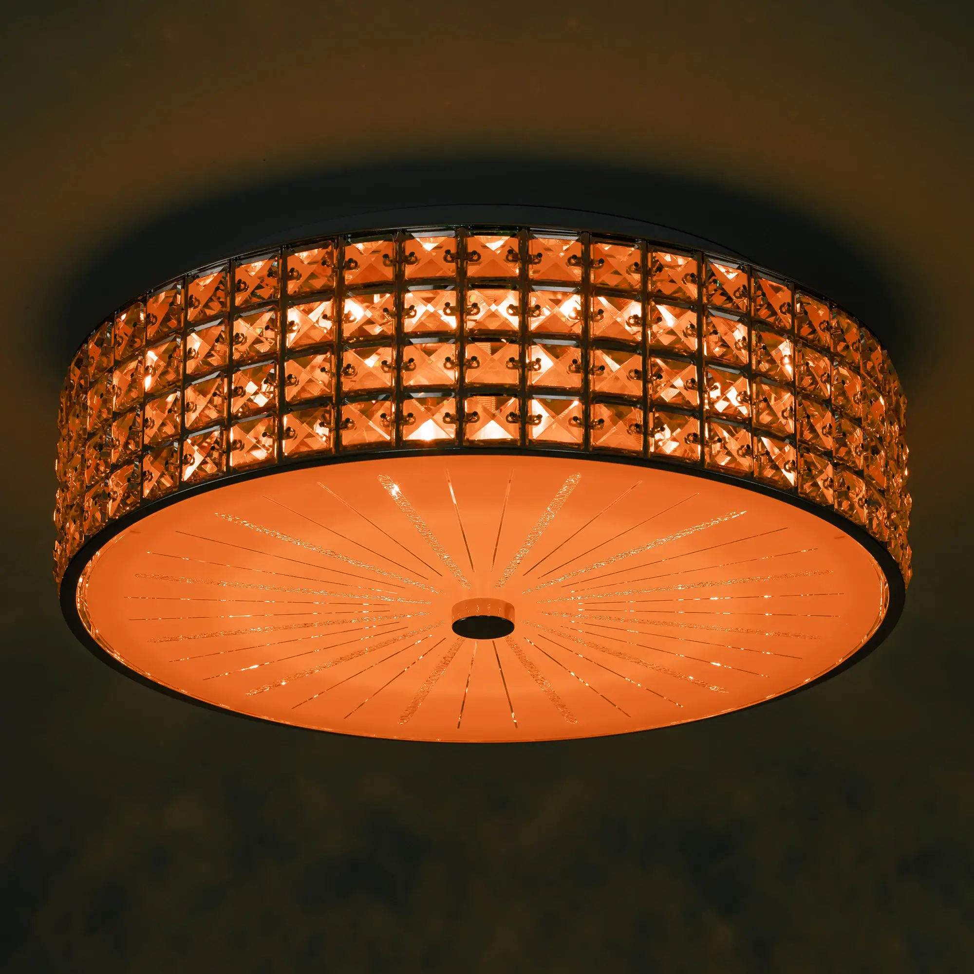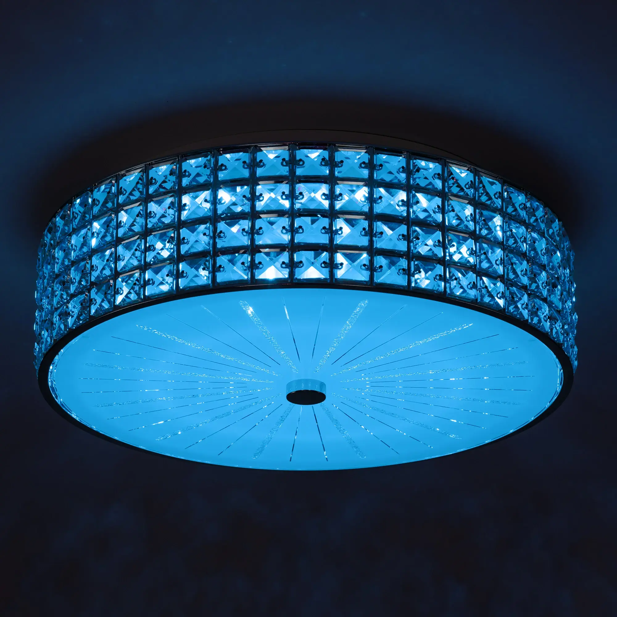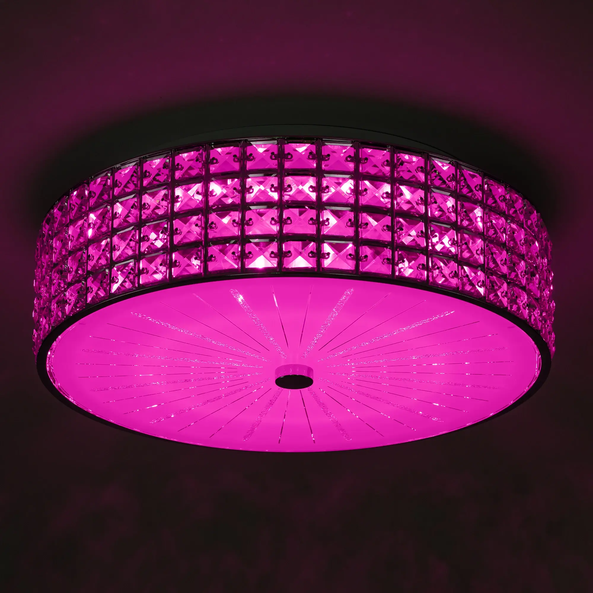 В изделии установлены яркие светодиоды основного света и цветной RGB подсветки. С помощью пульта доступно: плавная регулировка яркости от 10 до 100%, управление цветовой температурой от 3000К до 5500К позволяет настроить любые оттенки теплого, нейтрального или холодного света. Цветная RGB подсветка имеет различные режимы работы. Есть функция отсроченного выключения, 4 настраиваемых режима памяти, которыми также можно управлять настенным выключателем. Пульт ДУ в комплекте, тип батареек ААА (батарейки в комплект не входят, приобретаются отдельно). Подходит для всех типов потолков, в том числе натяжных. Тип крепления – планка. Мощность изделия 68Вт, световой поток 5800Лм. Свет безопасный для глаз, без мерцания и пульсаций.