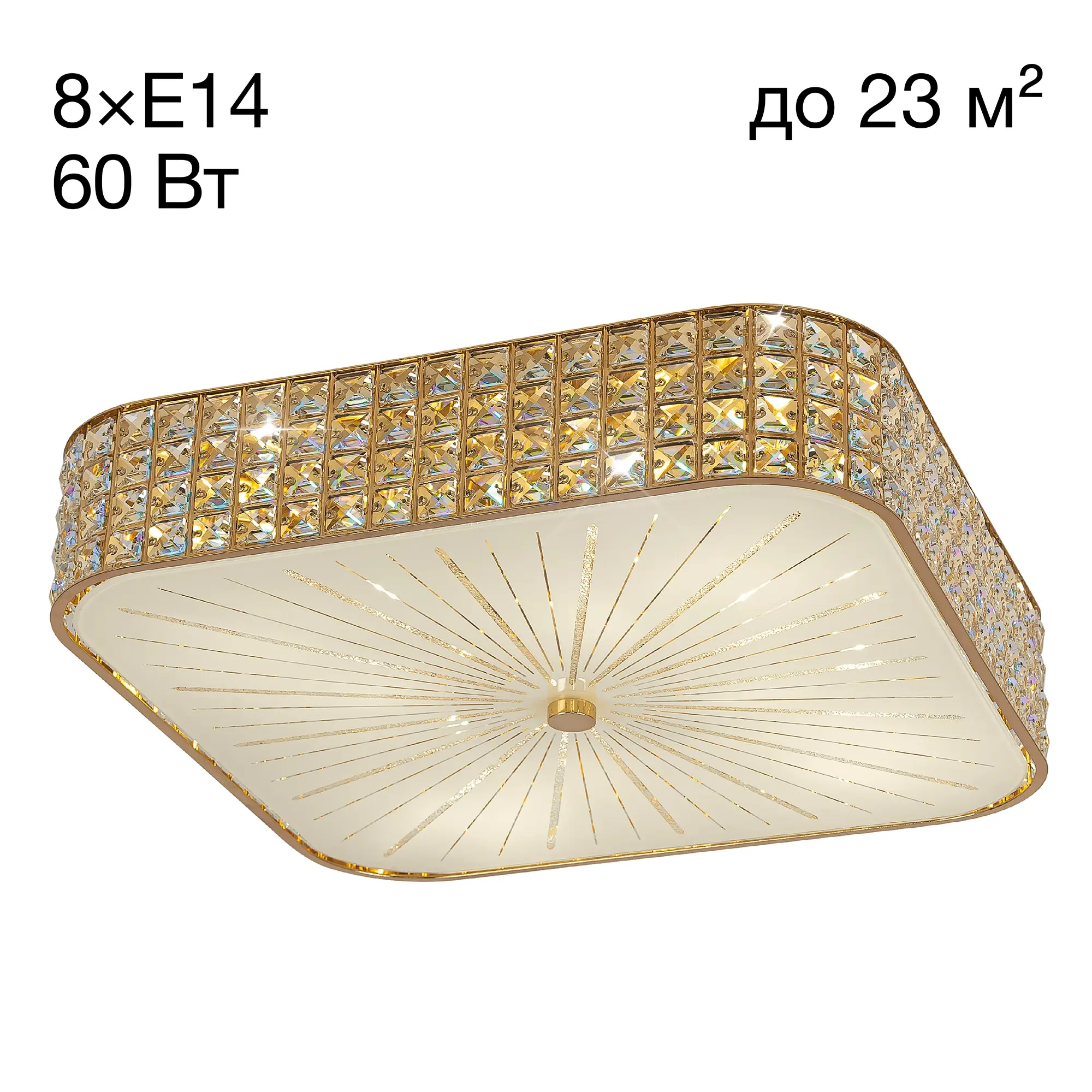Коллекция Портал от Citilux в золотом цвете является одной самых обширных и популярных линеек хрустальных светильников, производства нашей компании. Безупречное качество, изысканный дизайн моделей, и волнующий блеск хрусталя покорили множество наших покупателей. В особенности хорошо светильники золотого цвета впишутся в интерьеры, выполненные в тёплых, пастельных тонах. Закругленные углы в люстрах квадратной формы делают модели серии Портал менее строгими, и придают им свой, неповторимый шарм и изящество. Все светильники коллекции производятся на основе арматуры из металла, с высококачественным гальваническим покрытием, надежно защищающим изделие от коррозии и других внешних воздействий. Модель на восемь рожков, способна полноценно осветить комнаты площадью от 14-ти до 23-ёх квадратных метров. Термостойкие патроны позволяют использование ламп накаливания мощностью до 60 Ватт, либо светодиодных ламп без ограничения по мощности. При этом хотим обратить ваше внимание, на тот факт, что свойства хрусталя наиболее ярко выражаются при использовании именно прозрачных лампочек.
