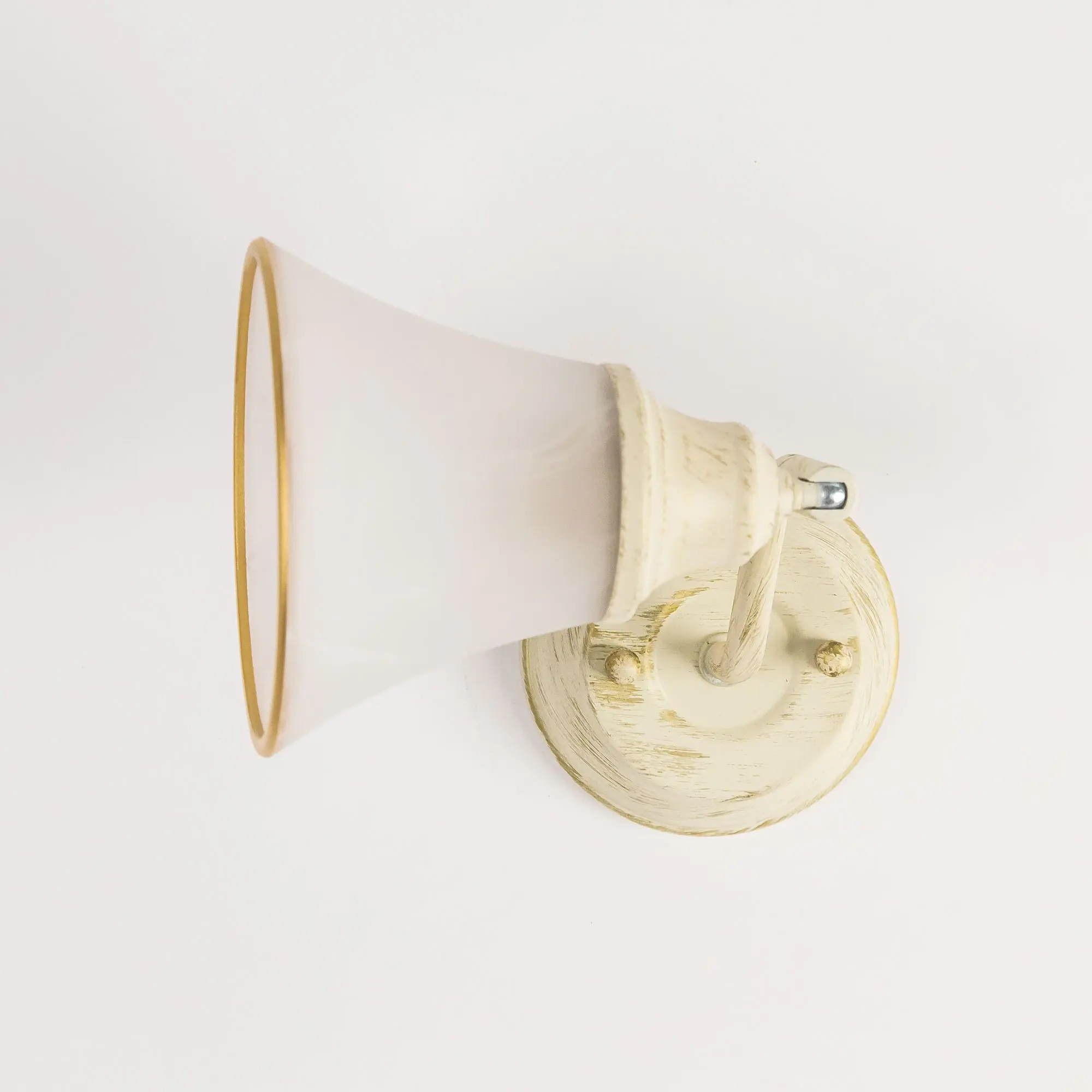 Светильник Citilux Прованс CL511514 с одним поворотным плафоном. Корпус модели металлический, молочного цвета с золотистой патиной. Плафон стеклянный белый полуматовый в форме колокольчика, с элегантной золотистой окантовкой. В модели используется лампа с цоколем Е14 и максимальной мощностью для ламп накаливания 60Вт. Площадь освещения около 2,5 кв. метров. Спот CL511514 отлично подойдет для освещения помещений, оформленных в стиле легкой классики или прованс,
