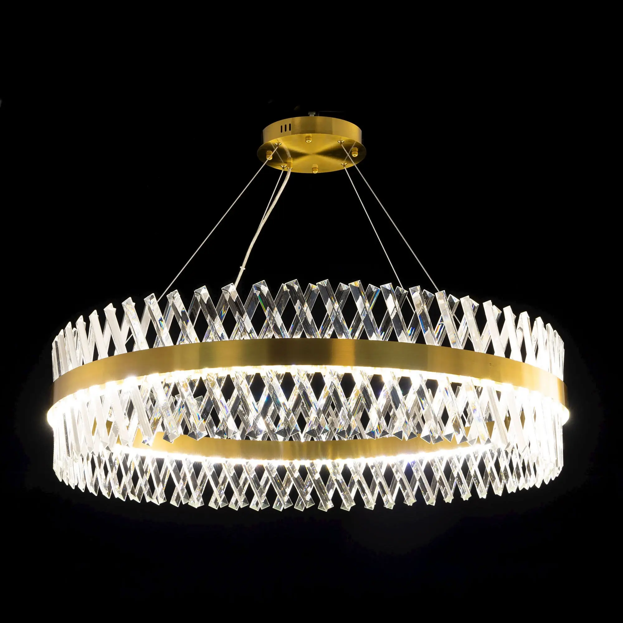 Хрустальная подвесная светодиодная люстра Citilux Ричард CL336103 с пультом дистанционного управления. Корпус светильника металлический, в форме кольца, цвет бронза. Хрустальные элементы кристально прозрачные, великолепно рассеивают свет. С помощью пульта ДУ можно включать и выключать светильник, изменять яркость 10-100%, цветовую температуру от 3000К до 5500К, с возможностью настроить любые оттенки теплого, нейтрального или холодного света. Пульт ДУ в комплекте, тип батареек ААА (в комплект не входят). Мощность люстры 130Вт, световой поток 12000Лм.,