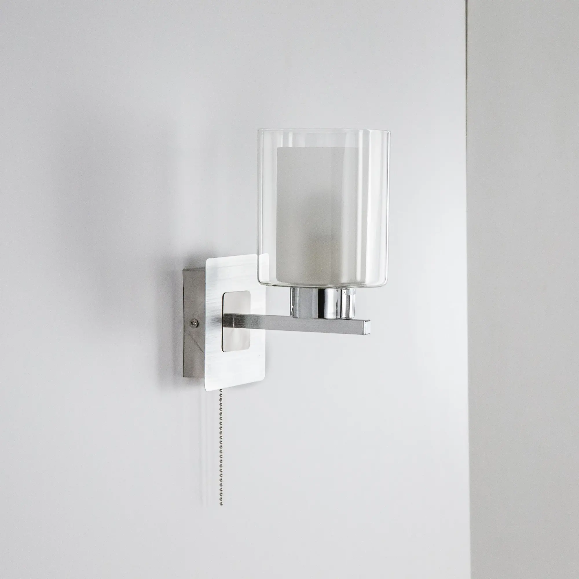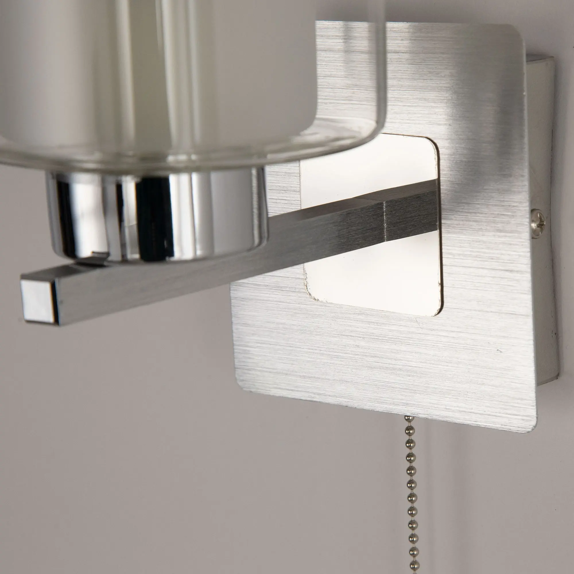 Бра настенное однорожковое Citilux Риволи CL104310 с выключателем. Корпус светильника изготовлен из металла, цвет алюминий с декоративными хромированными элементами. Плафон стеклянный двойной. Внешний плафон прозрачный, в сечении имеет квадратную форму. Внутренний плафон полуматовый в форме цилиндра. Тип крепления – планка. В бра используется лампа с цоколем E27, максимальная мощность лампы накаливания 75Вт. Площадь освещения около 3,5 кв. м. Модель отлично подойдет в комнаты, оформленные в современном стиле.,