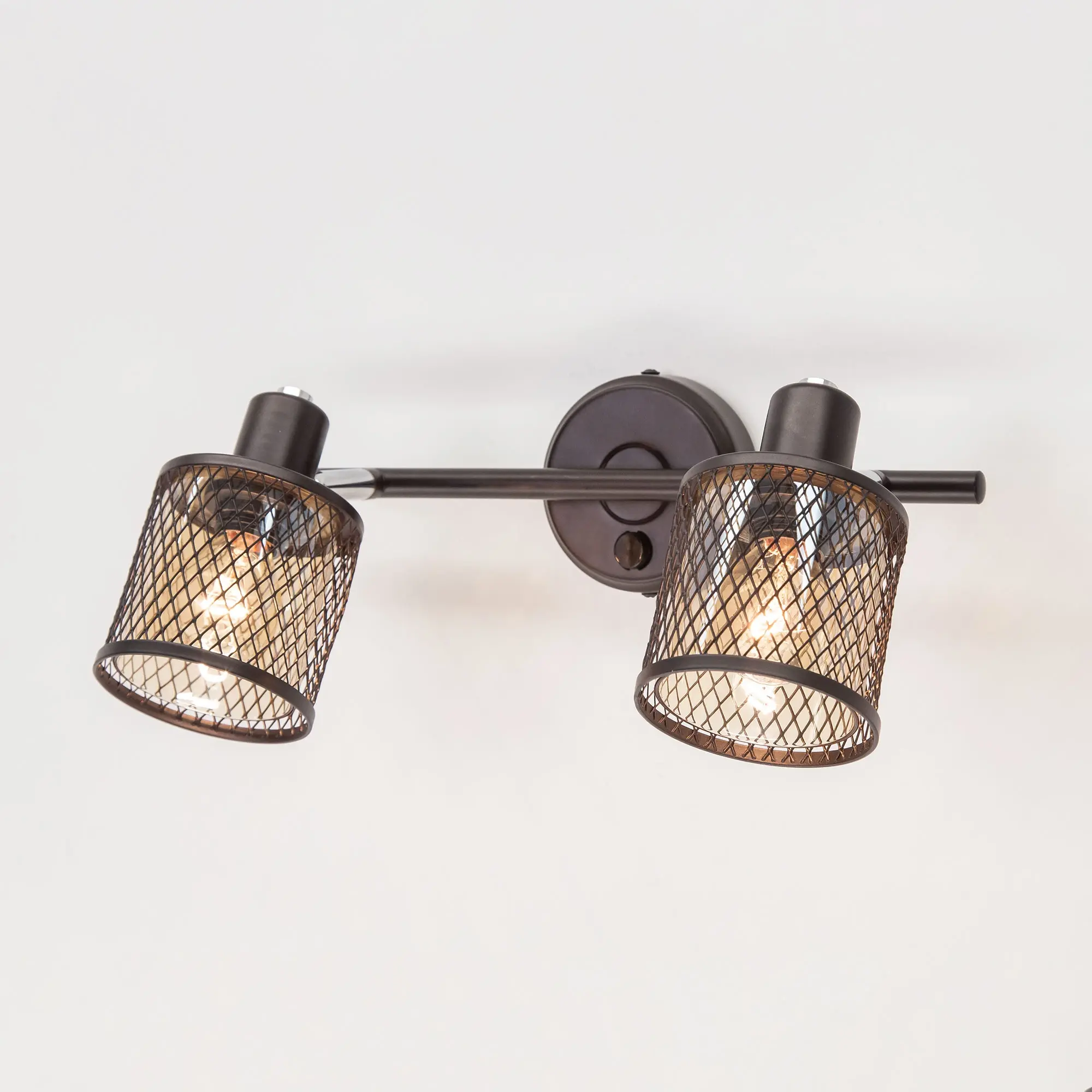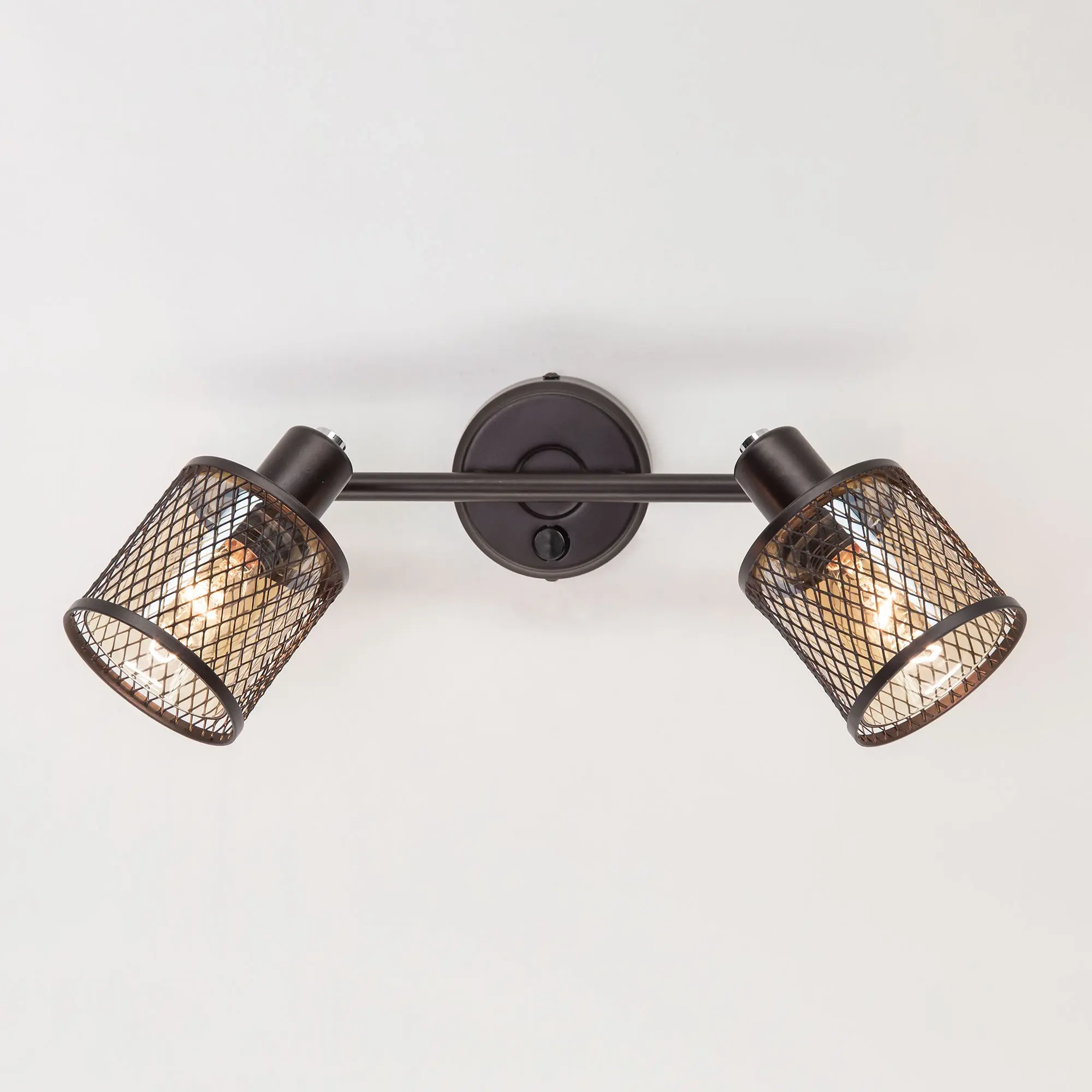 Настенный светильник с двумя поворотными плафонами на штанге Citilux ROBIN CL535625 сочетает в себе современный дизайн и функциональность. Корпус металлический, коричневого цвета. Цилиндрические плафоны двойные - внутренний из прозрачного стекла светло-янтарного оттенка, обеспечивает мягкое и равномерное освещение, в то время как наружный металлический сетчатый плафон добавляет индустриальный стиль в интерьер. Удобный выключатель на корпусе позволяет легко управлять светом, не прибегая к настенным выключателям.