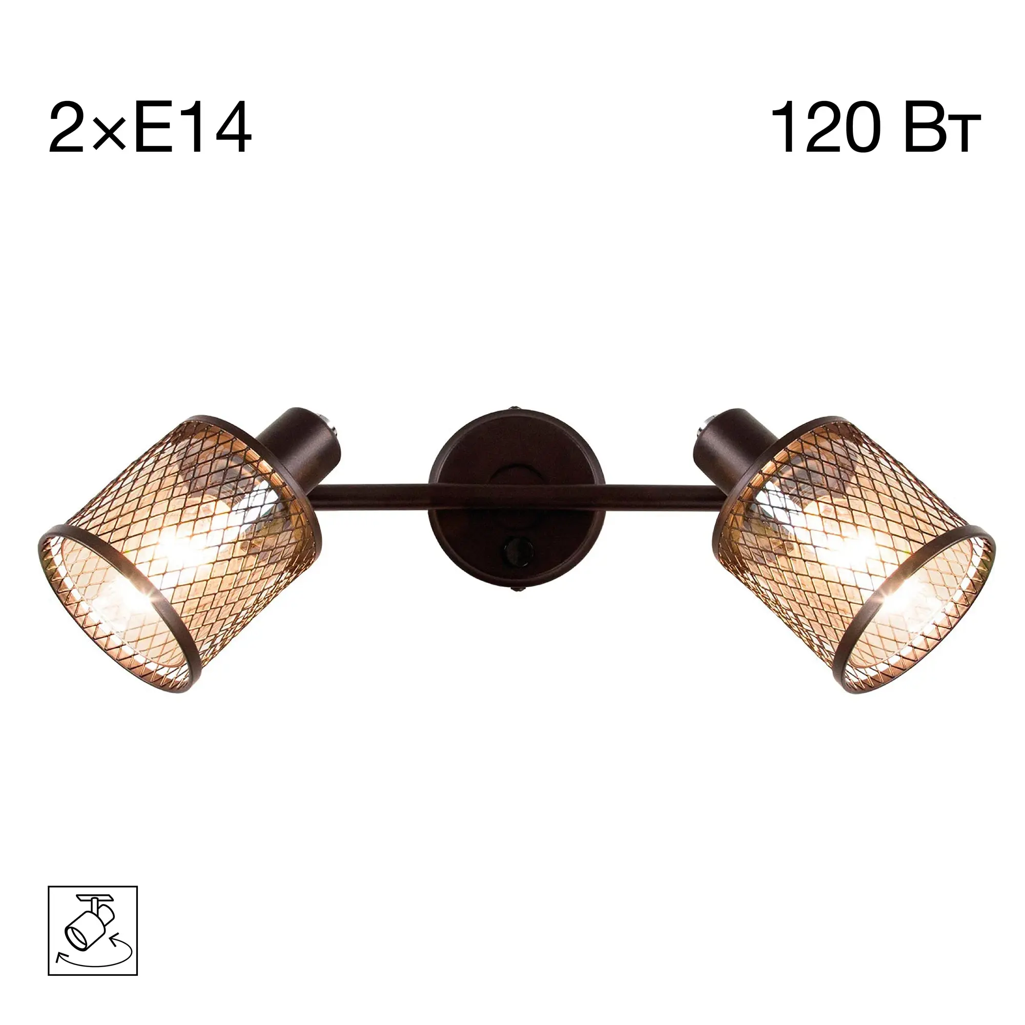 В изделии используются 2 лампы с цоколем Е14 максимальной мощностью для ламп накаливания 60Вт (в комплект не входят, приобретаются отдельно).