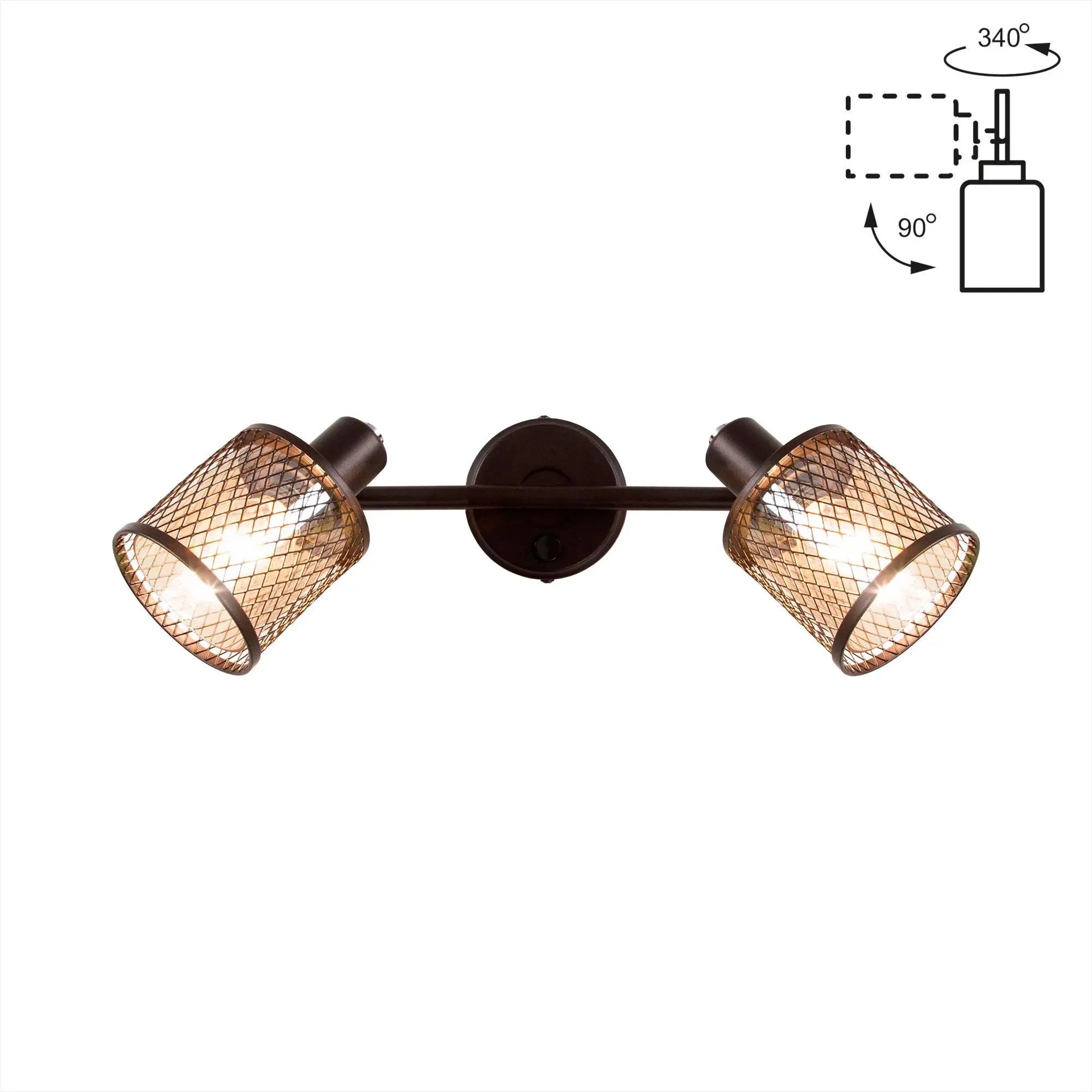 Поворотный механизм регулируется на 340° по горизонтали и на 90° по вертикали, что позволяет легко установить плафоны в нужное положение.