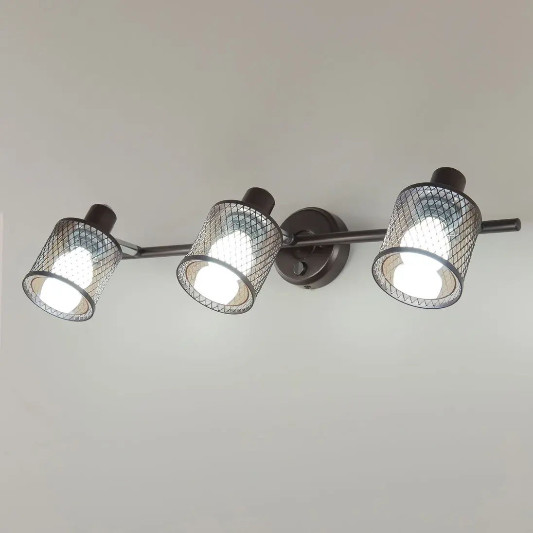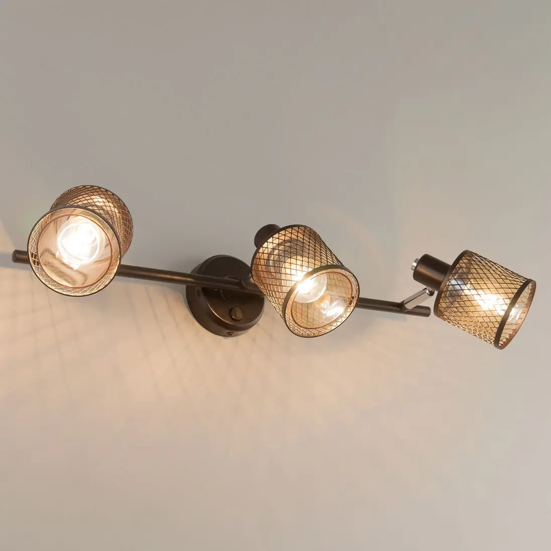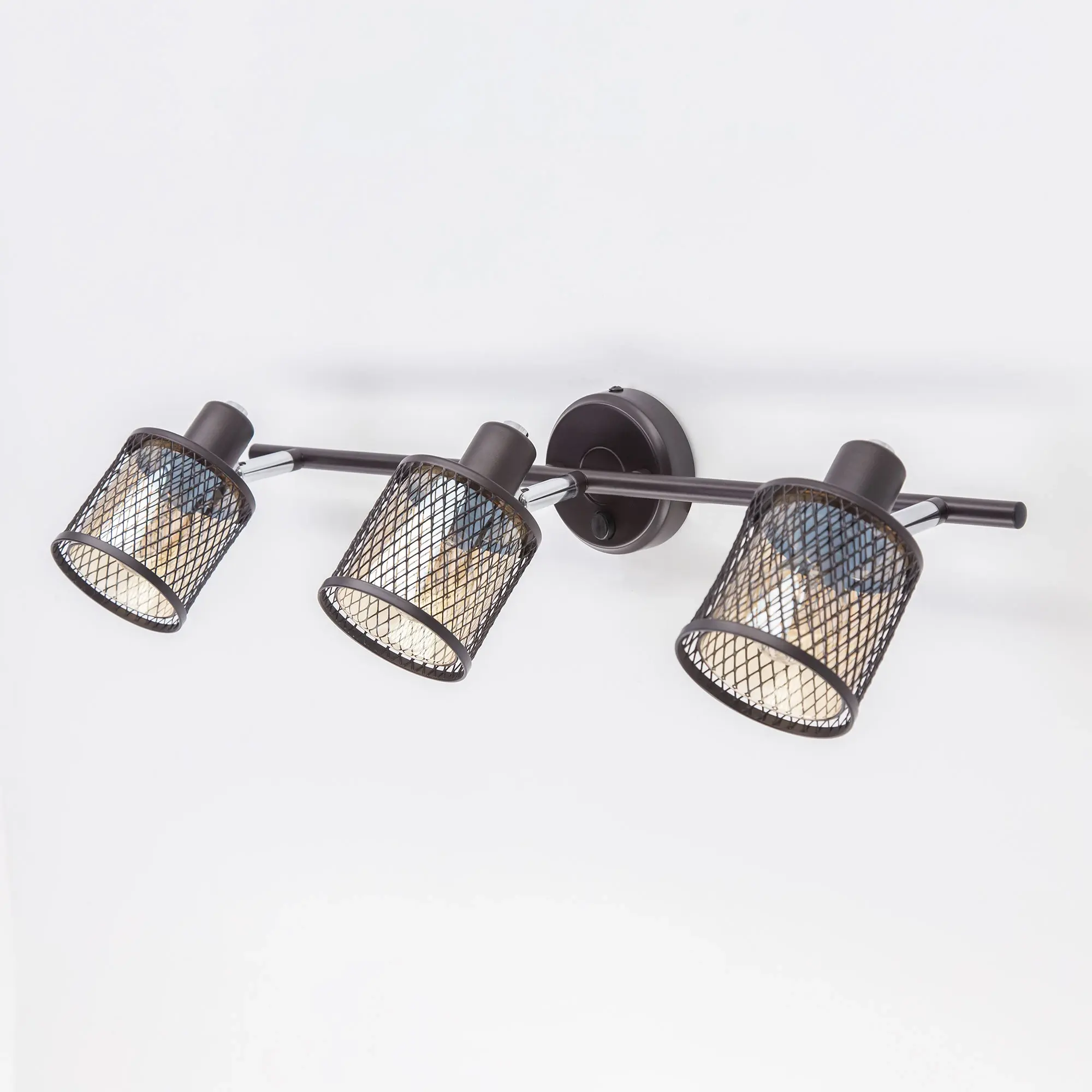 Настенный светильник с тремя поворотными плафонами на штанге Citilux ROBIN CL535635 сочетает в себе современный дизайн и функциональность. Корпус металлический, коричневого цвета. Цилиндрические плафоны двойные - внутренний из прозрачного стекла светло-янтарного оттенка, обеспечивает мягкое и равномерное освещение, в то время как наружный металлический сетчатый плафон добавляет индустриальный стиль в интерьер. Удобный выключатель на корпусе позволяет легко управлять светом, не прибегая к настенным выключателям.