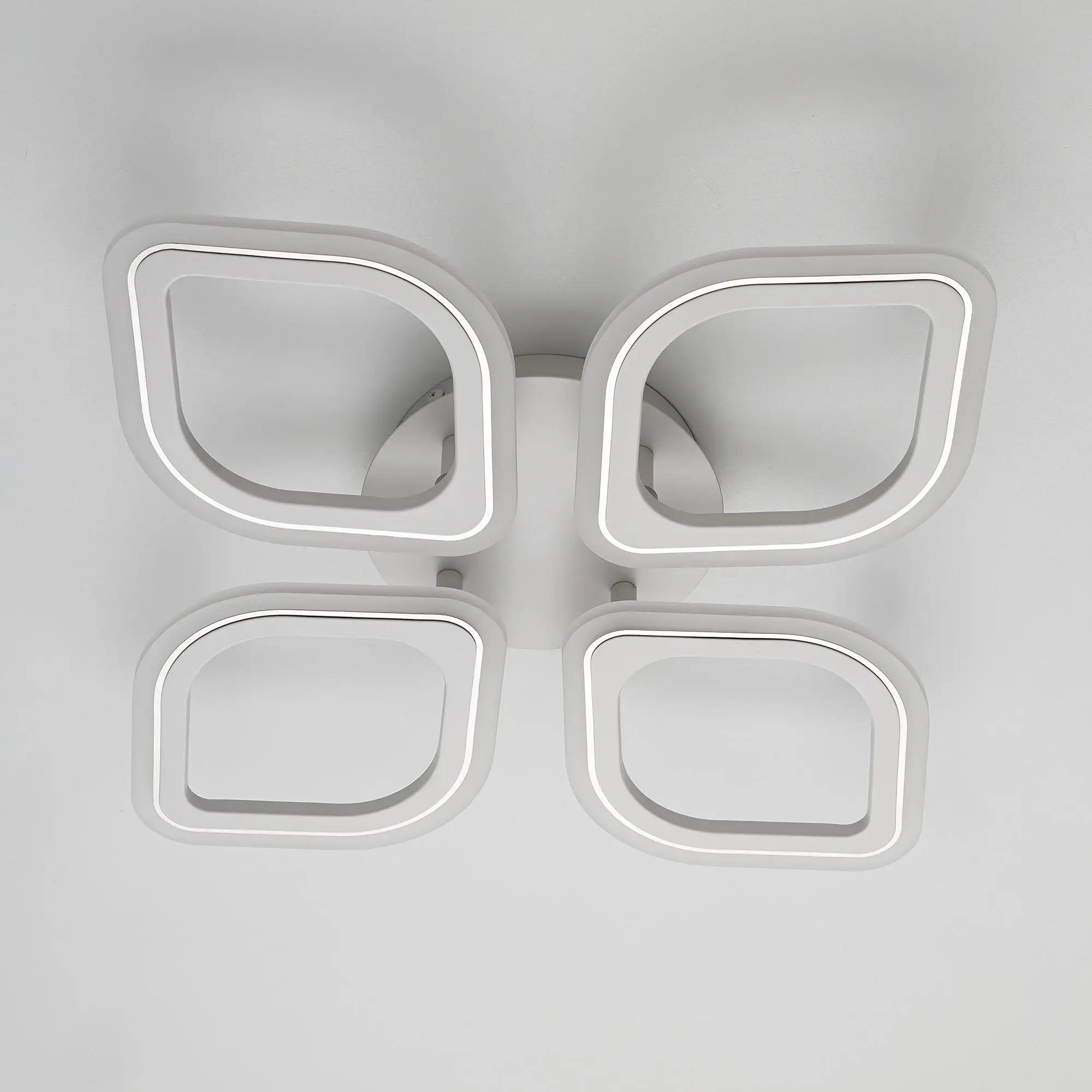 Светодиодная потолочная люстра Citilux Ромби CL236040R с пультом дистанционного управления. Светильник белый матовый, с круглым основанием. Четыре светодиодных модуля плафона, формирующих внешний вид люстры, выполнены в форме лепестков. Корпус плафонов металлический, рассеиватель из оптического полимера. Люстрой можно управлять с помощью пульта дистанционного управления и настенным выключателем. Изделие оснащено яркими светодиодами, с возможностью плавной регулировки яркости от 10% до 100%. Цветовая температура регулируется в диапазоне от 3000К до 5500К, позволяя настроить любые оттенки теплого, нейтрального или холодного света, без мерцания и пульсаций. Есть настраиваемые режимы памяти и таймер выключения. Модель подходит для всех типов потолков, в том числе натяжных, тип крепления – планка. Пульт ДУ в комплекте, тип батареек ААА (батарейками не комплектуется). Люстра плоская – высота всего 8см, размер 40х40см, мощность 45Вт, световой поток 4500Лм.