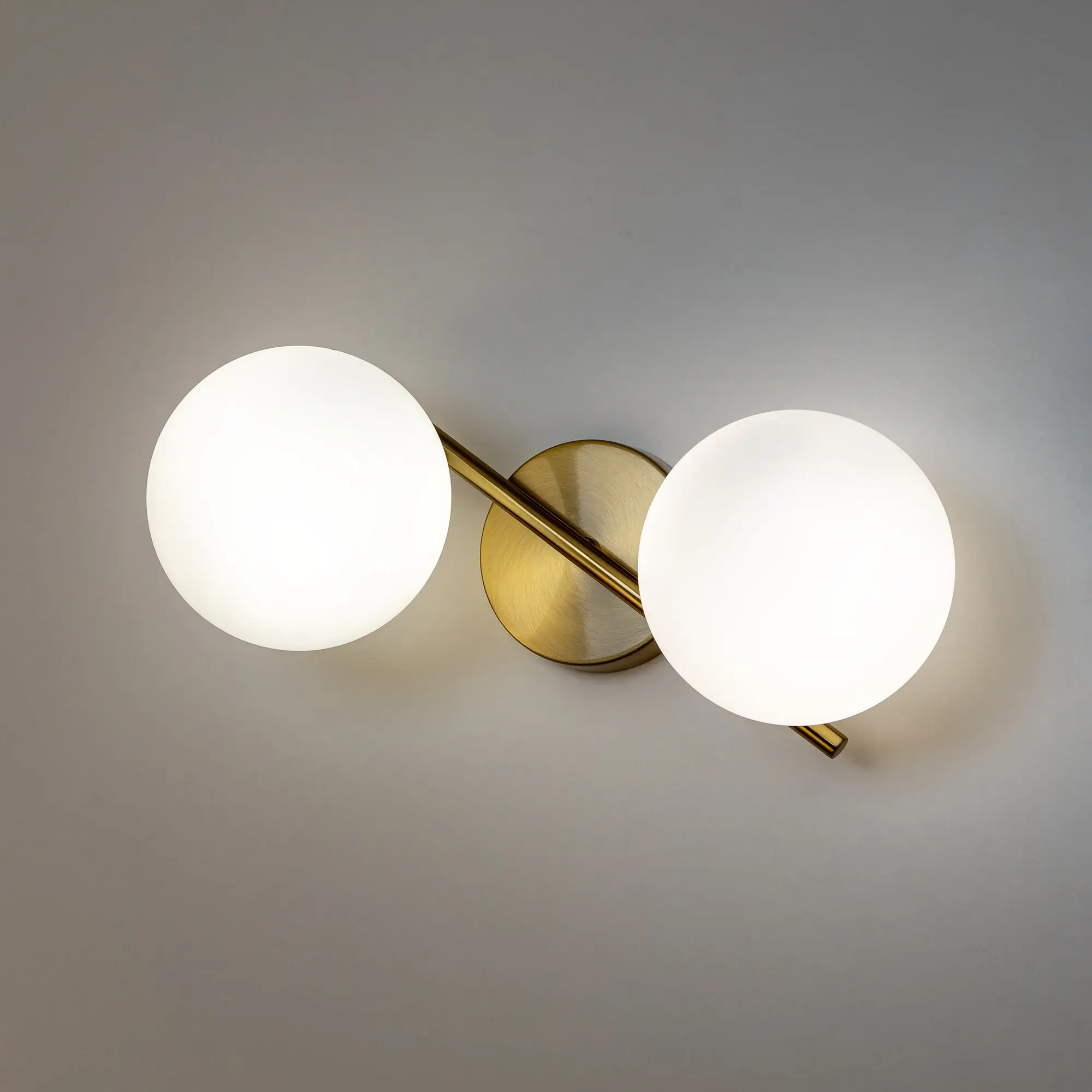 Благородный бронзовый металлический корпус словно излучает тепло и утончённость, а матовые стеклянные шары-плафоны, закреплённые на изящной штанге, создают мягкое, равномерное освещение, наполняющее комнату уютом и гармонией.