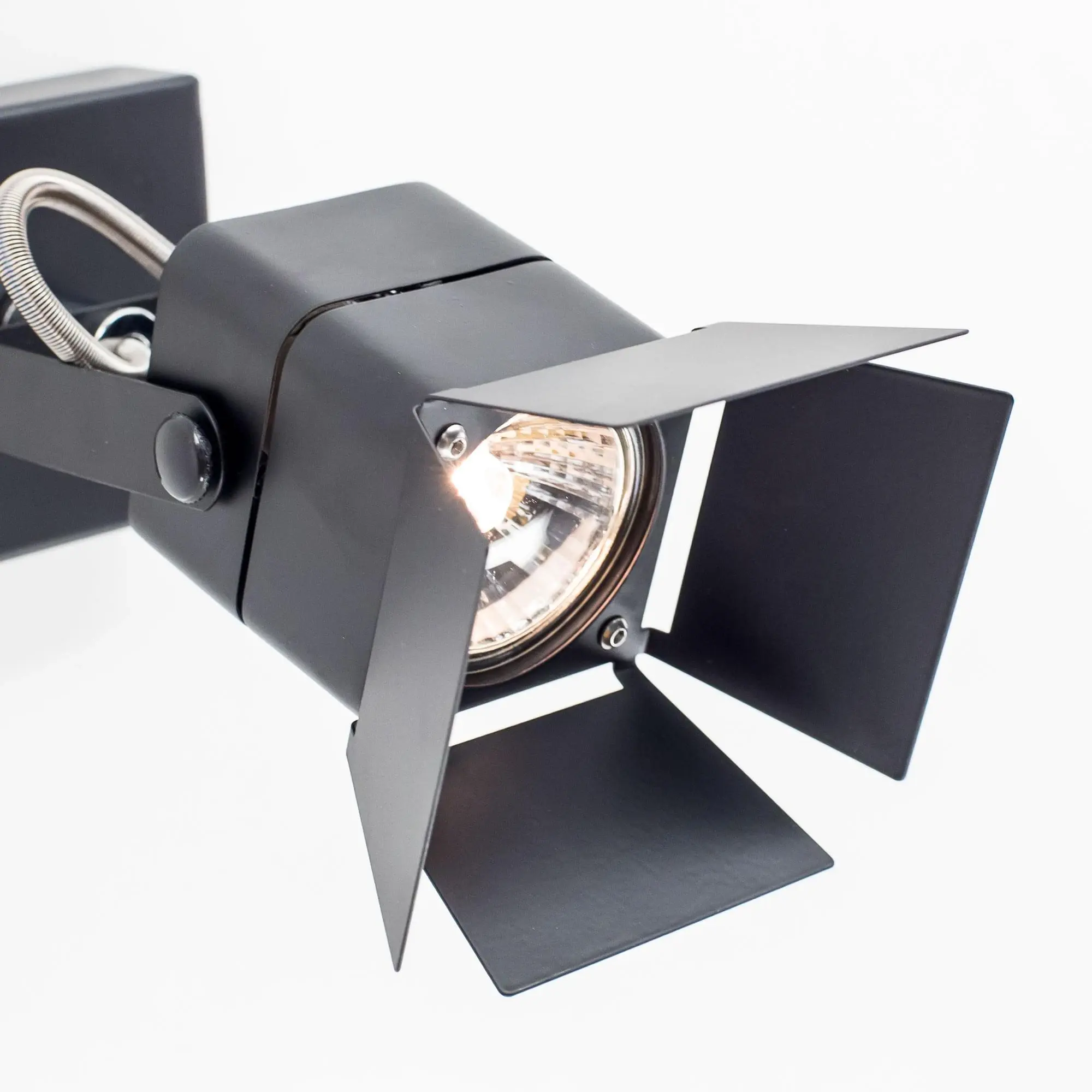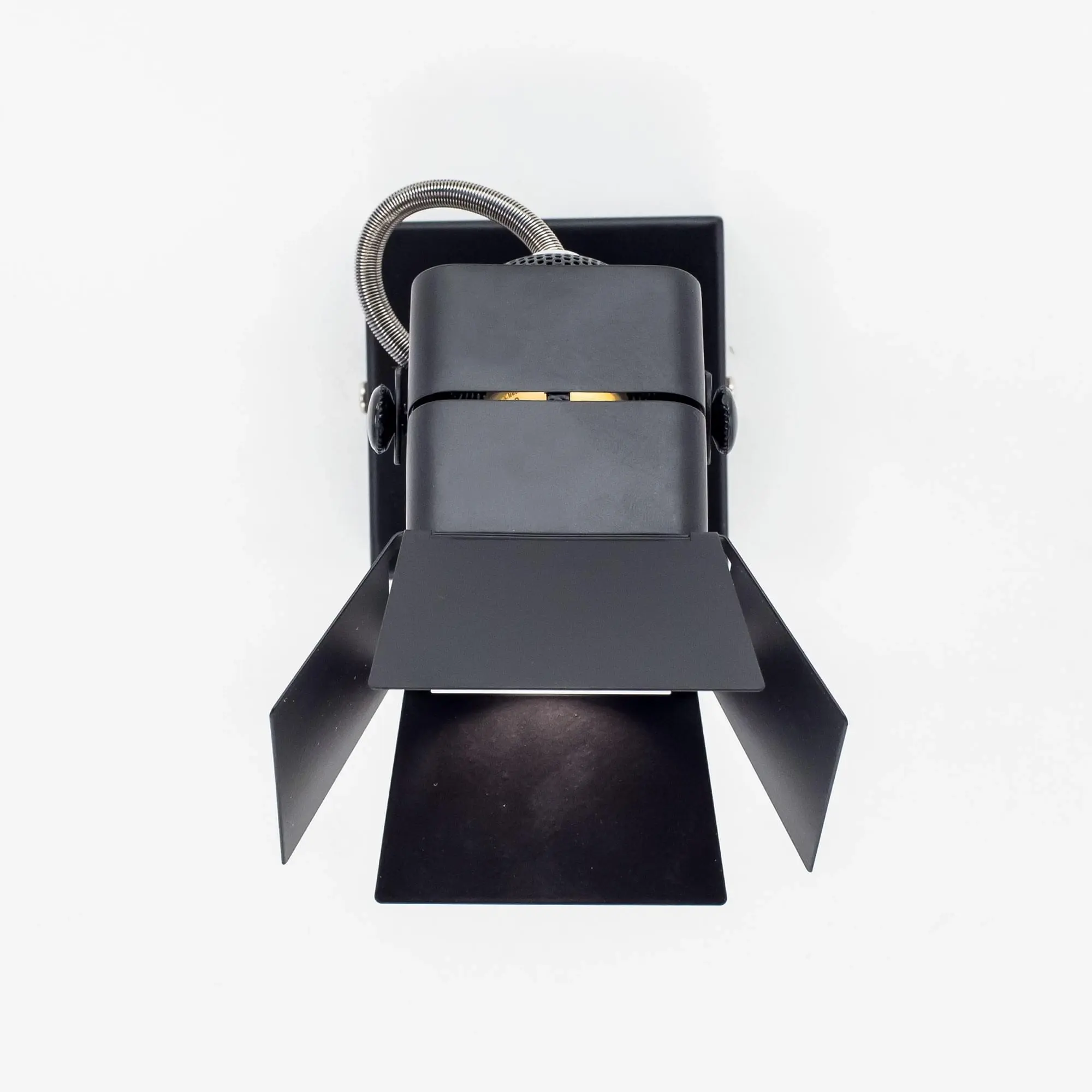 Поворотный настенно-потолочный светильник Citilux Рубик CL526512S в современном стиле. Корпус металлический, квадратной формы, цвет чёрный матовый. Модель стилизована под профессиональные, сценические и театральные софиты со шторками.