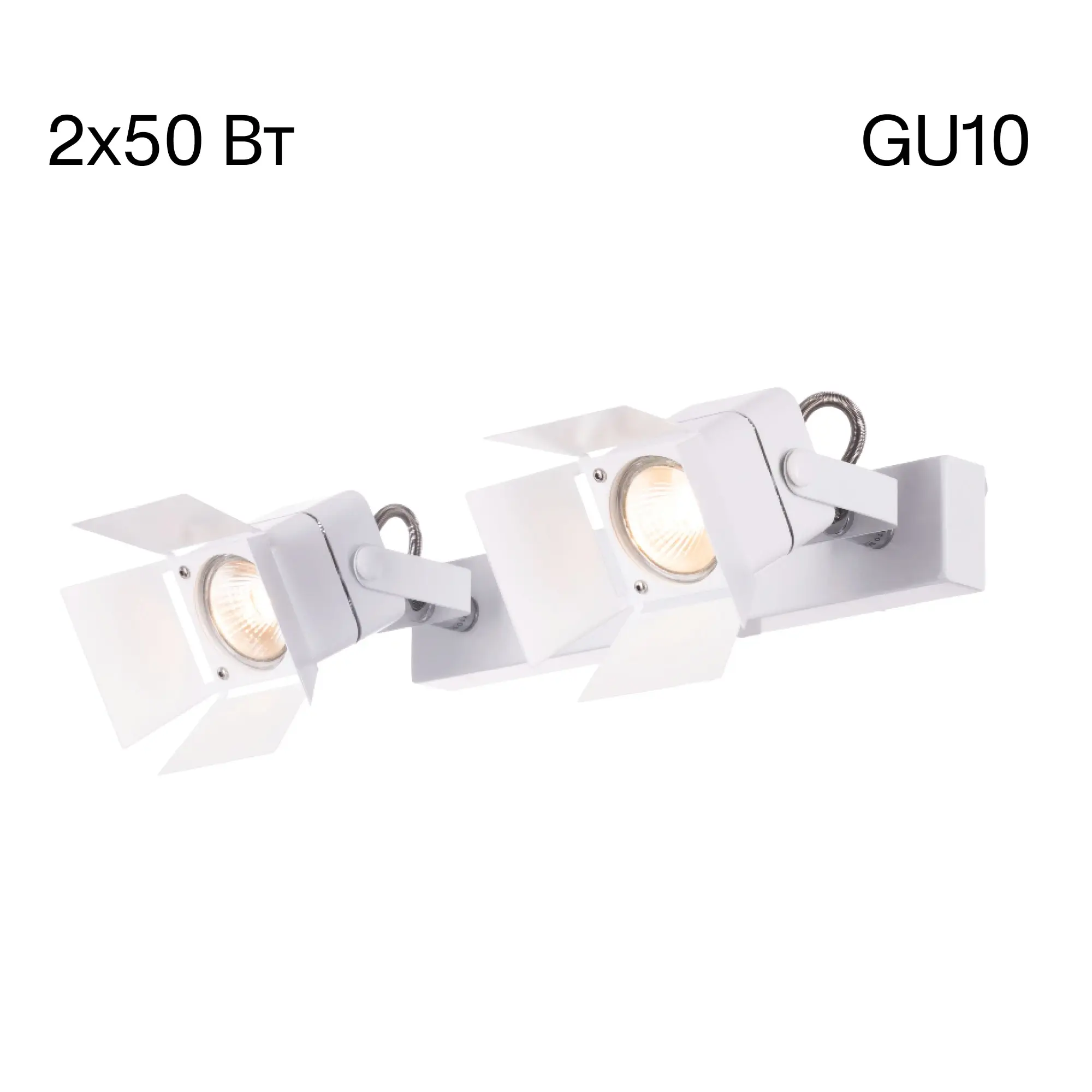 В изделии используются 2 лампы с цоколем GU10, максимальной мощностью для галогенных ламп 50Вт (в комплект не входят, приобретается отдельно).