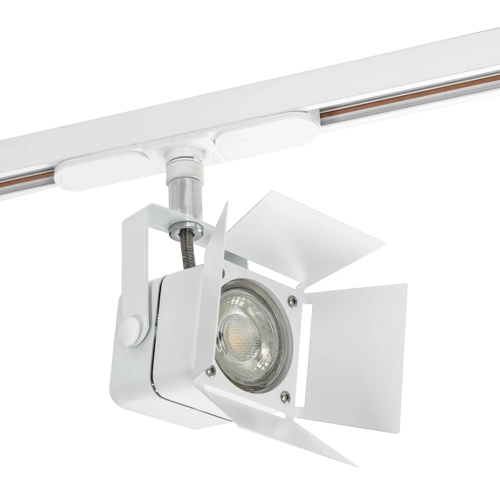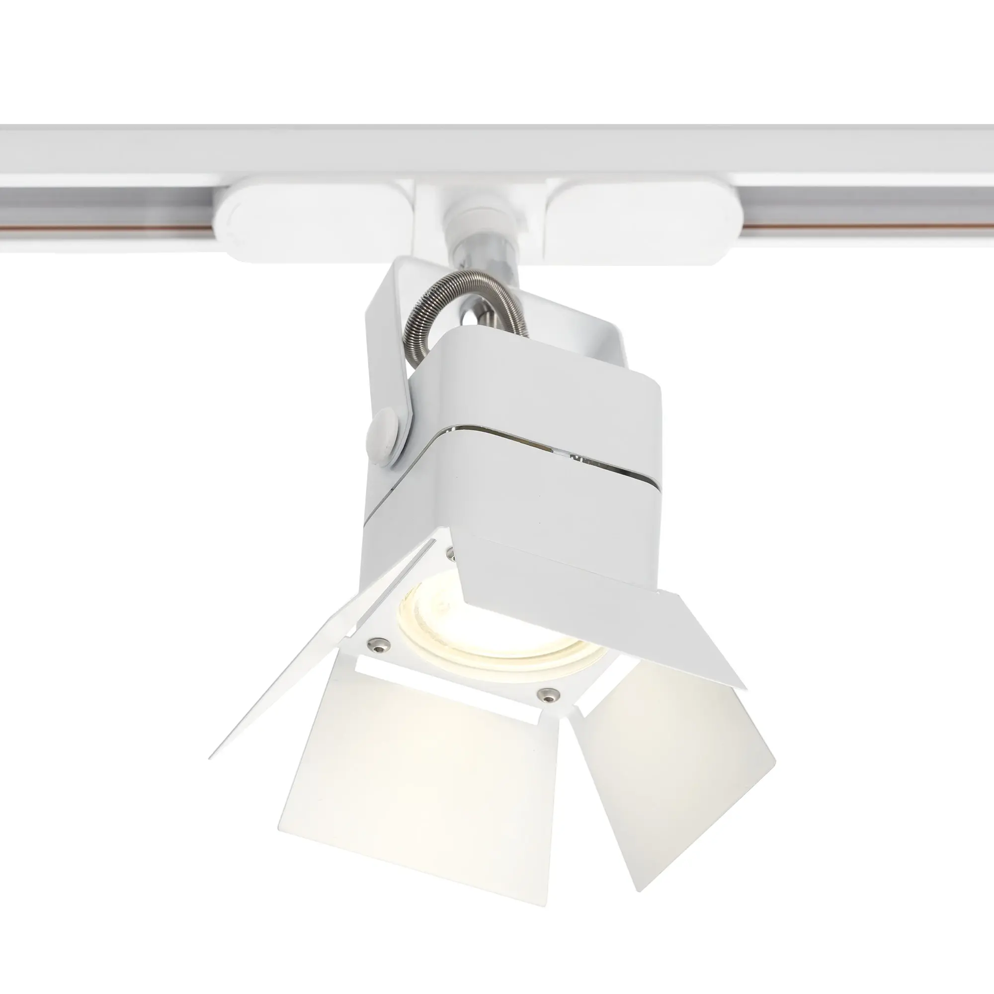 Трековый поворотный светильник Citilux Рубик CL526T10SN в современном стиле. Корпус металлический, квадратной формы, цвет белый матовый. Модель разработана для использования с шинопроводом трековой системы, стилизована под профессиональные сценические и театральные софиты со шторками.