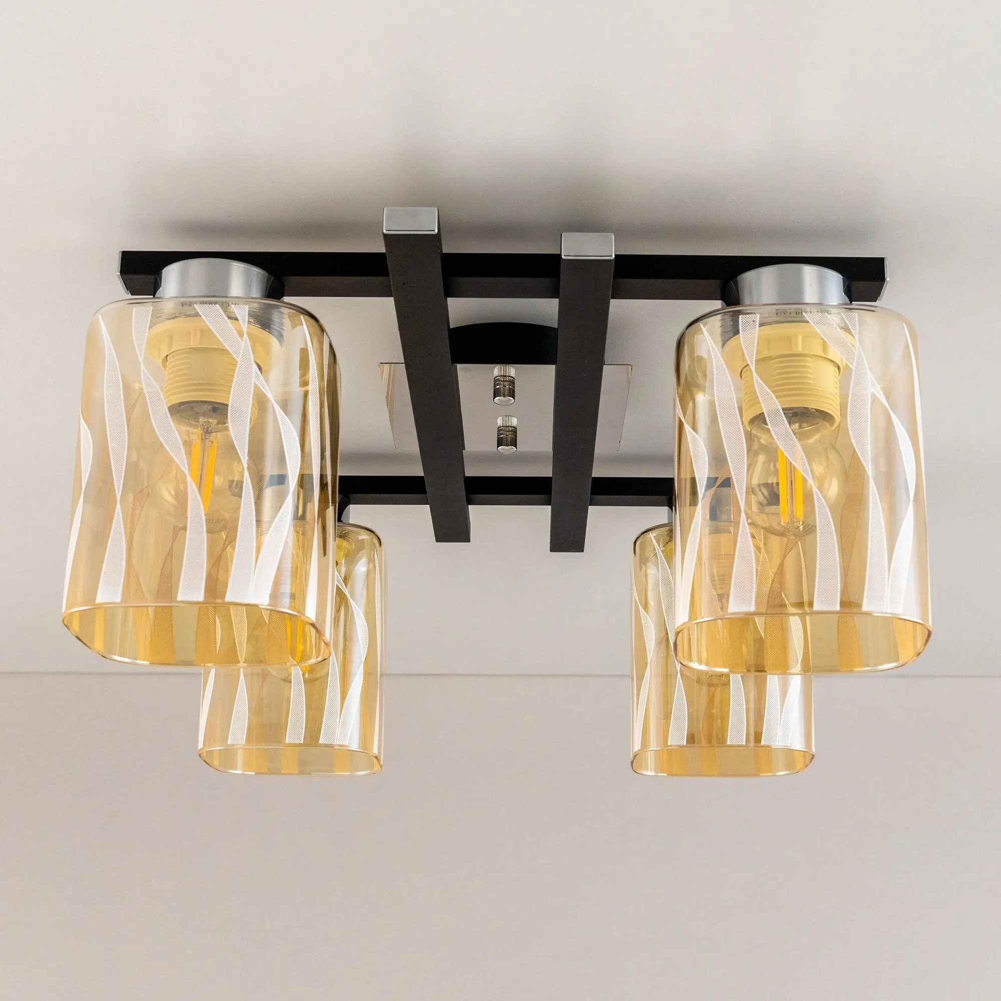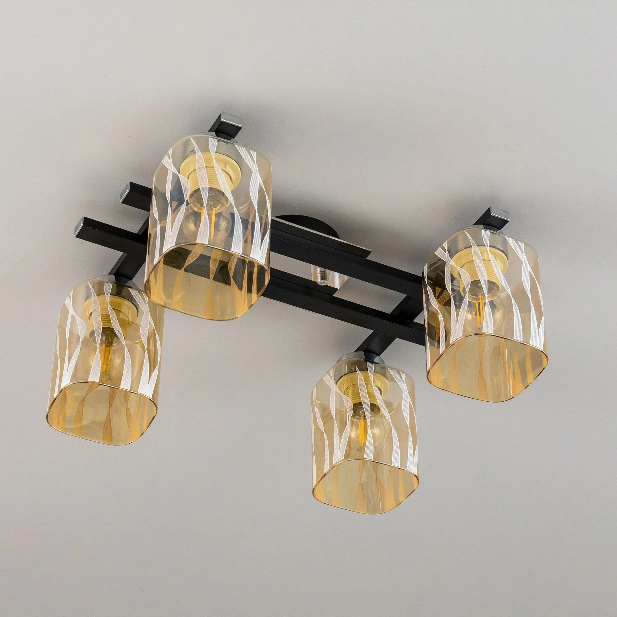Потолочная люстра Citilux Сафари CL145241 для стильных интерьеров, оформленных в современном стиле. Корпус светильника металлический, с рожками штангами. Цвет чёрный, с декоративными хромированными элементами. Плафоны стеклянные, прозрачные, оригинального дизайна. Люстру можно использовать для работы как с одноклавишным, так и с двухклавишным выключателем. В изделии 4 лампы с цоколем Е27, максимальной мощностью для ламп накаливания 75Вт. Светодиодные лампы можно устанавливать более яркие. Подходит для всех типов потолков, в том числе натяжных. Тип крепления-планка. Прекрасный вариант для яркого освещения помещений со стандартной высотой потолков и комнат с низкими потолками, площадью около 13м²