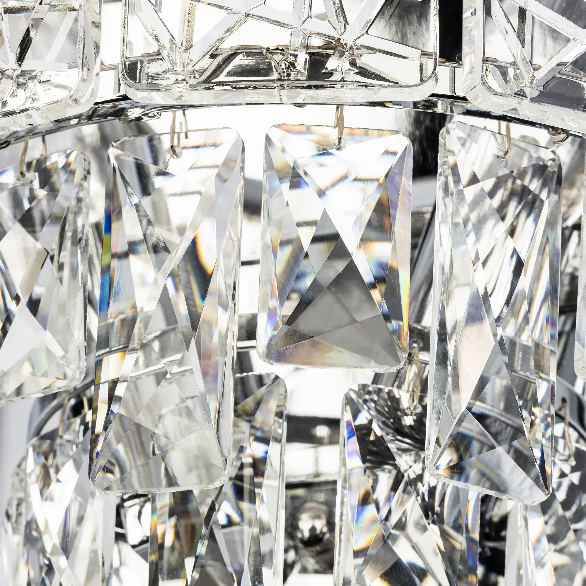 Хрустальный настенный светильник Citilux SAGRADA CL317321 выполнена в стиле современной классики. Корпус металлический с гладким хромированным покрытием. Хрустальные элементы двух разных форм – прямоугольные пластины с алмазным гранением и кристально прозрачные подвески с современной огранкой — создают неповторимую игру света и придают люстре роскошный вид.