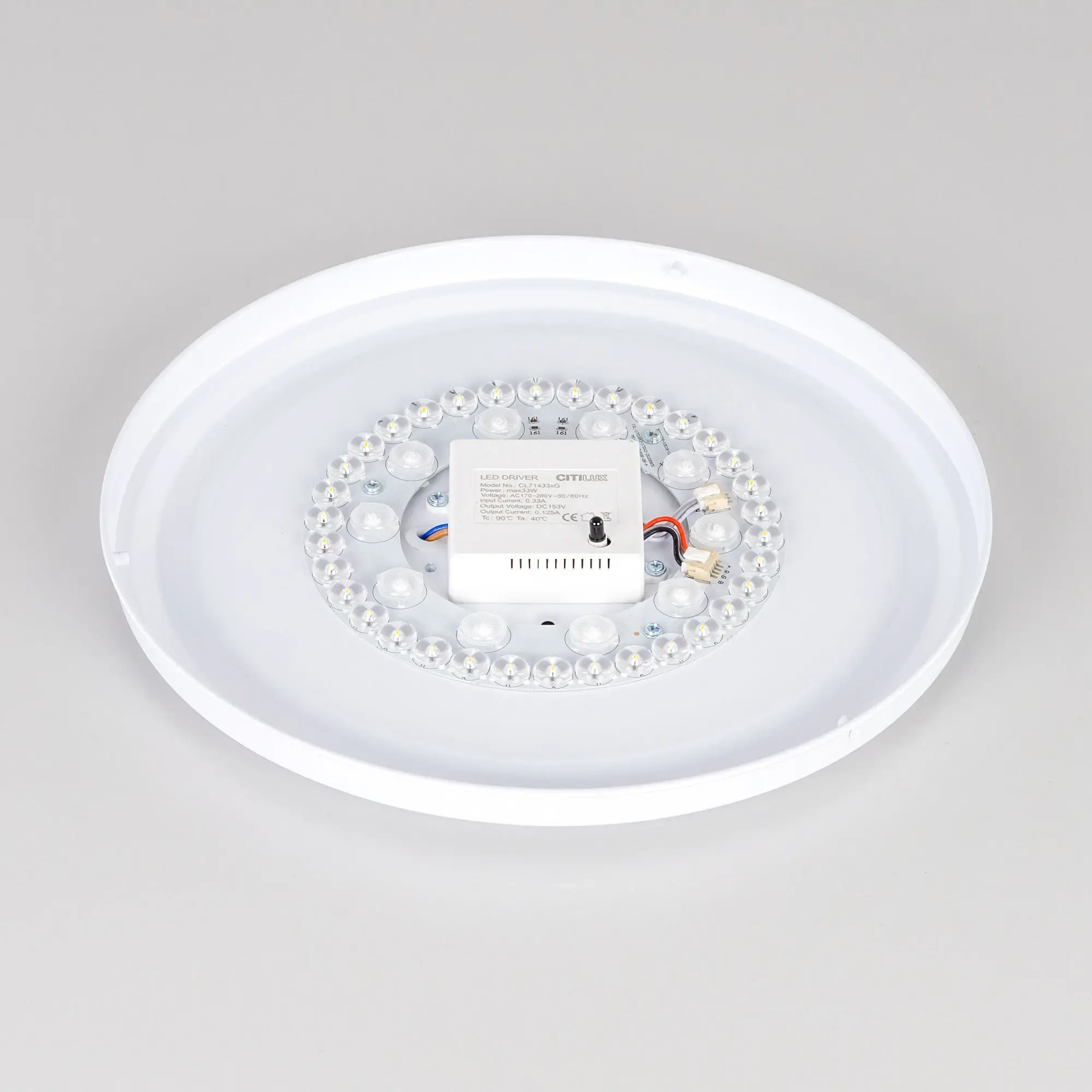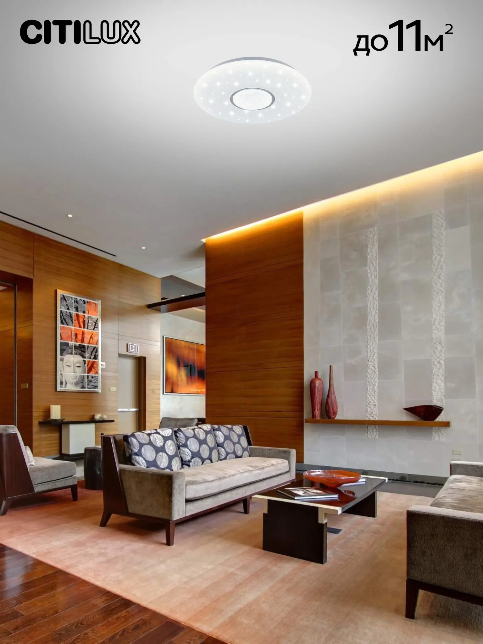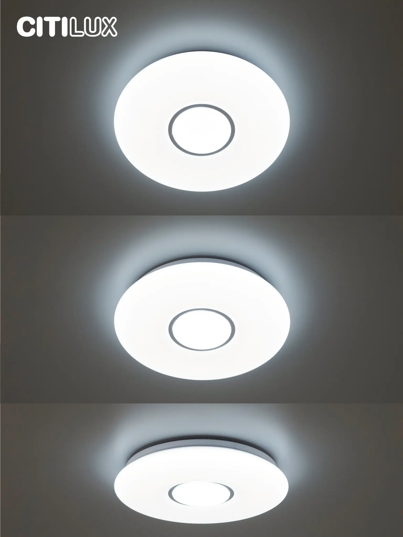 Светодиодная потолочная люстра Ситилюкс Санта CL723330G RGB является ярким представителем современных управляемых светильников. Основание модели металлическое. Плафон белый глянцевый с эффектом звездного неба и декоративным кольцом цвета хром. Светильник таблетка накладной, круглой формы, крепление подходит для всех типов потолков, в том числе натяжных. Модель управляется с помощью пульта дистанционного управления или с настенного выключателя. Пульт ДУ в комплекте, тип батареек ААА (батарейками не комплектуется). С помощью пульта доступно: плавная регулировка яркости от 10 до 100%; управление цветовой температурой в диапазоне от 3000К до 5500К, с возможностью настроить любые оттенки теплого, нейтрального и холодного света; выбор режимов "сочной" цветной RGB подсветка всего плафона. Свет без мерцаний и пульсаций. Есть четыре настраиваемых режима памяти, от М1 до М4, которыми также можно управлять с настенного выключателя. Мощность светильника 33Вт, световой поток 2700Лм, что эквивалентно 330Вт ламп накаливания. Площадь освещения около 11 кв. метров. Свет без мерцаний и пульсаций.