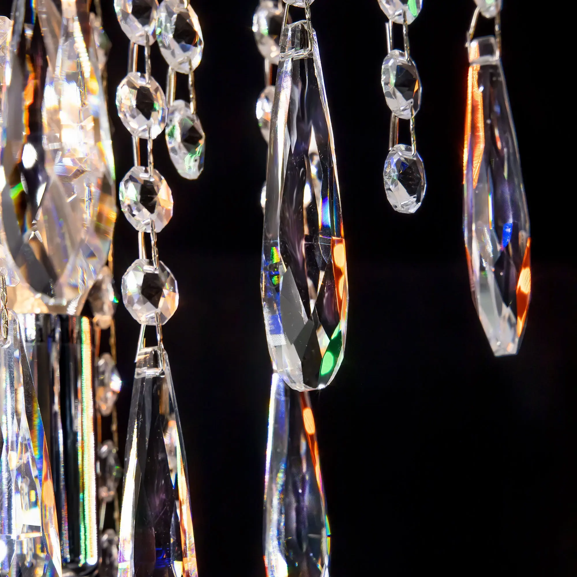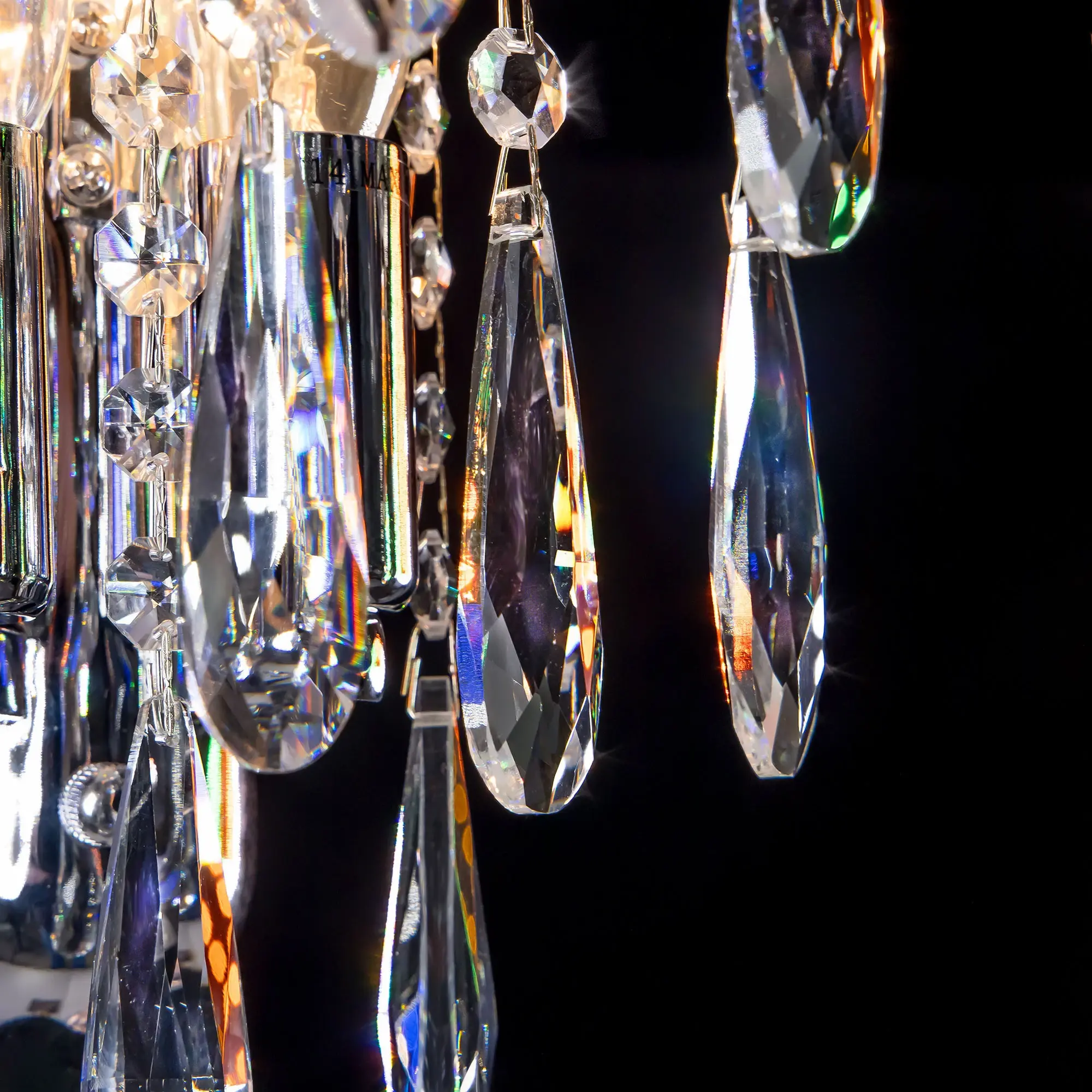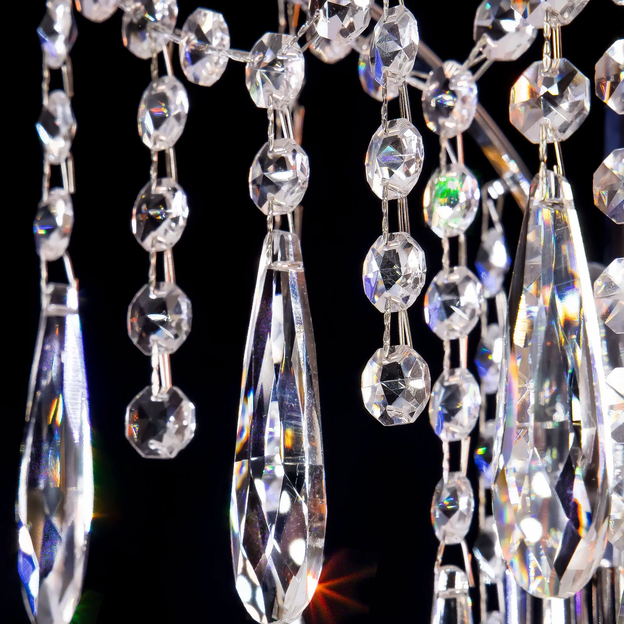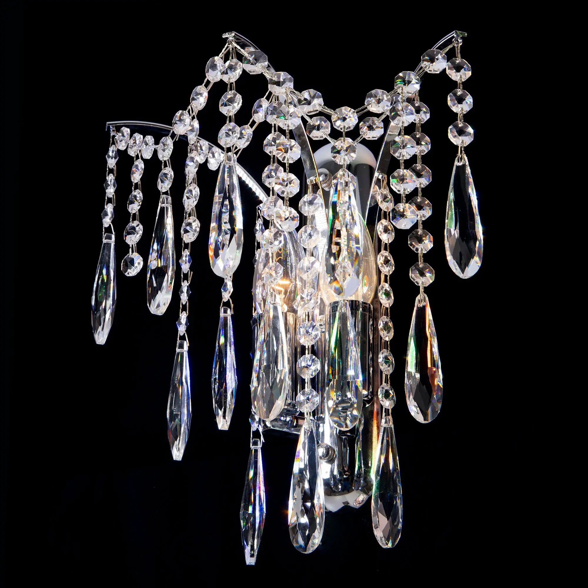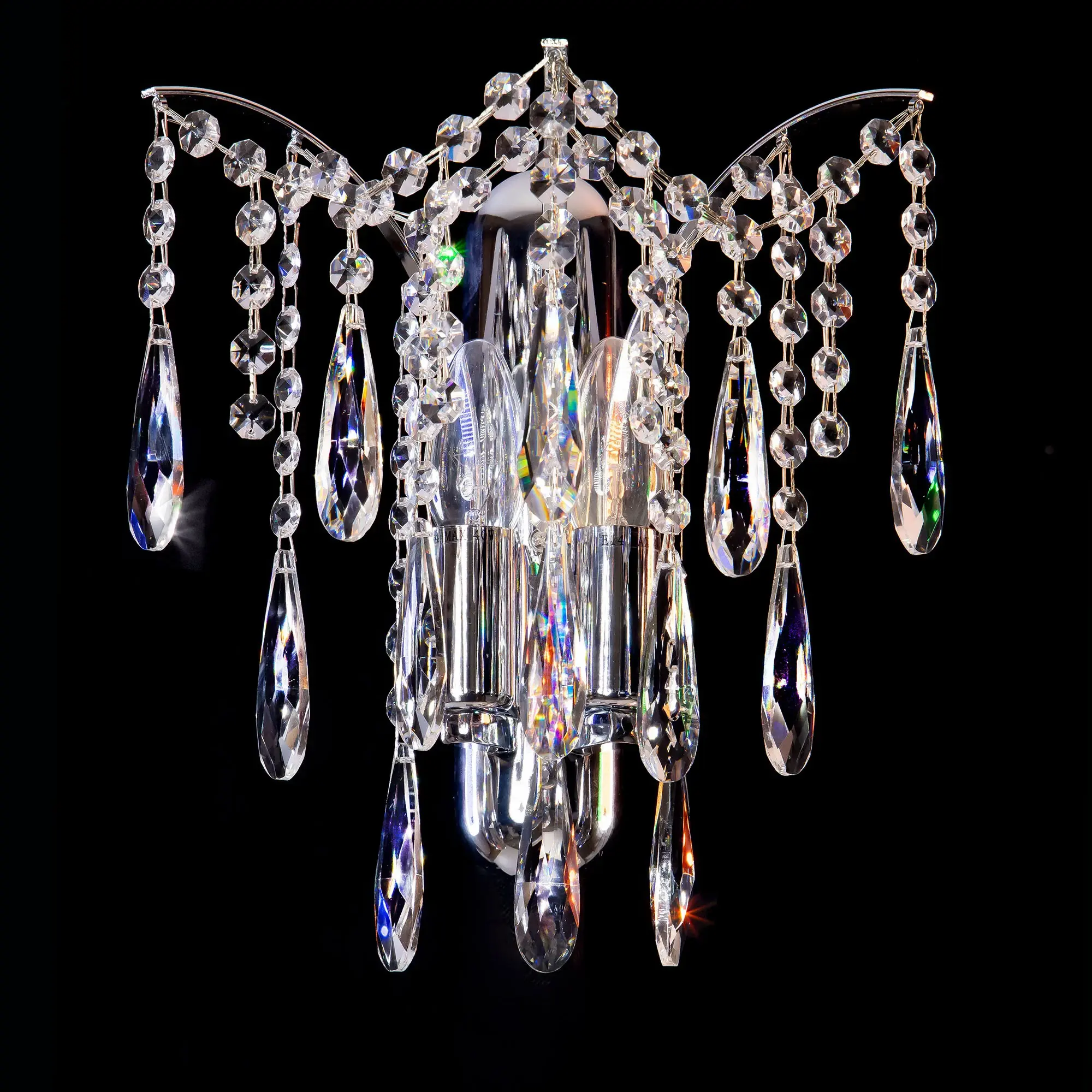 Хрустальный настенный светильник Citilux Селена CL302320 выполнен в классическом стиле. Корпус бра хромированный, металлический. Модель украшена прозрачными хрустальными подвесками с классической огранкой. В изделии используются две лампы с цоколем Е14 и максимальной мощностью для ламп накаливания 40Вт. Светодиодные лампы можно использовать более яркие. Тип крепления – планка.