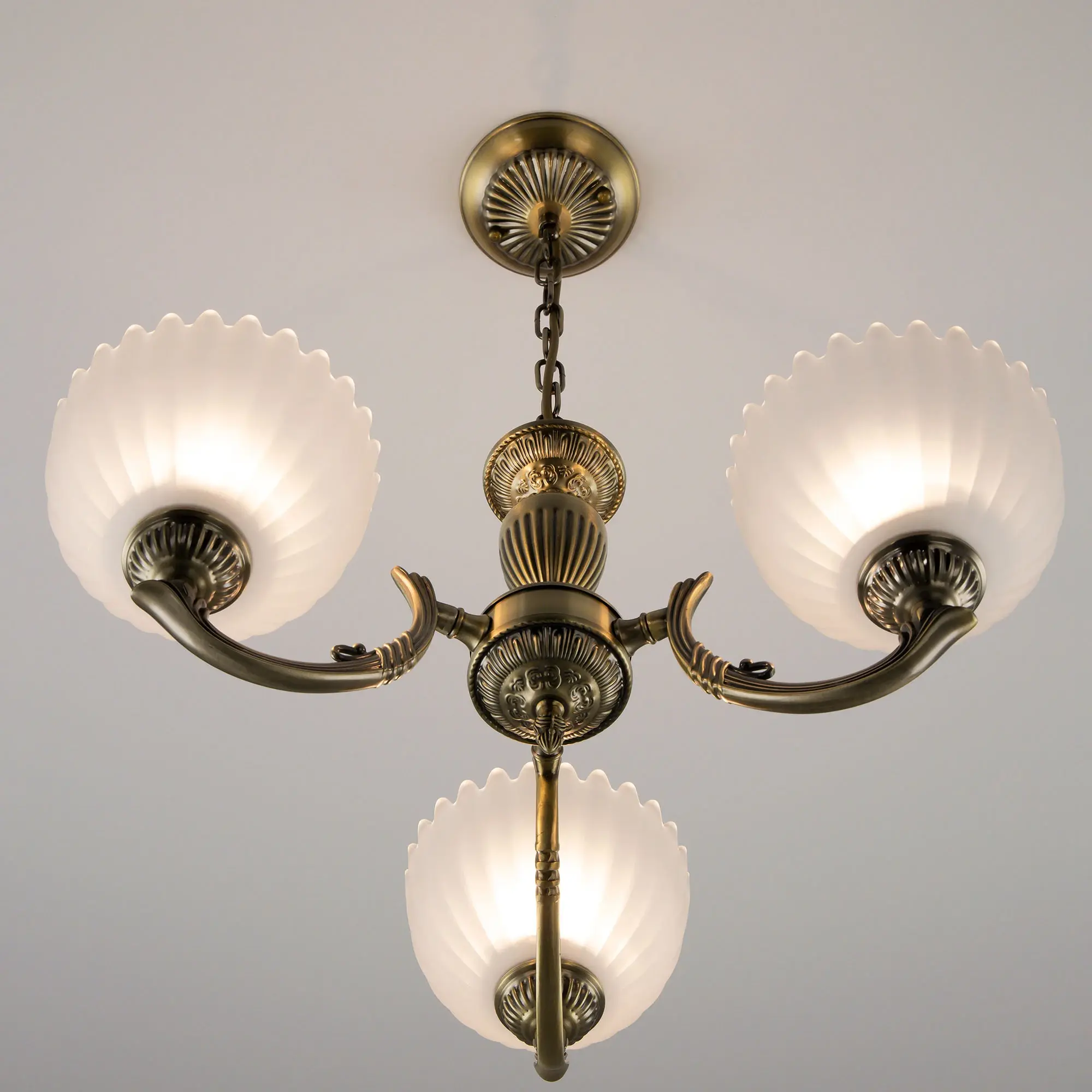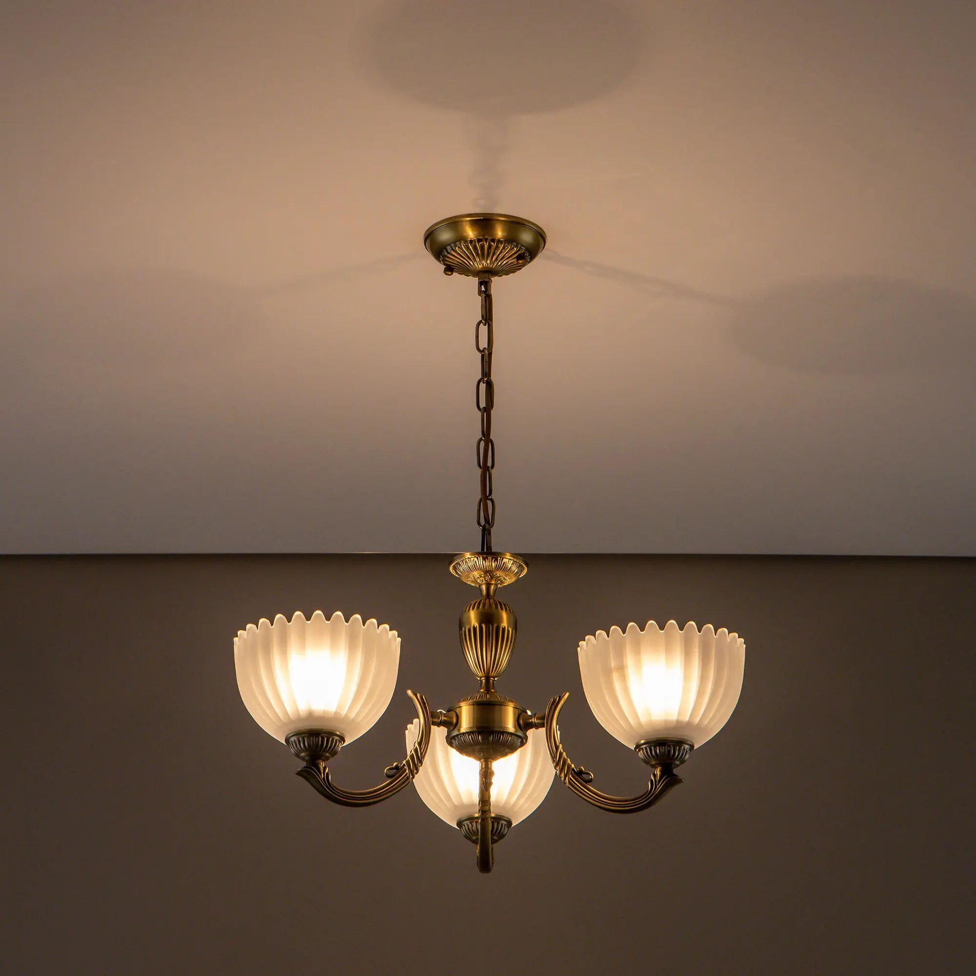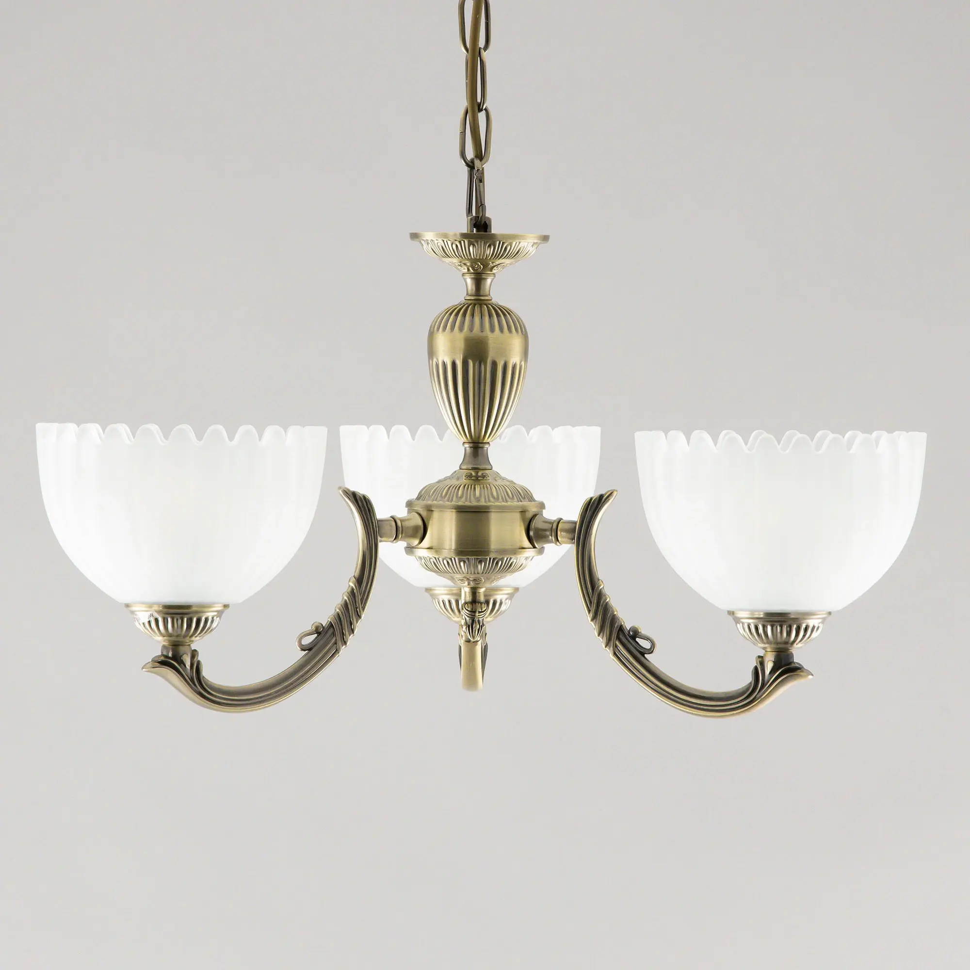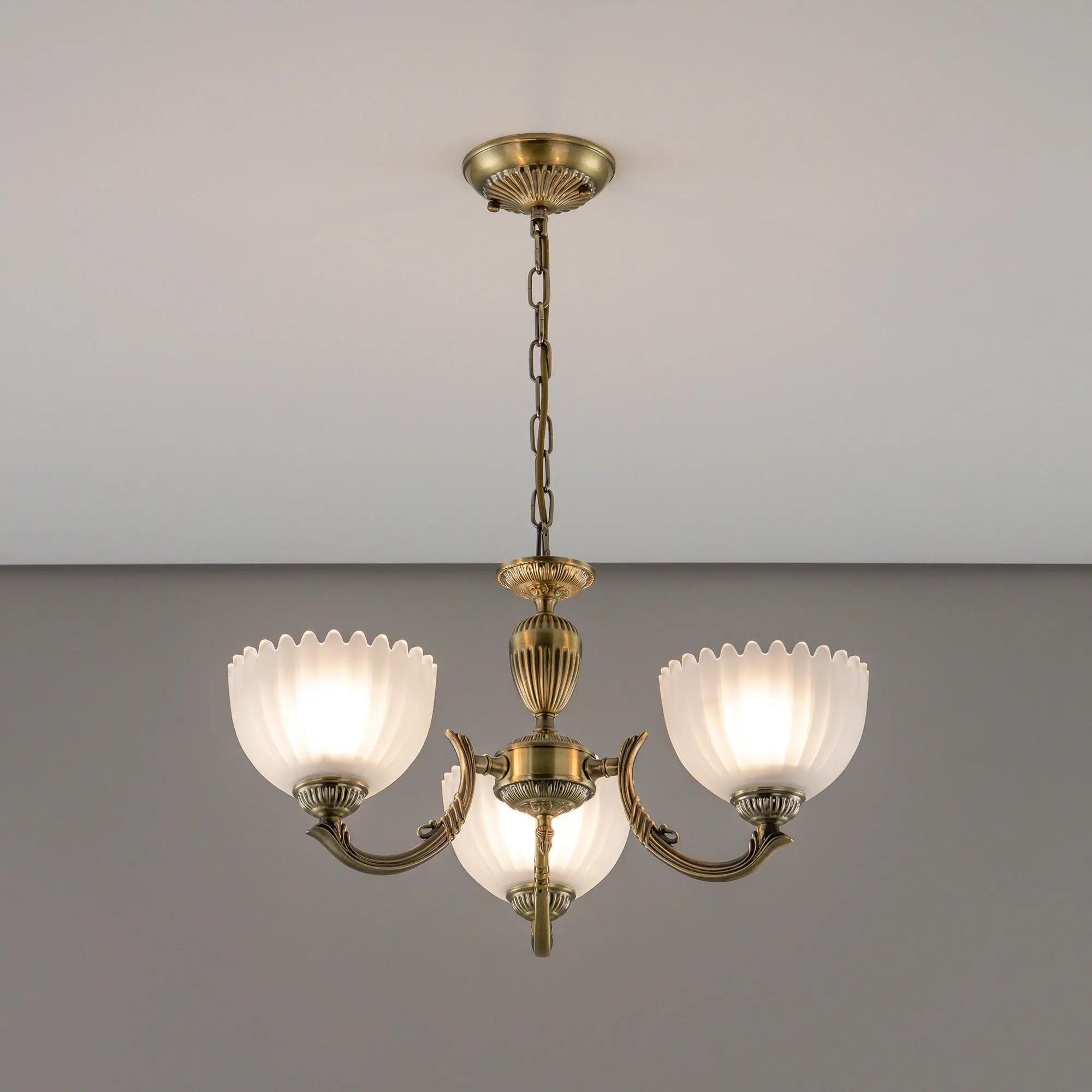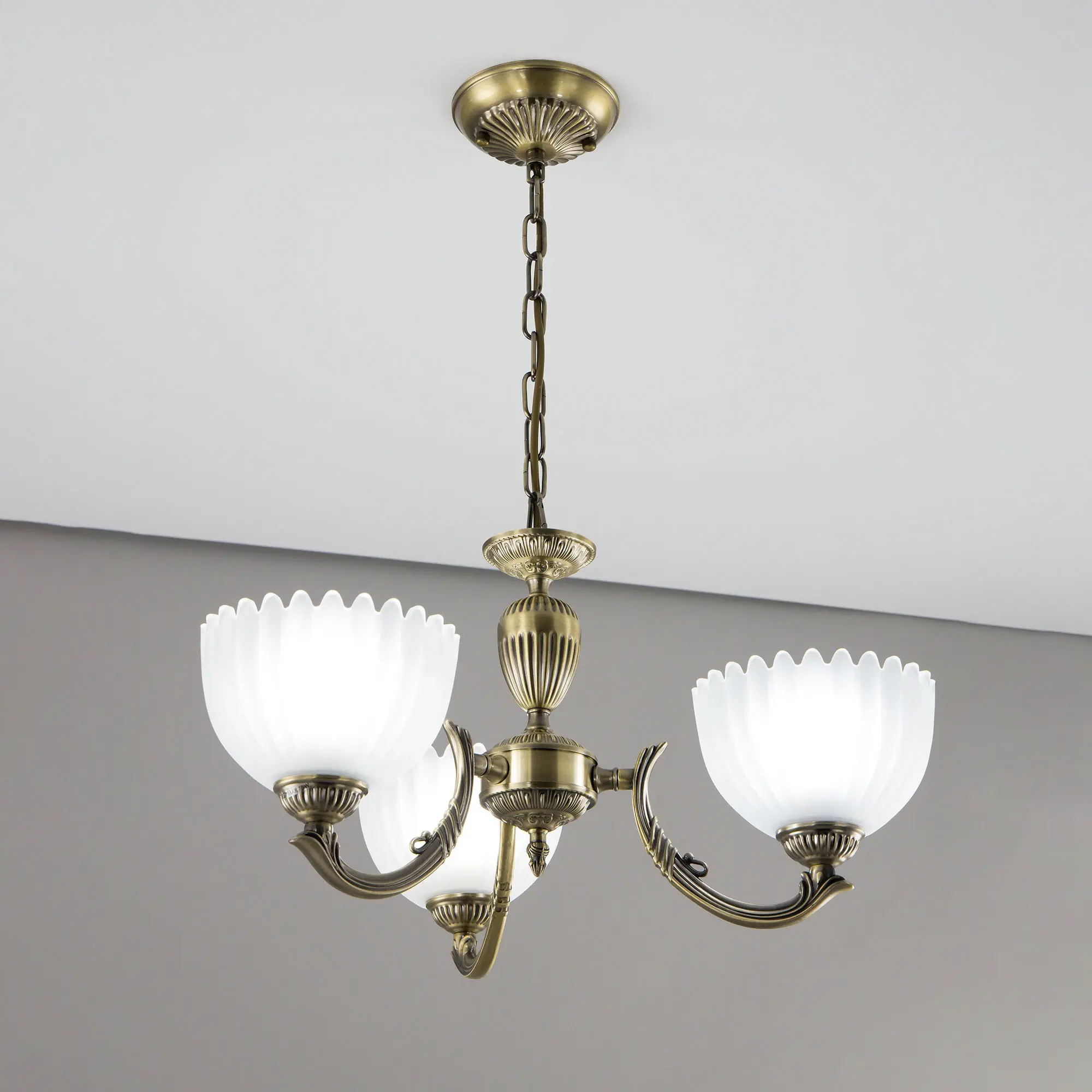 Люстра Citilux Севилья CL414133 выполнена в классическом стиле. Корпус светильника металлический, с литыми рожками, цвет бронза. Плафоны стеклянные, полуматовые, рифленые. Конструкция позволяет собрать модель как подвесную трехрожковую люстру, с плафонами направленными вверх, дающую мягкий отраженный свет или более яркий вариант с плафонами вниз. Если в помещении низкие потолки, изделие можно собрать вообще без элементов цепи, как потолочную люстру с рожками вниз. Тип крепления к потолку – планка. Более того, можно скоммутировать светильник для работы, как с одноклавишным, так и с двухклавишным выключателем. В модели используются 3 лампы с цоколем Е27 максимальной мощностью для ламп накаливания 75Вт. Светодиодные лампы можно использовать более яркие.