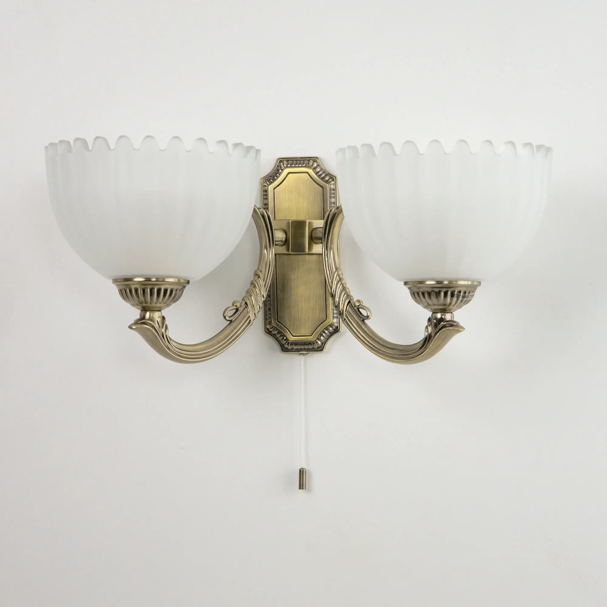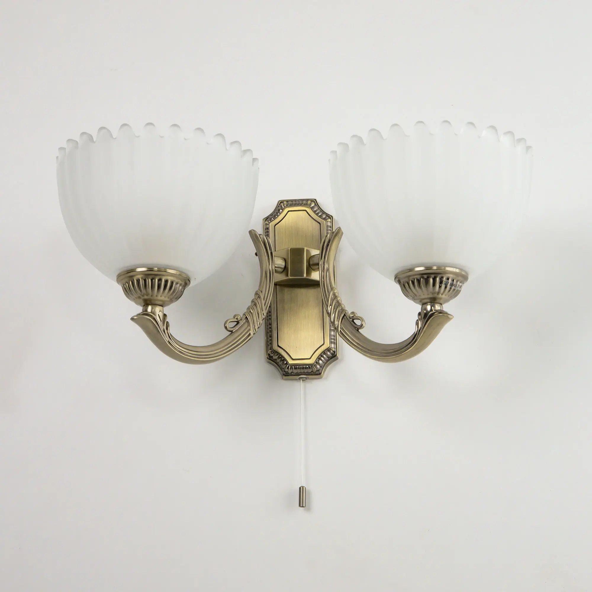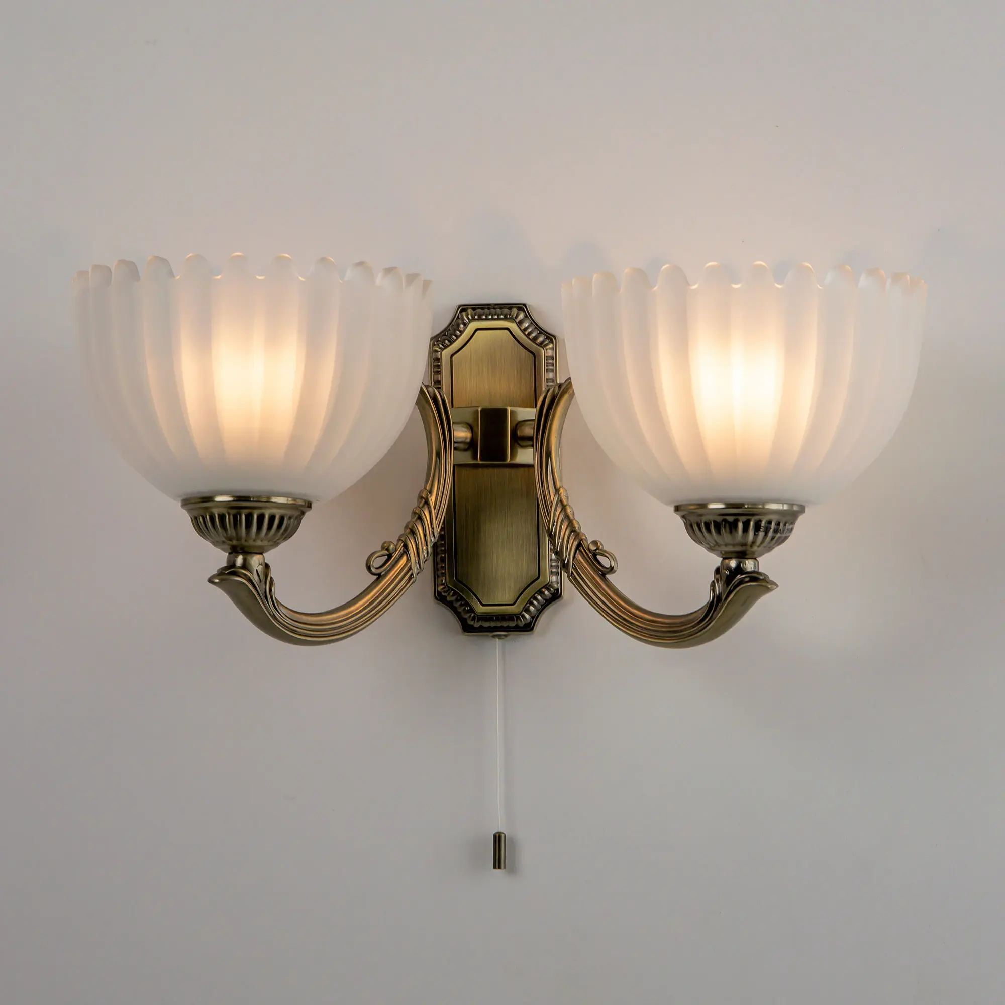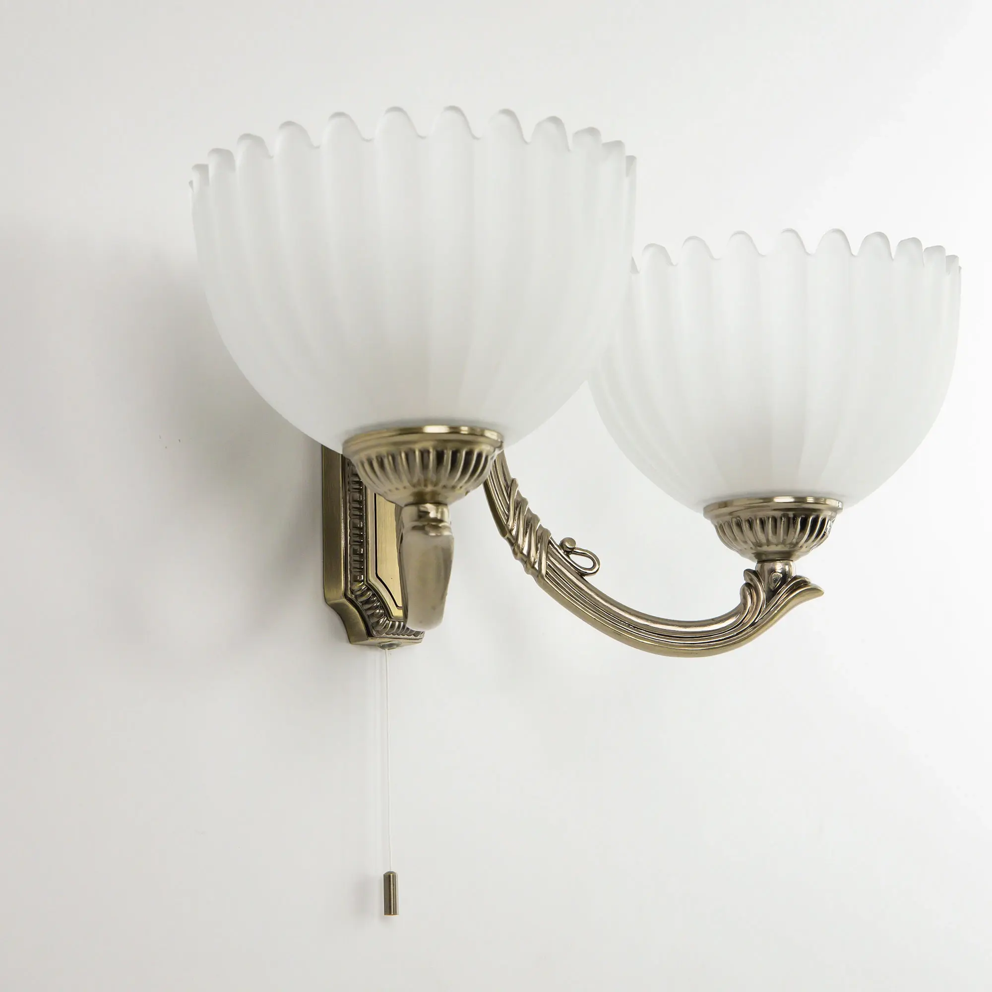 Двухрожковое бра Citilux Севилья CL414323 выполнено в классическом стиле. Корпус светильника металлический, с литыми рожками, цвет бронза. Плафоны стеклянные, полуматовые, рифленые. Конструкция позволяет собрать модель с плафонами вверх, дающую мягкий отраженный свет или более яркий вариант с плафонами вниз. В изделии используются 2 лампы с цоколем Е27 и максимальной мощностью для ламп накаливания 75Вт. Светодиодные лампы можно использовать более яркие. На корпусе находится удобный выключатель.