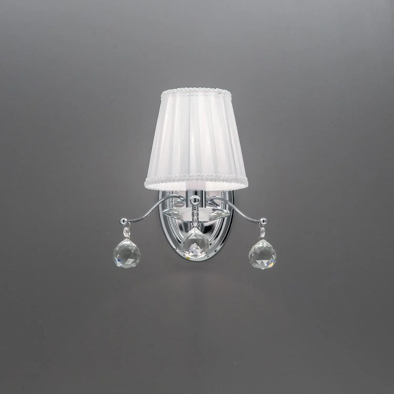 Настенный светильник CL438311 выполнен из металла в стиле современной классики и выпущен в новой коллекции «Шелли». На хромированном основание бра находится полупрозрачный тканевый абажур, благодаря которому свет, который испускает светильник, становится максимально мягким и уютным. К свечению бра прибавляется завораживающая игра красок хрустальных элементов, подвешенных на выгнутых кончиках арматуры. Патрон с классическим цоколем Е14 используемый в бра выполнен из высококачественного углепластика, дающего возможность использовать светодиодные лампы без ограничений по мощности. Помимо бра в коллекцию «Шелли» входят люстры на три, шесть и восемь рожков, которые позволяют полноценно осветить помещения от 10-ти до 24-х квадратных метров.