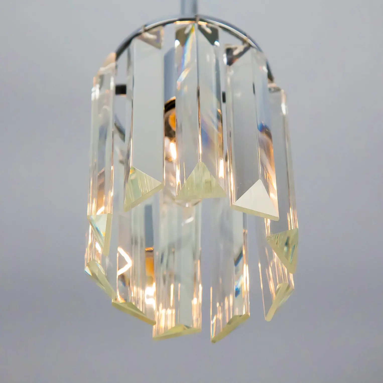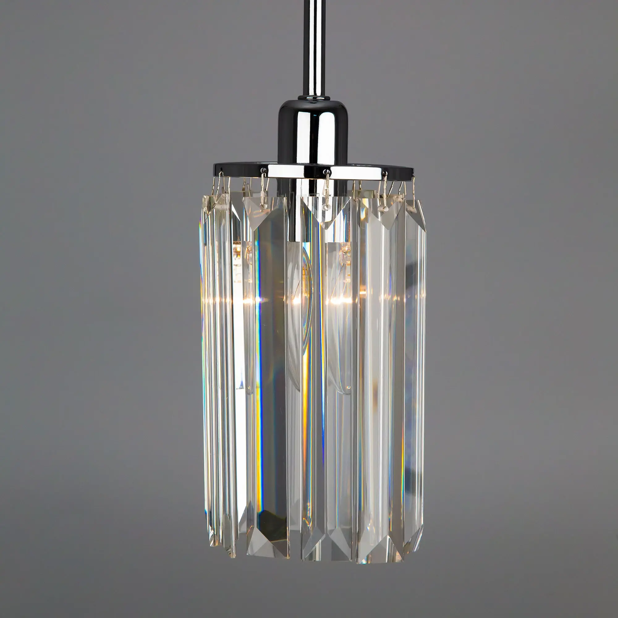 Хрустальный подвес серии Синди поставляется в трёх цветовых решениях: хром, золото и венге. Подвески, обращенные гранями наружу, образуют шикарный по внешнему виду и необычный по форме плафон. Преломляясь через хрусталь свет даёт яркое, но одновременно с этим мягкое и ровное свечение. Хрусталь переливается разными оттенками радуги, заливая ваш интерьер незабываемым эффектом, а благородный цвет основания подчеркнёт детали вашего дизайна. За счёт продуманной палитры цветов, подвесы легко привязать практически к любому стилю. Хрустальный светильник очень качественный, металлические части покрыты гальванической обработкой, что позволяет регулярно производить влажную уборку без потери качества покрытия. В конструкции используется патрон Е14, производимый из термостойких материалов, выдерживающий лампы накаливания до 60 ватт включительно. Рекомендуем использовать прозрачные лампы накаливания, или если предполагается использование светодиодных ламп – филаментные. С лампочками такого типа хрусталь лучше всего переливается и блестит. Диаметр светильника 15 сантиметров, а высота регулируется от 30 до 150 сантиметров.