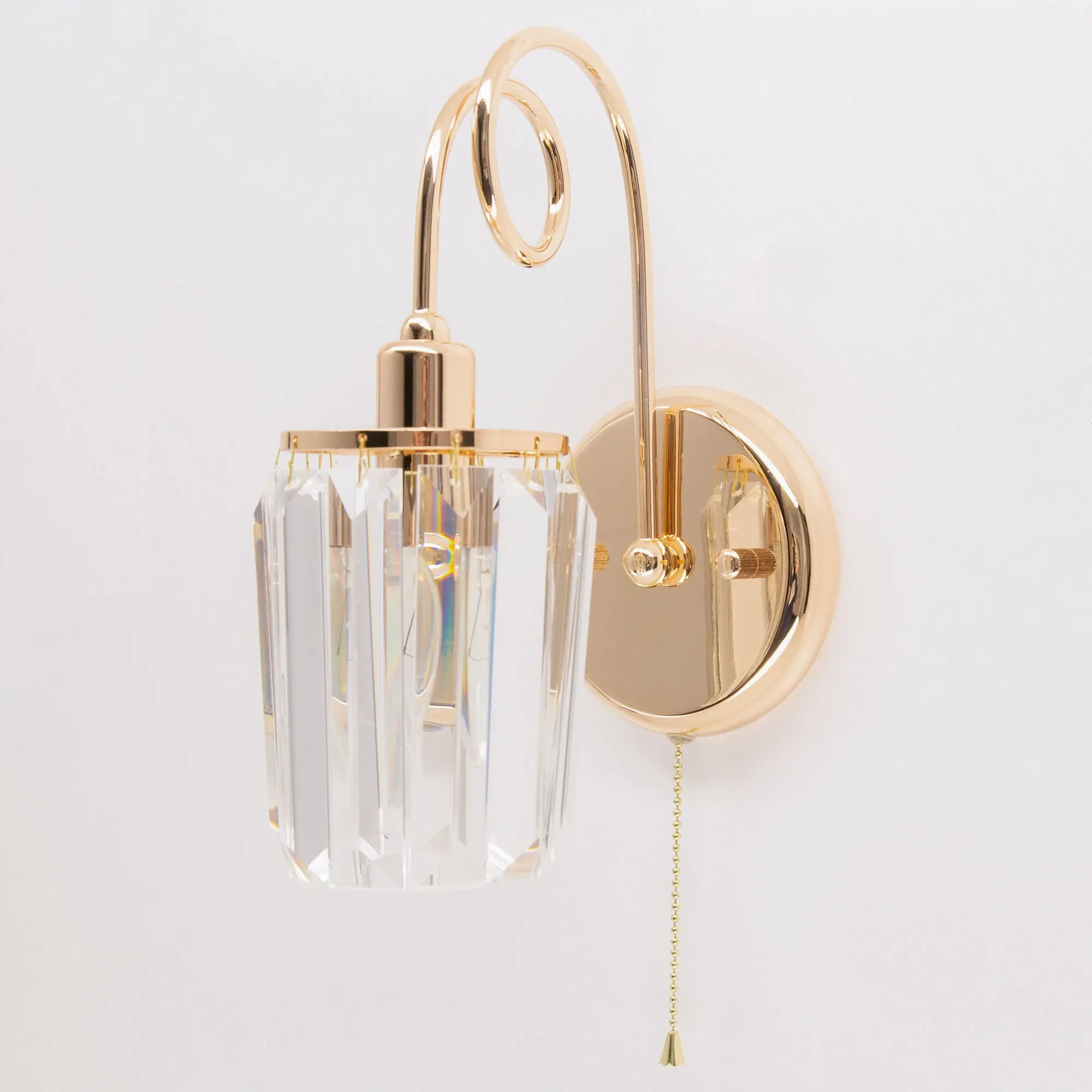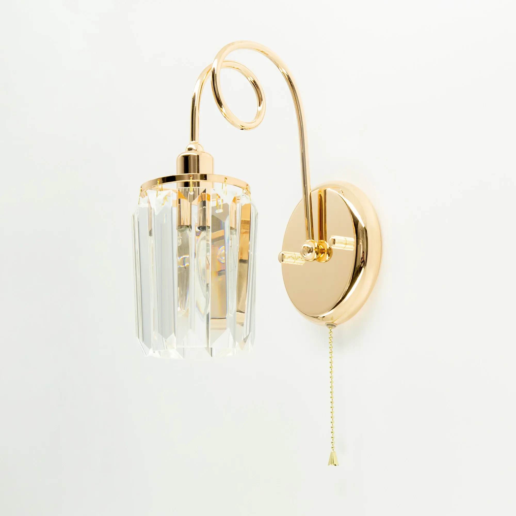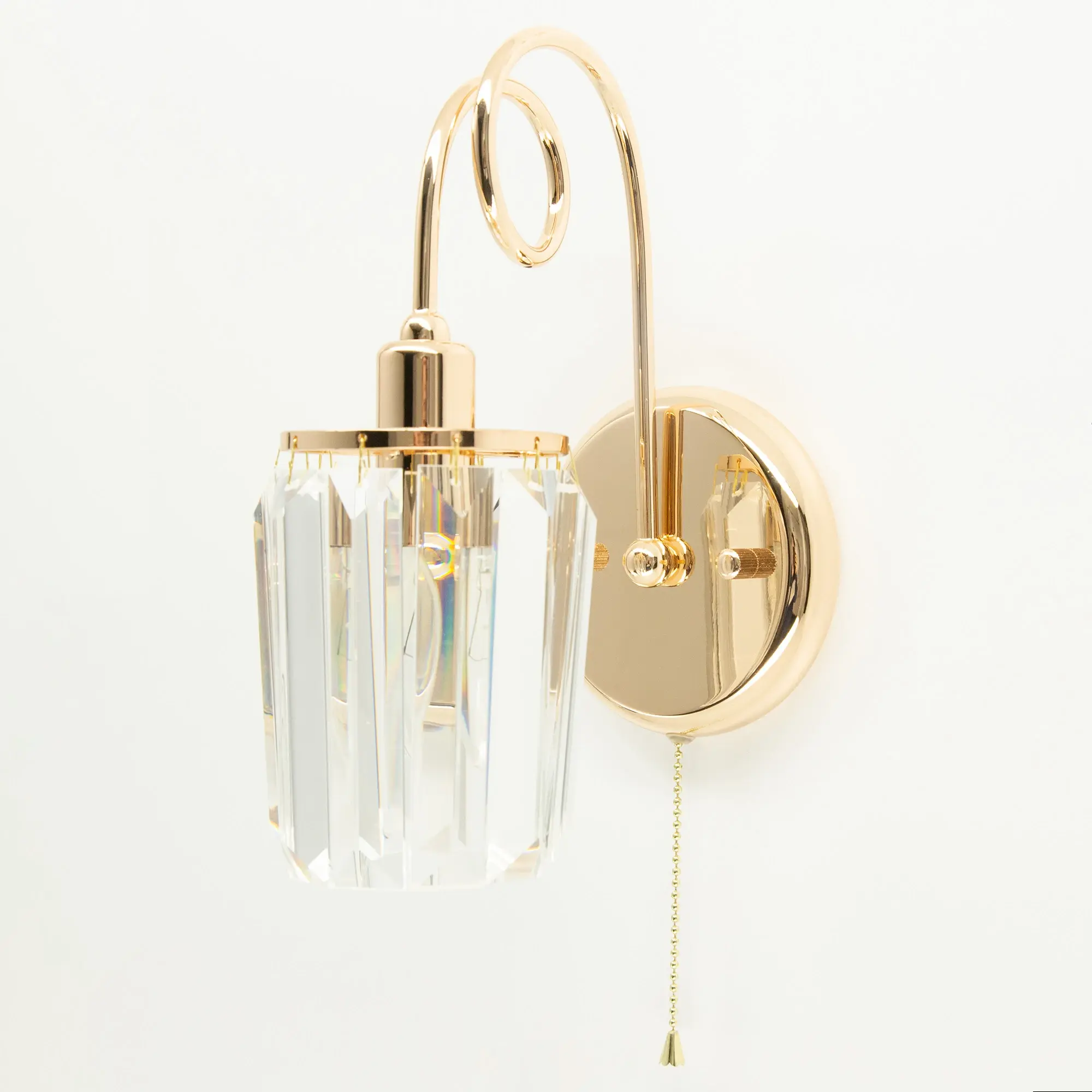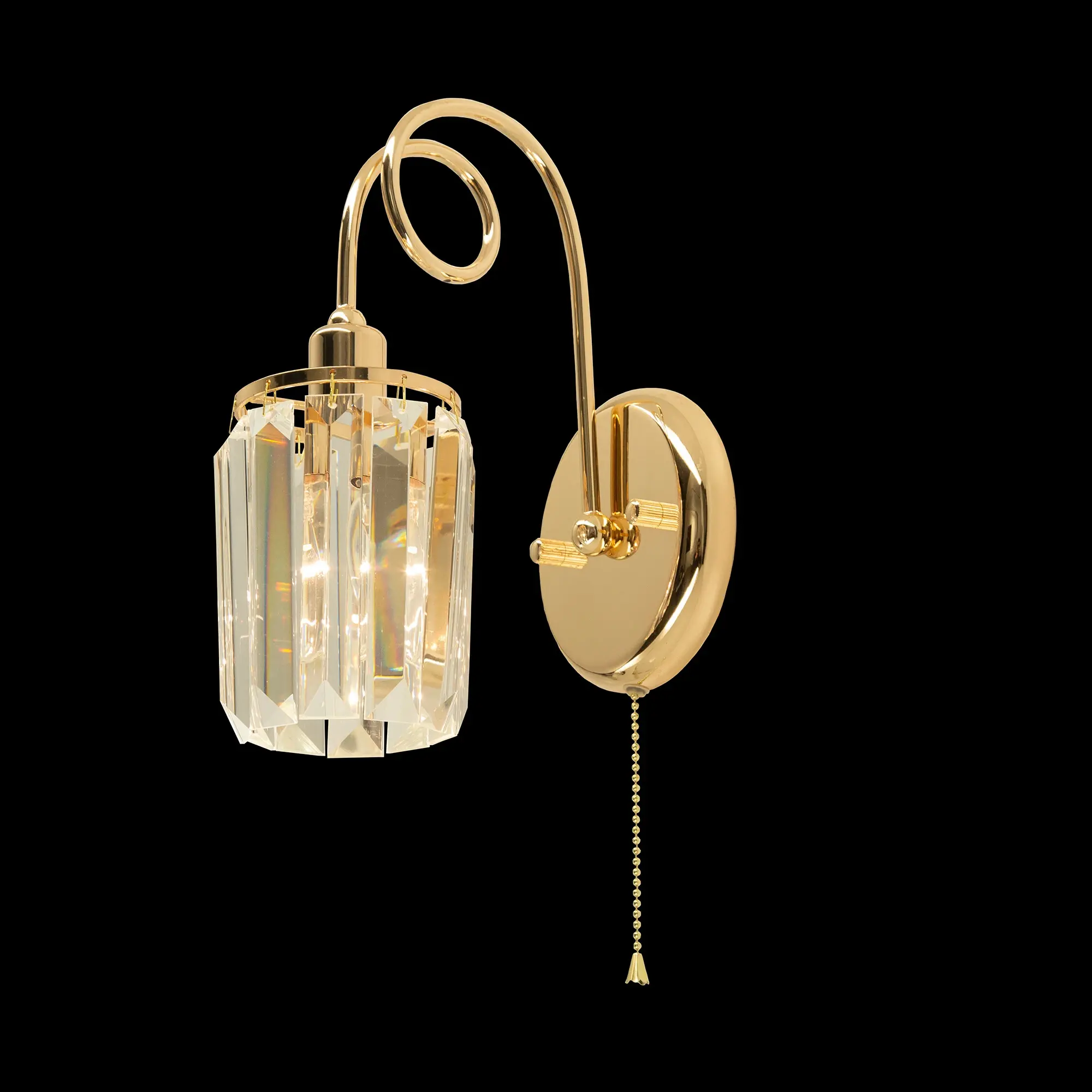 Стильное однорожковое бра Citilux Sindi CL330312 с хрустальными подвесками. Металлический каркас с золотистым покрытием. Хрустальные подвески с огранкой в форме призмы образуют элегантный плафон в форме цилиндра.
