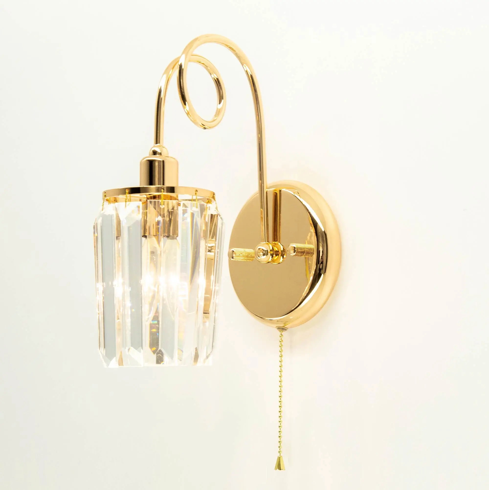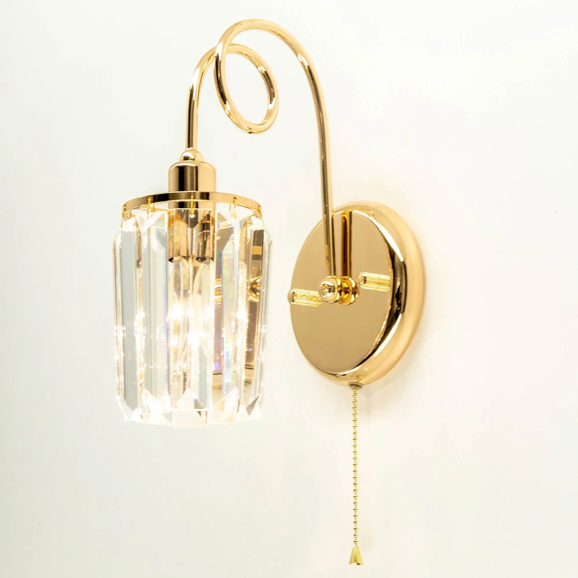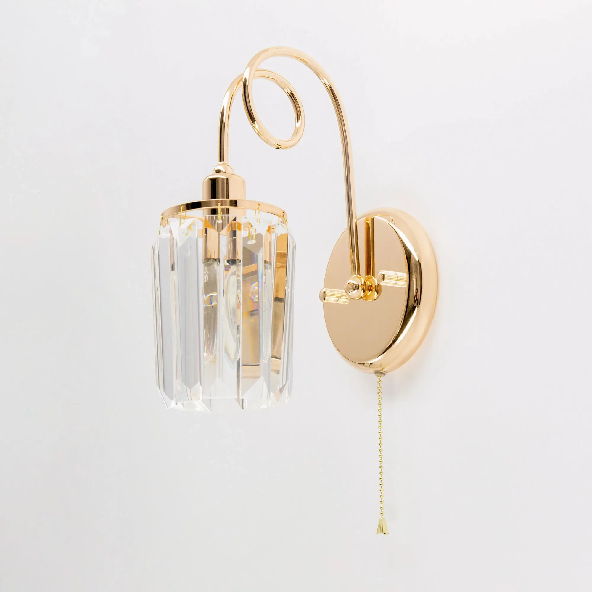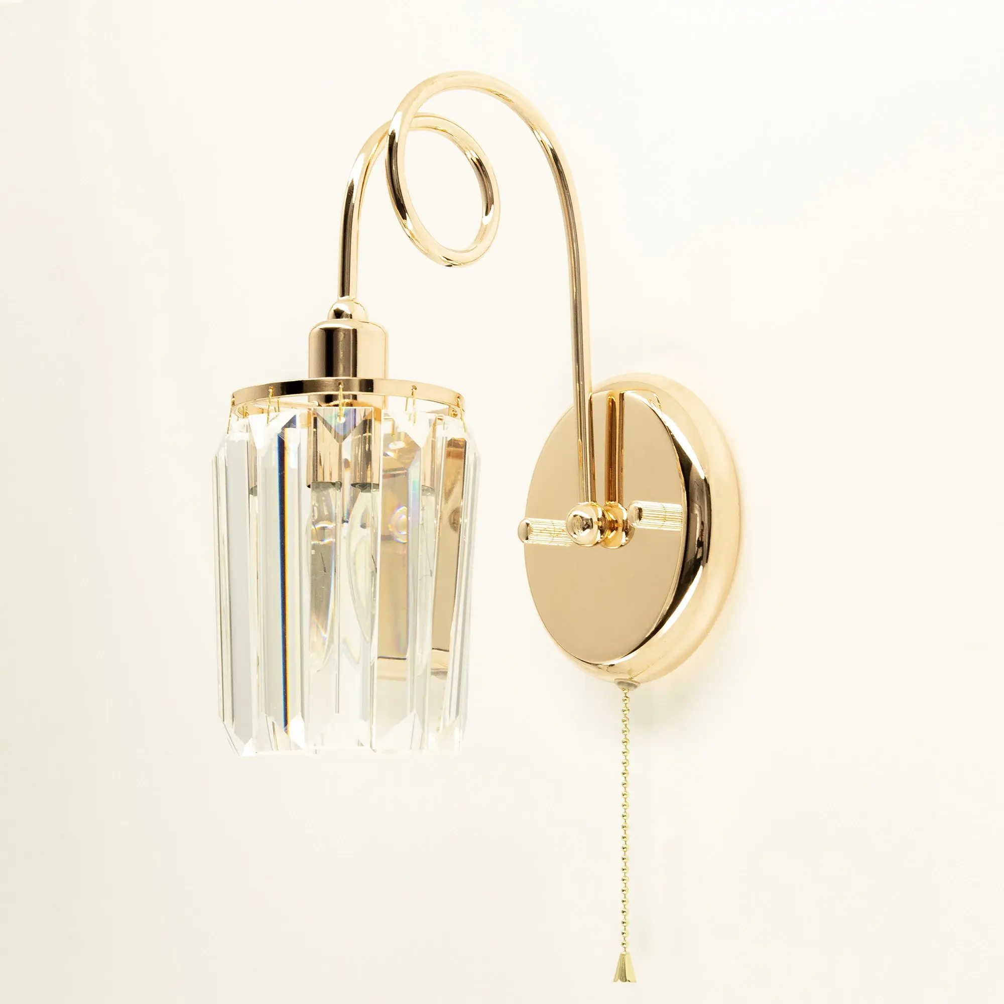 Стильное однорожковое бра Citilux Sindi CL330312 с хрустальными подвесками. Металлический каркас с золотистым покрытием. Хрустальные подвески с огранкой в форме призмы образуют элегантный плафон в форме цилиндра.