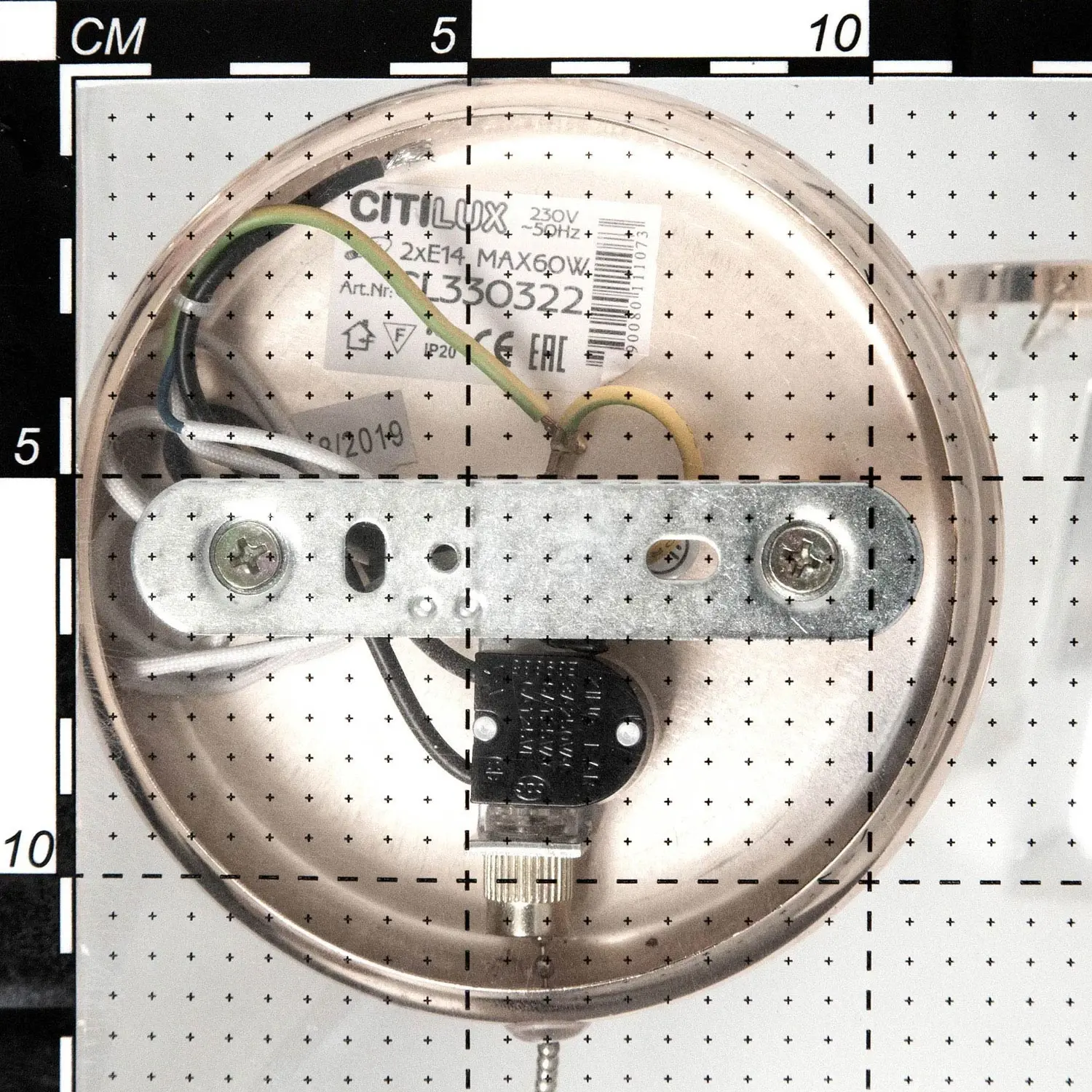 Для модели подойдут лампы с цоколем E14 (не входят в комплект). Тип крепления к стене — планка, выключатель располагается на корпусе.