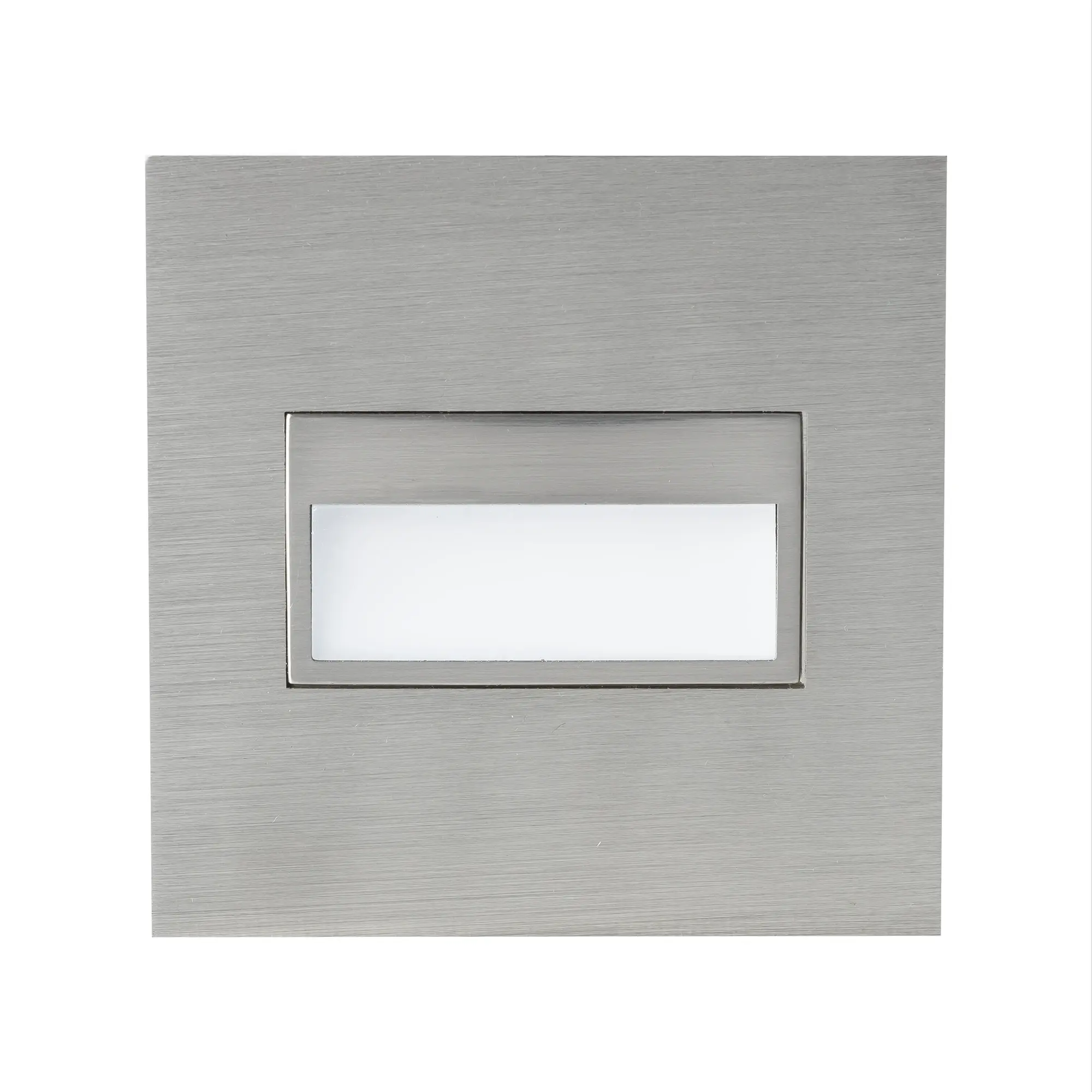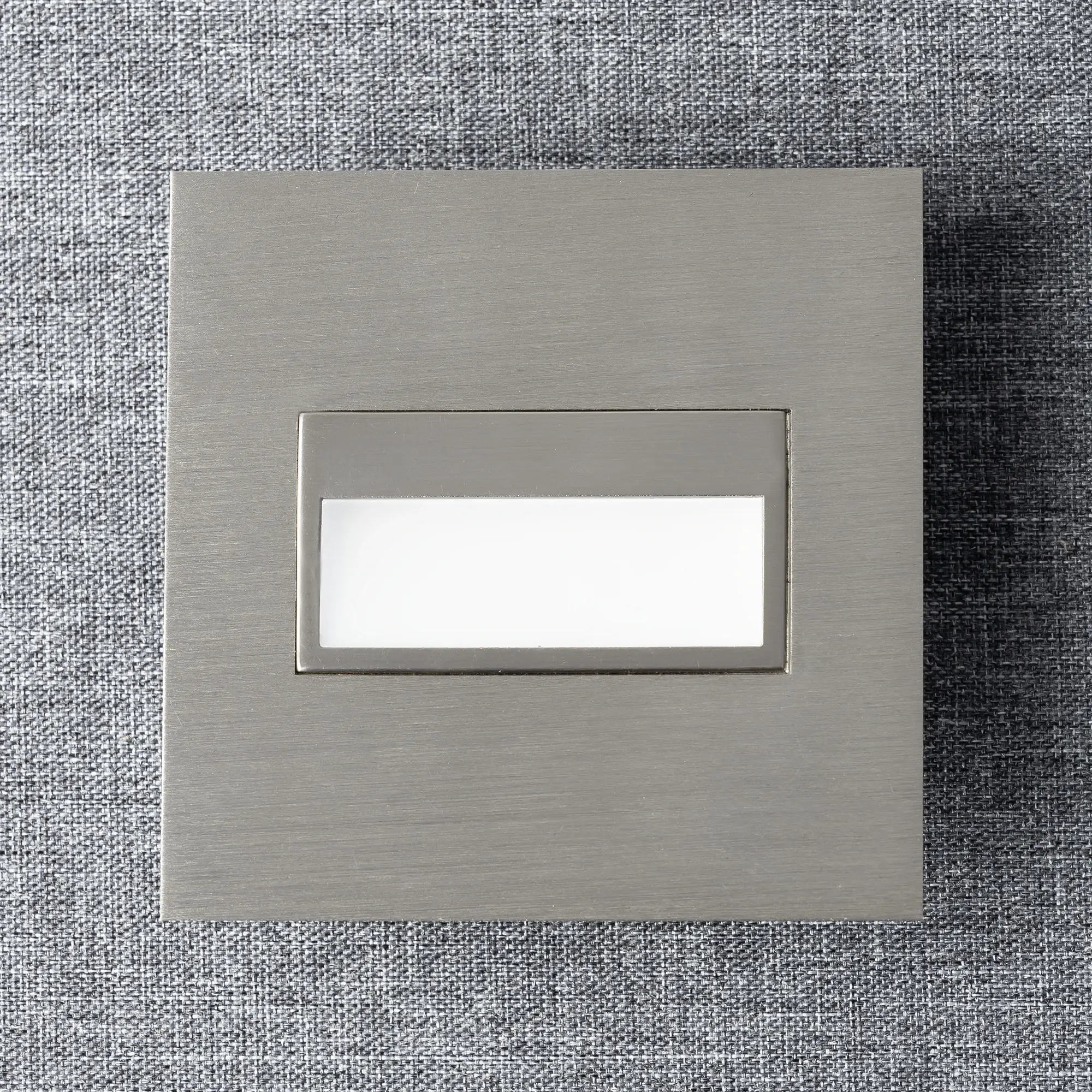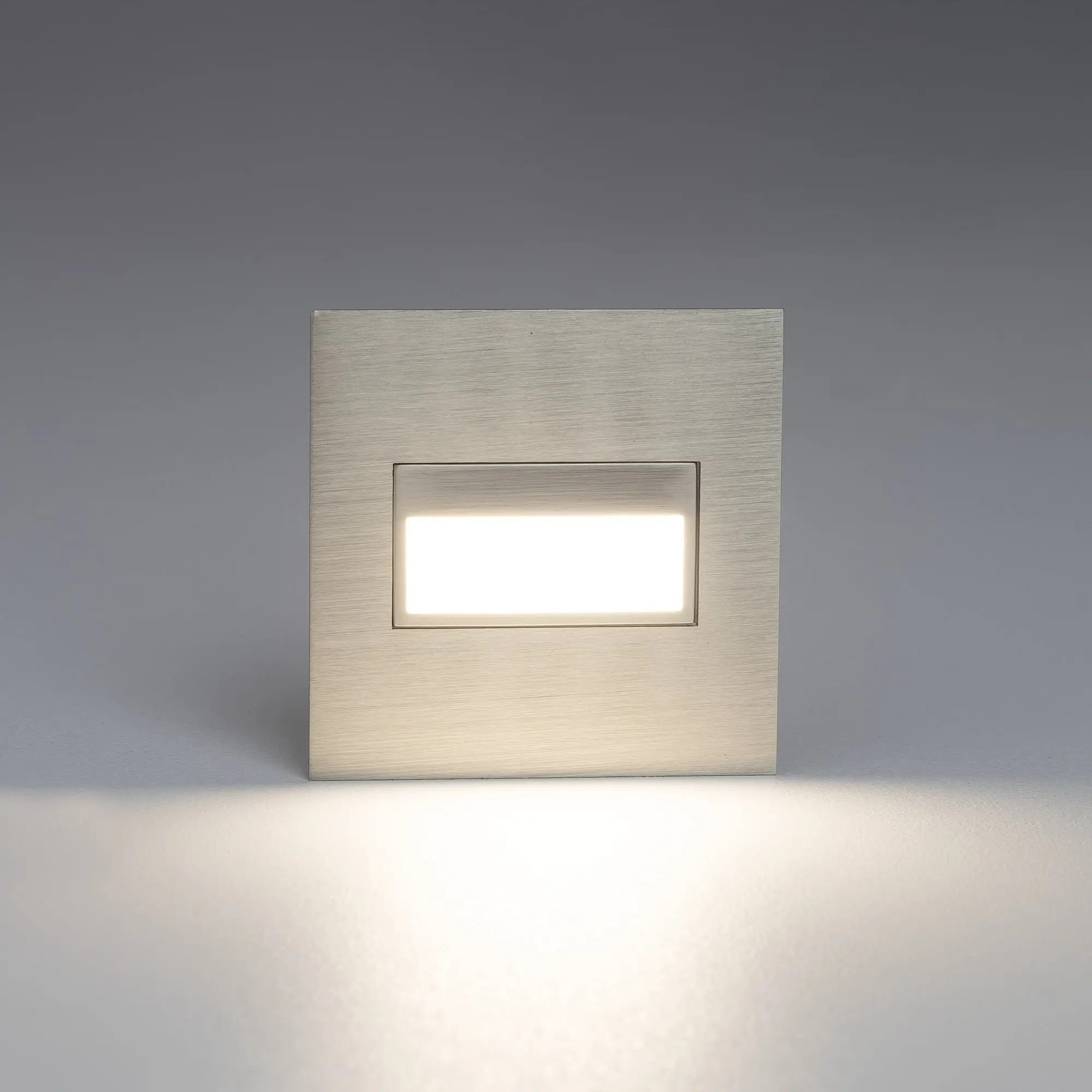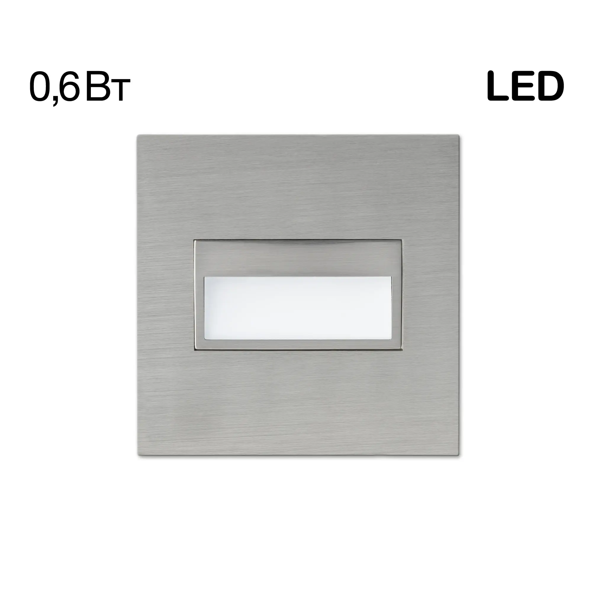 Светильник квадратной формы, цвет матовый хром. Корпус металлический, что гарантирует его прочность и долговечность. Рассеиватель из оптического полимера позволяет свету равномерно распространяться по всей поверхности ступени.