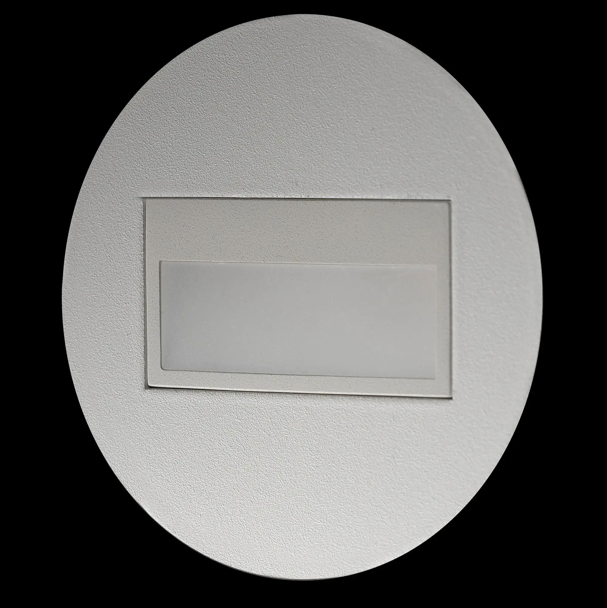 Светильник белого цвета, круглой формы. Корпус металлический, что гарантирует его прочность и долговечность. Рассеиватель из оптического полимера позволяет свету равномерно распространяться по всей поверхности ступени.