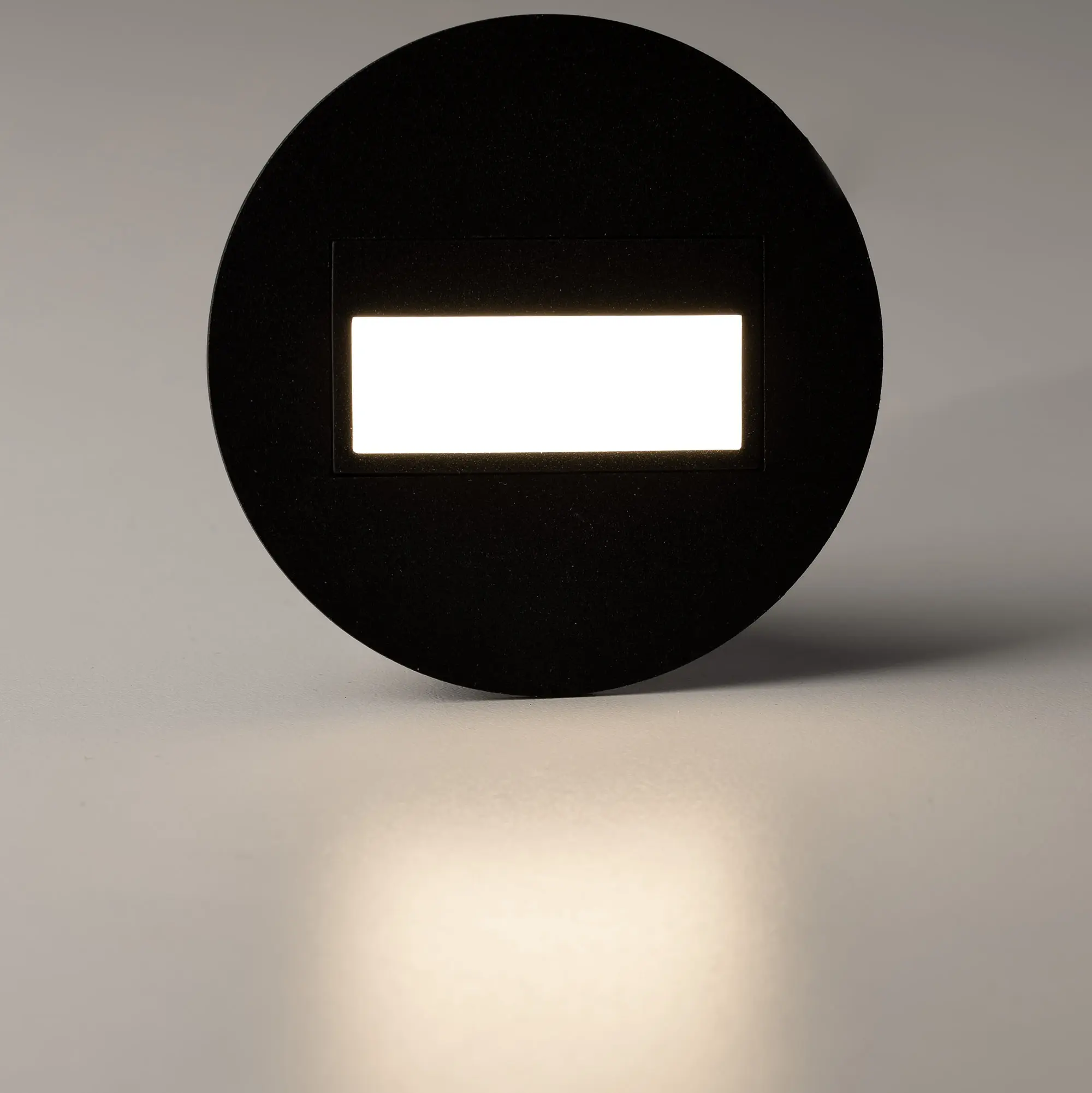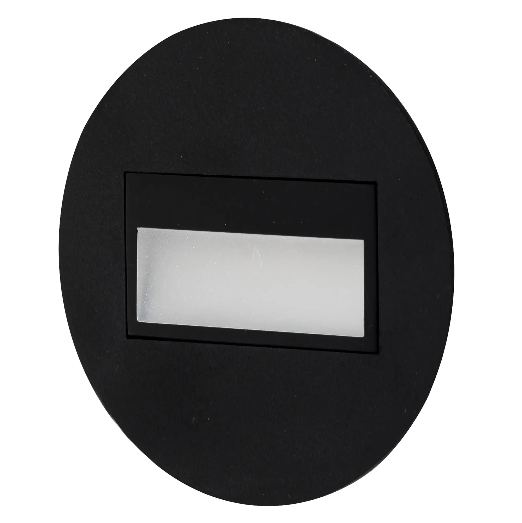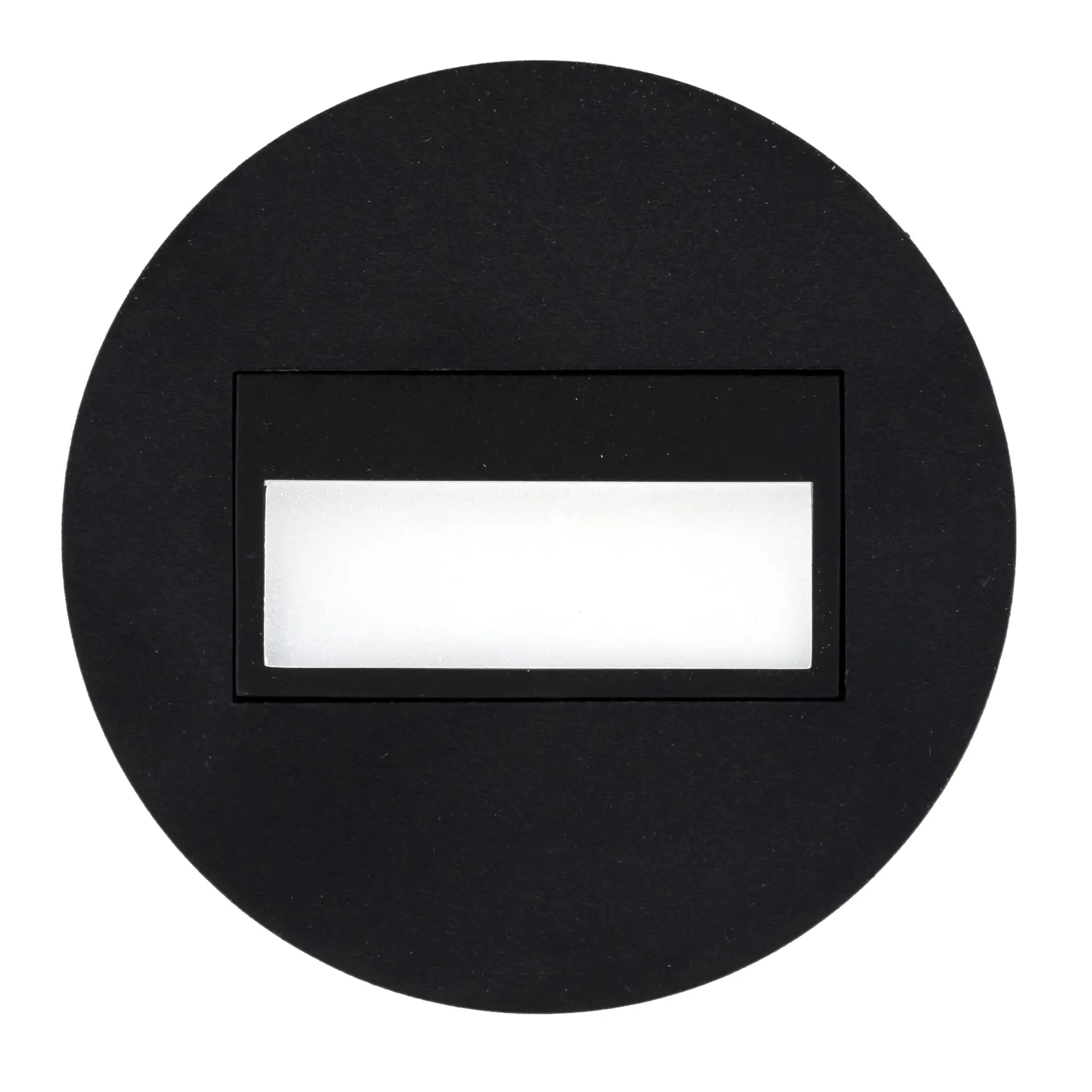 Светильник чёрного цвета, круглой формы. Корпус металлический, что гарантирует его прочность и долговечность. Рассеиватель из оптического полимера позволяет свету равномерно распространяться по всей поверхности ступени.