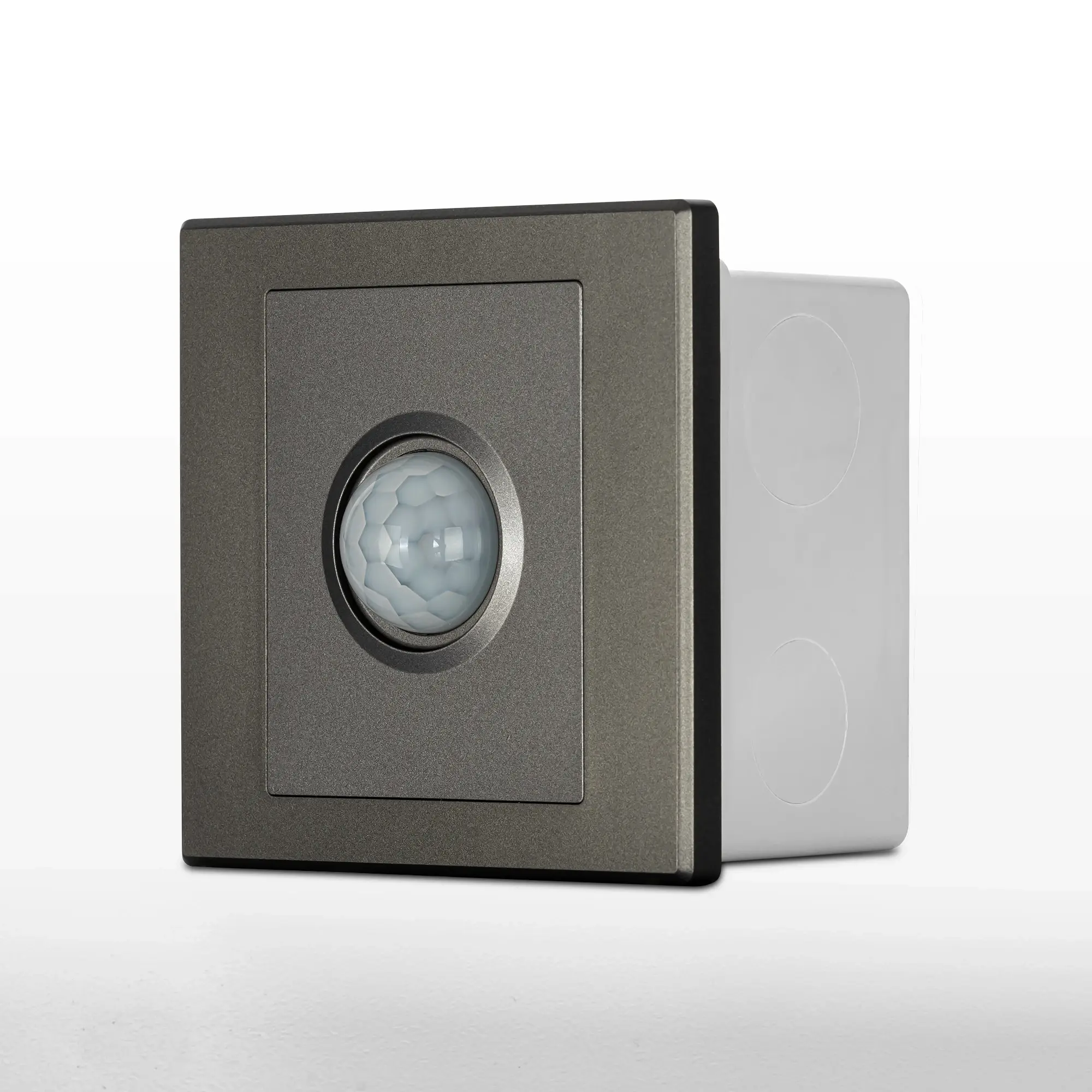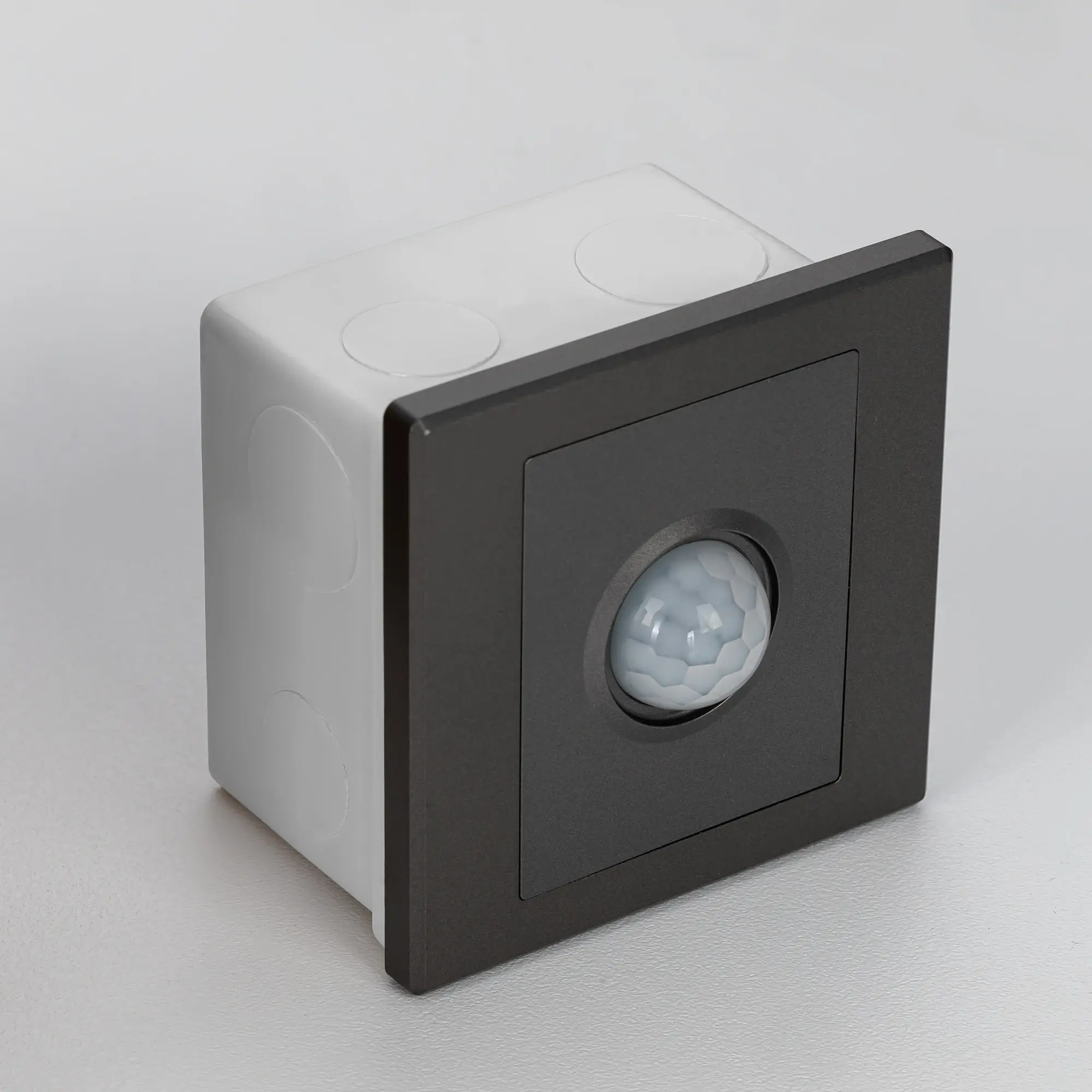 Корпус изделия изготовлен из прочного полимера цвета графит, поставляется в комплекте с монтажной коробкой.