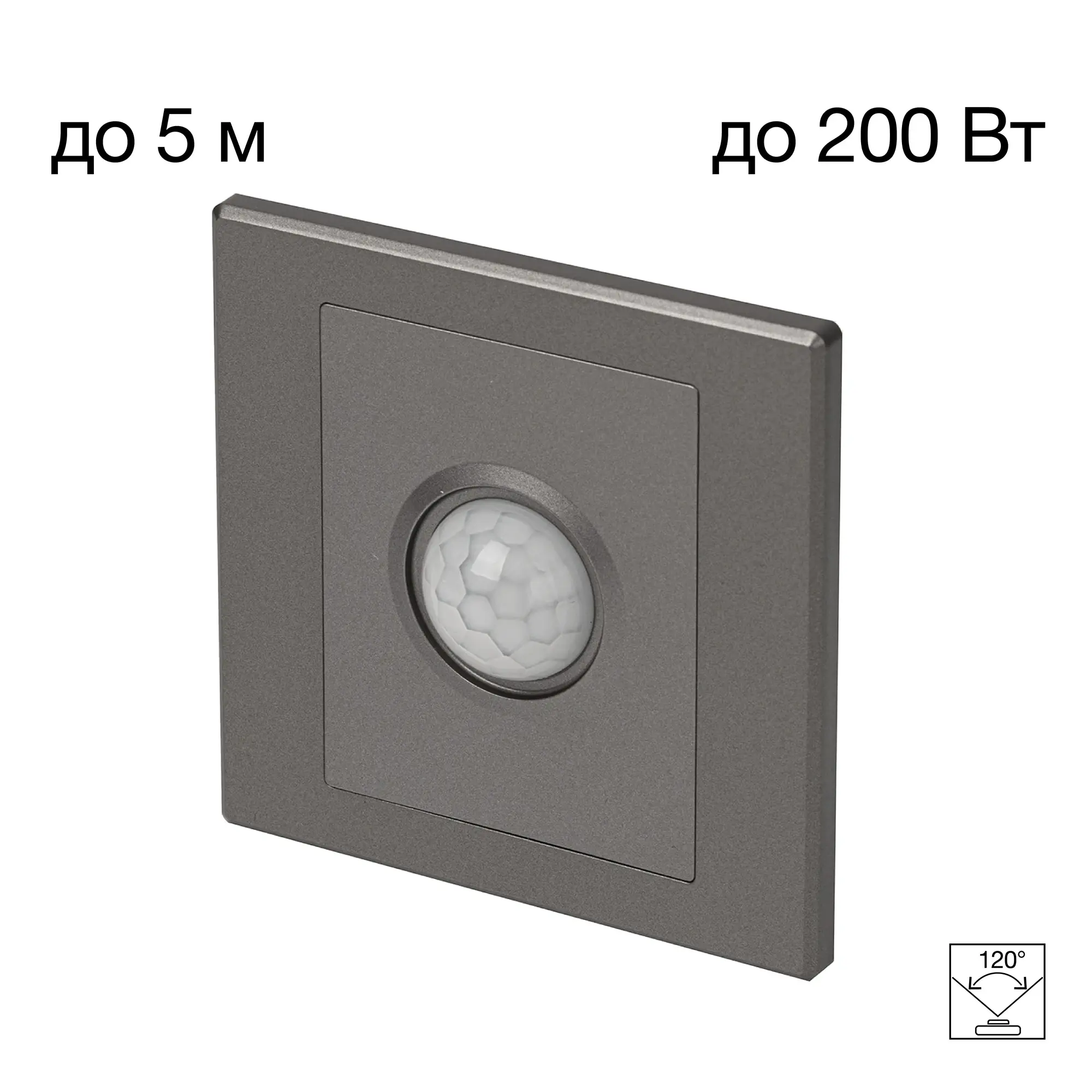 Расстояние действия датчика движения 3-5м. Угол обнаружения движения около 120°. Время задержки отключения 55-65сек. Максимальная нагрузка 200Вт.