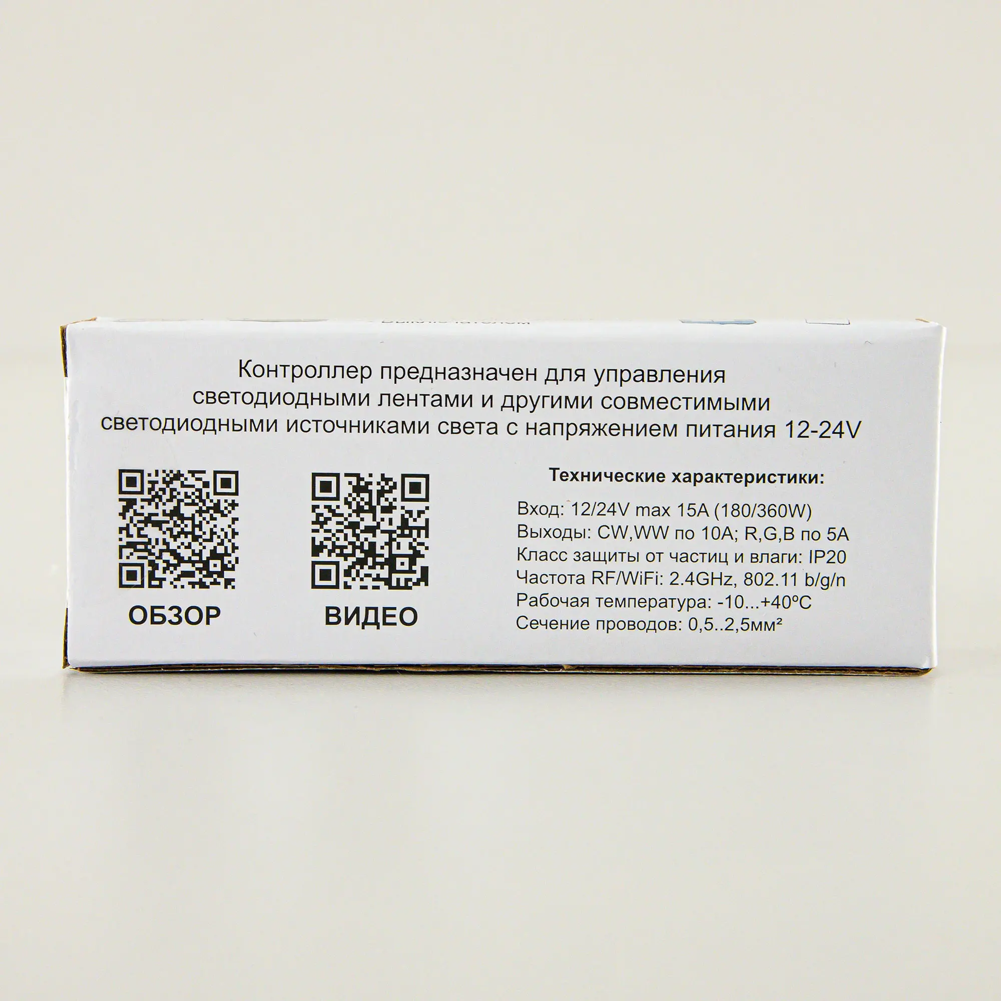 Работает как с 12 вольтовыми, так и с 24-х вольтовыми лентами. Контроллер имеет 5 диммируемых каналов. Два канала по 10А для основного света и три канала по 5А для цветной (RGB) подсветки. Одновременная работа основного света и RGB недоступна. Мощность 2-цветной ленты основного света можно подключить: при использовании ленты на 12В – до 180 Вт; лента на 24 В – до 360Вт.